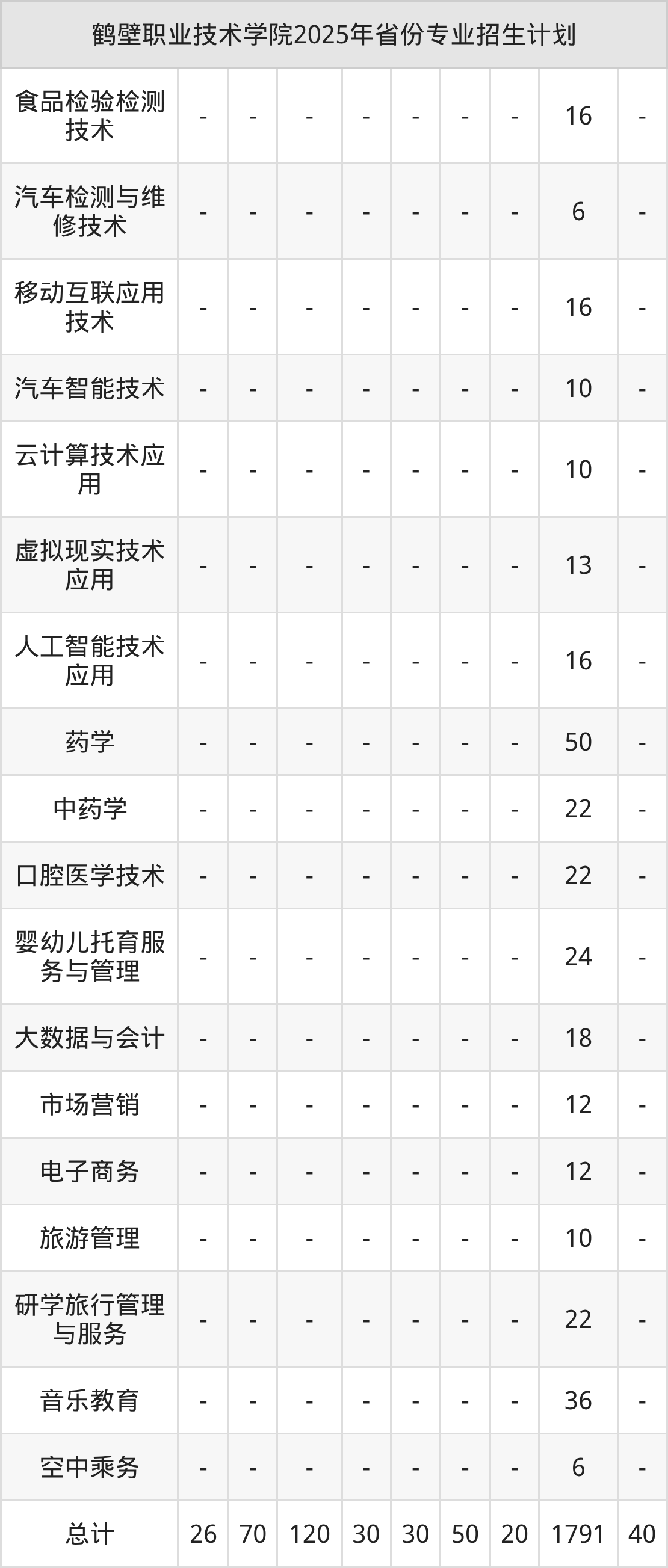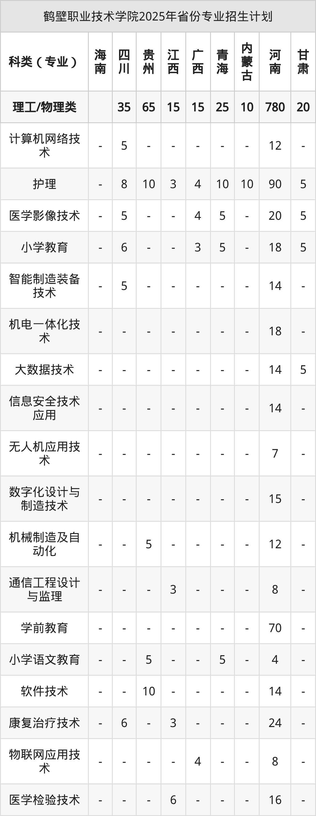 2026年鹤壁职业技术学院专科招生计划待公布,下面附上2025年数据,暂供参考: