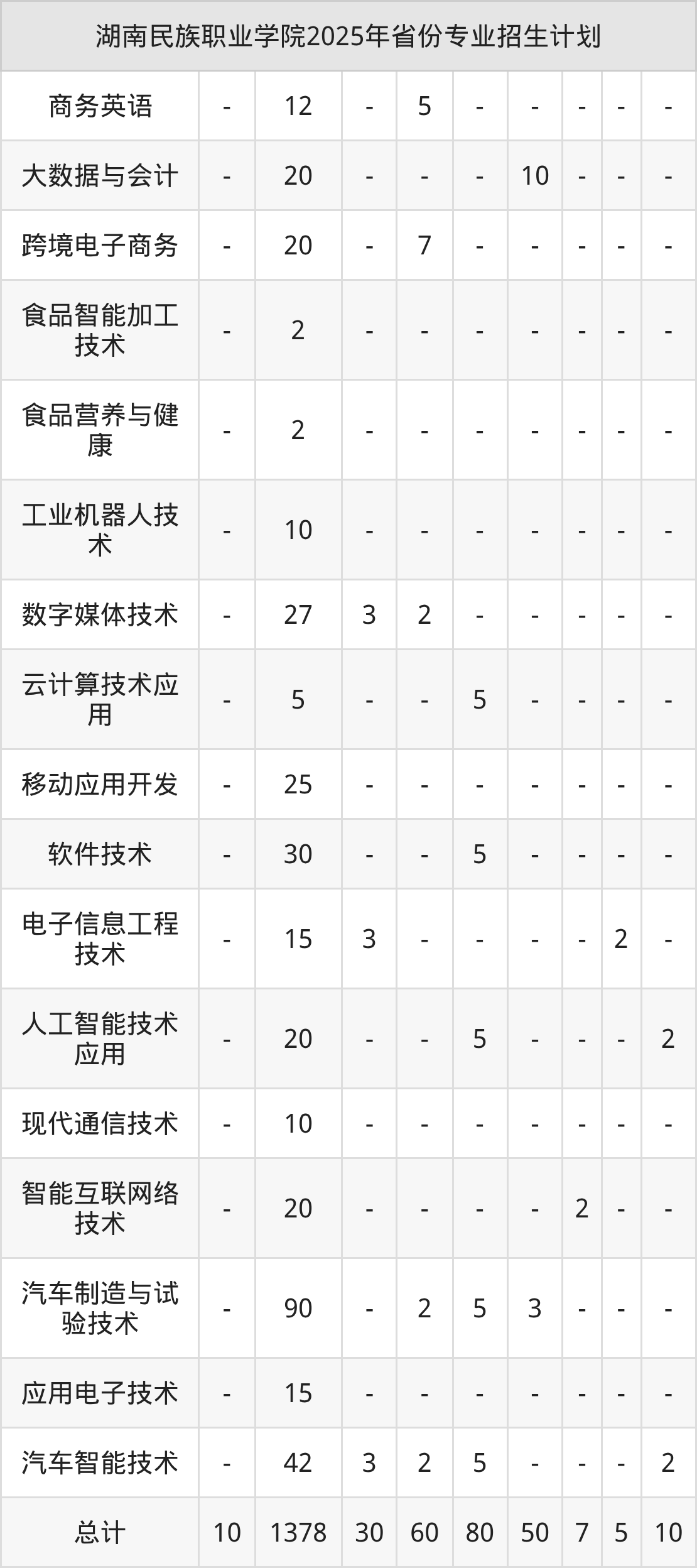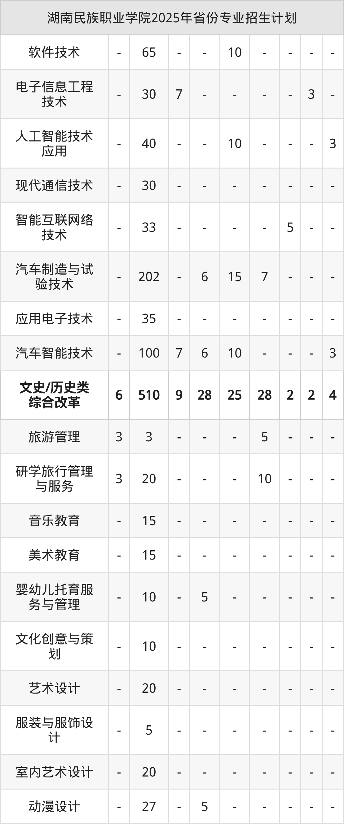 2026年湖南民族职业学院专科招生计划待公布,下面附上2025年数据,暂供参考: