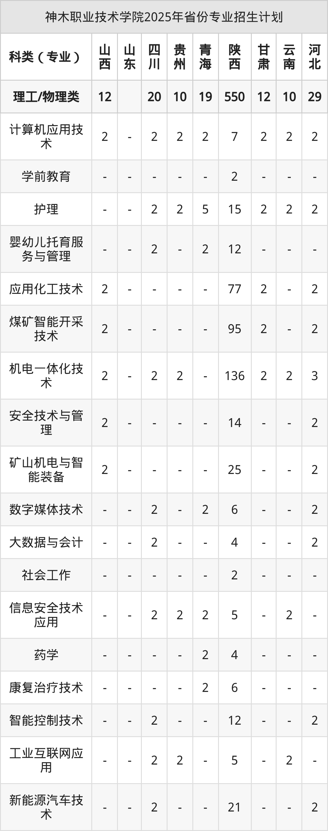 2026年神木职业技术学院专科招生计划待公布,下面附上2025年数据,暂供参考: