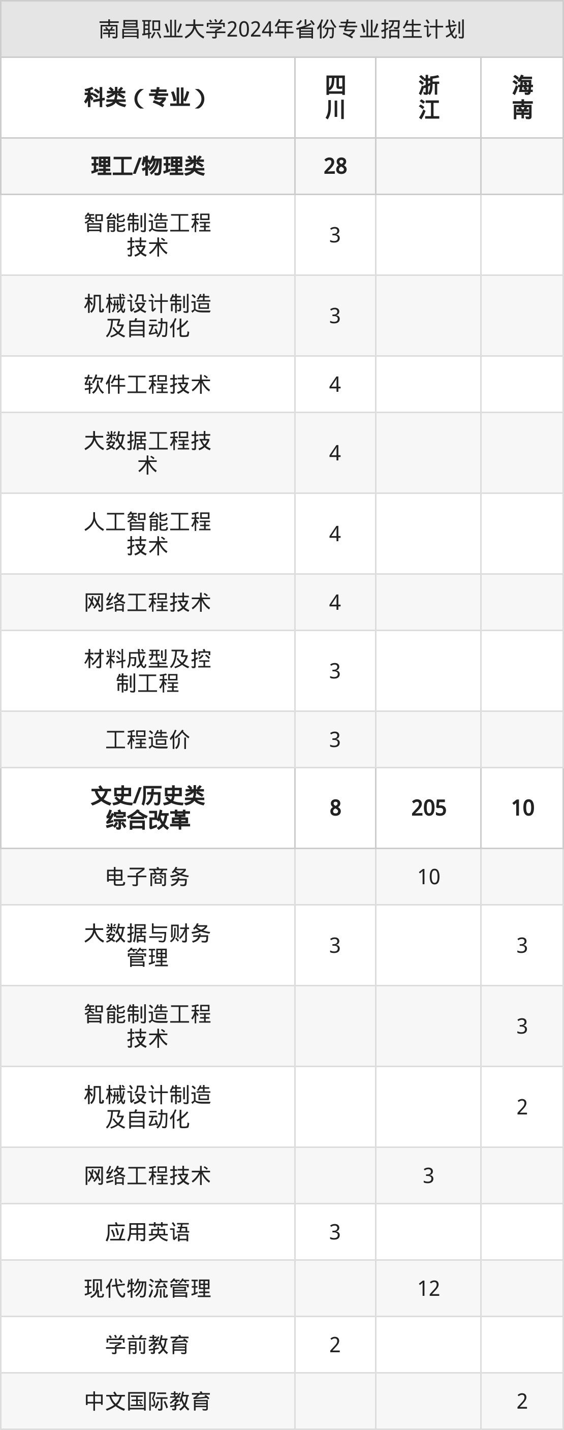 2025年南昌职业大学本科招生计划待公布,下面附上2024年数据,暂供参考: