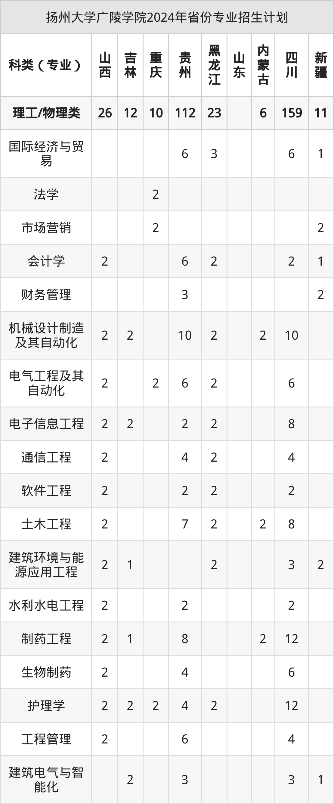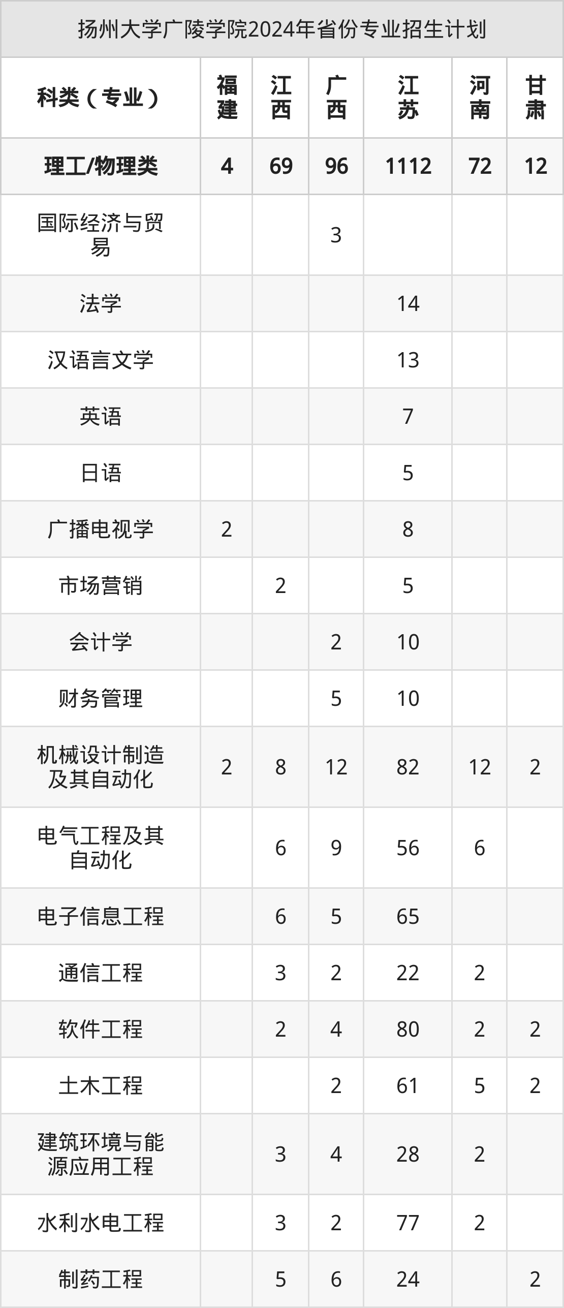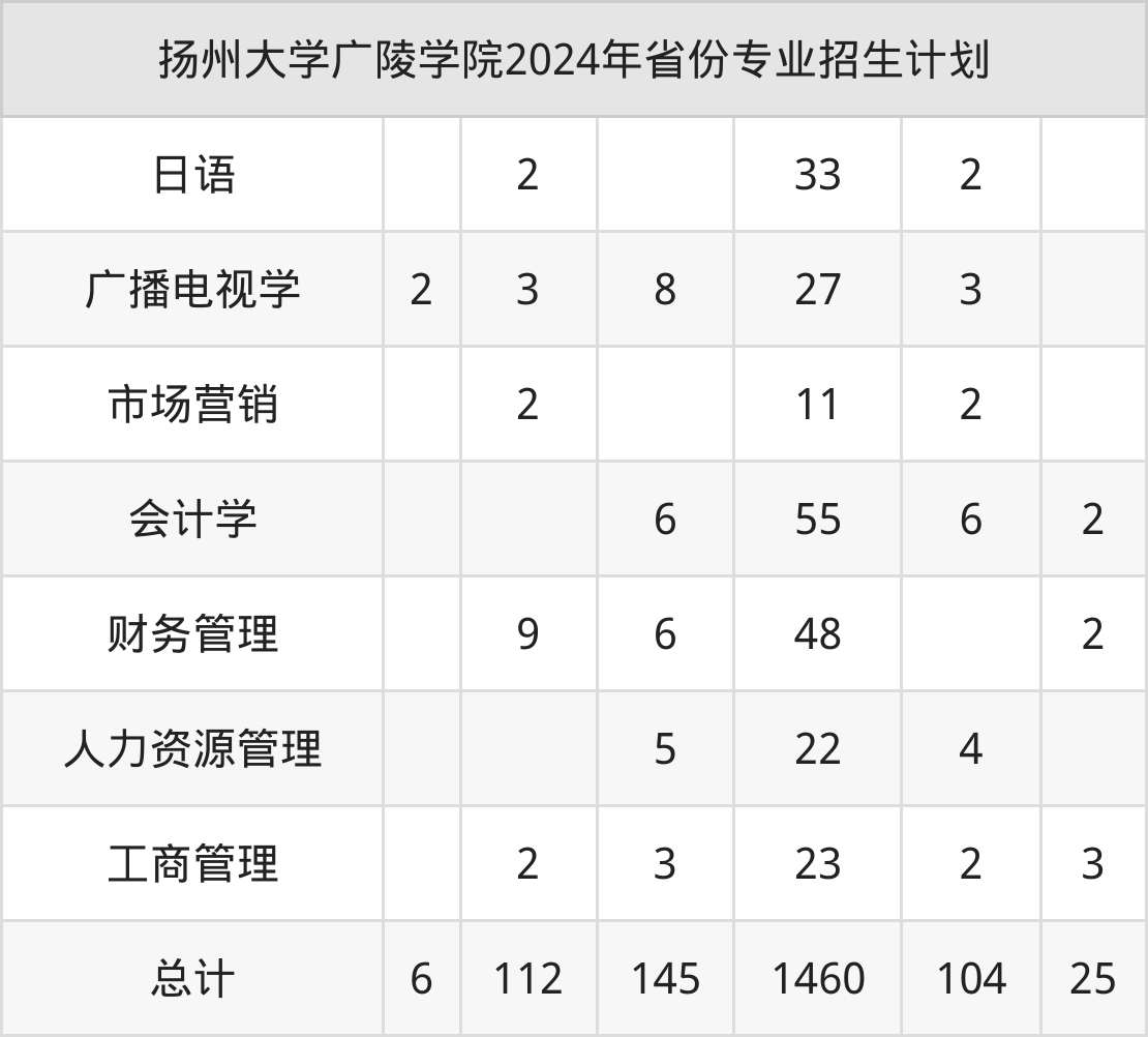 2025年扬州大学广陵学院本科招生计划待公布,下面附上2024年数据,暂供参考: