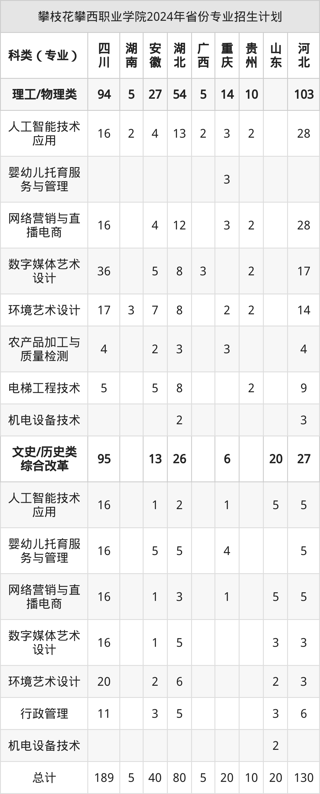 2025年攀枝花攀西职业学院专科招生计划待公布,下面附上2024年数据,暂供参考: