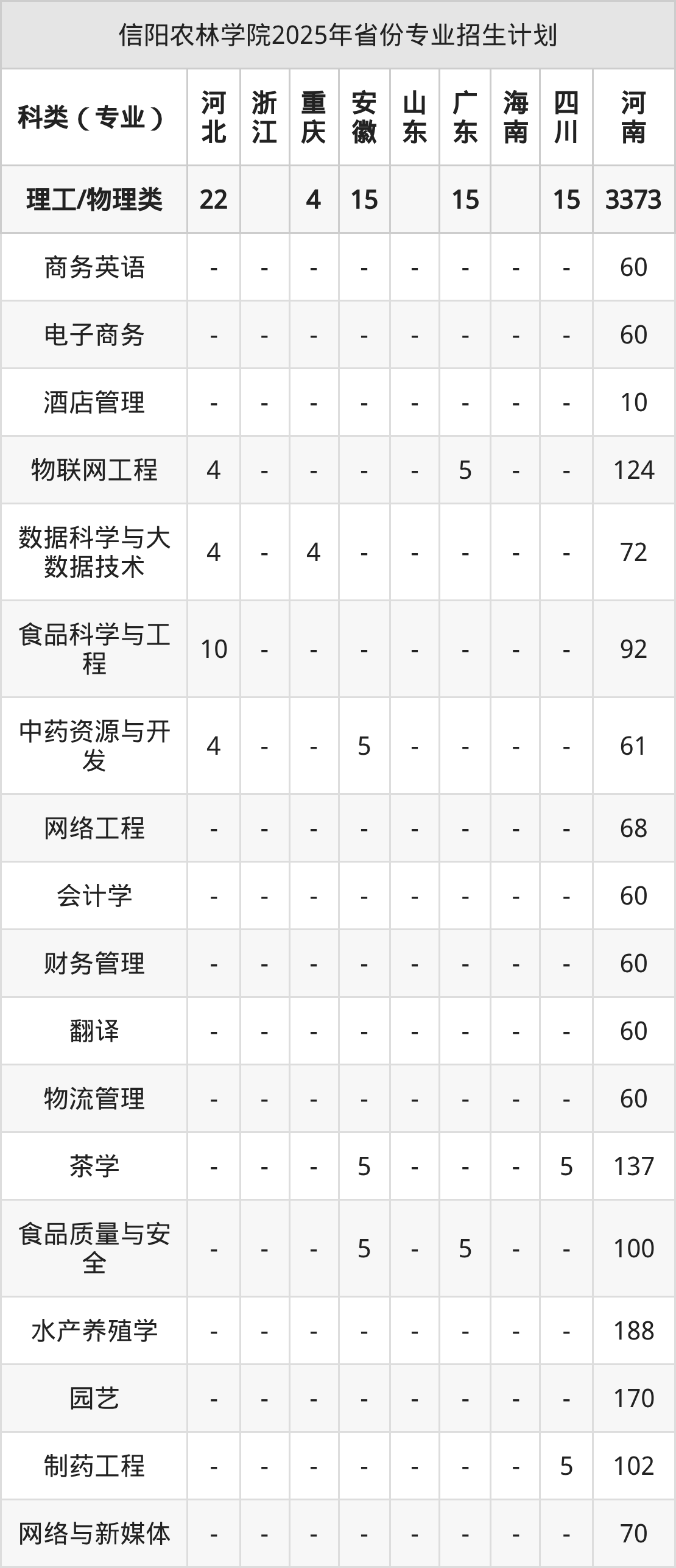 2026年信阳农林学院本科招生计划待公布,下面附上2025年数据,暂供参考: