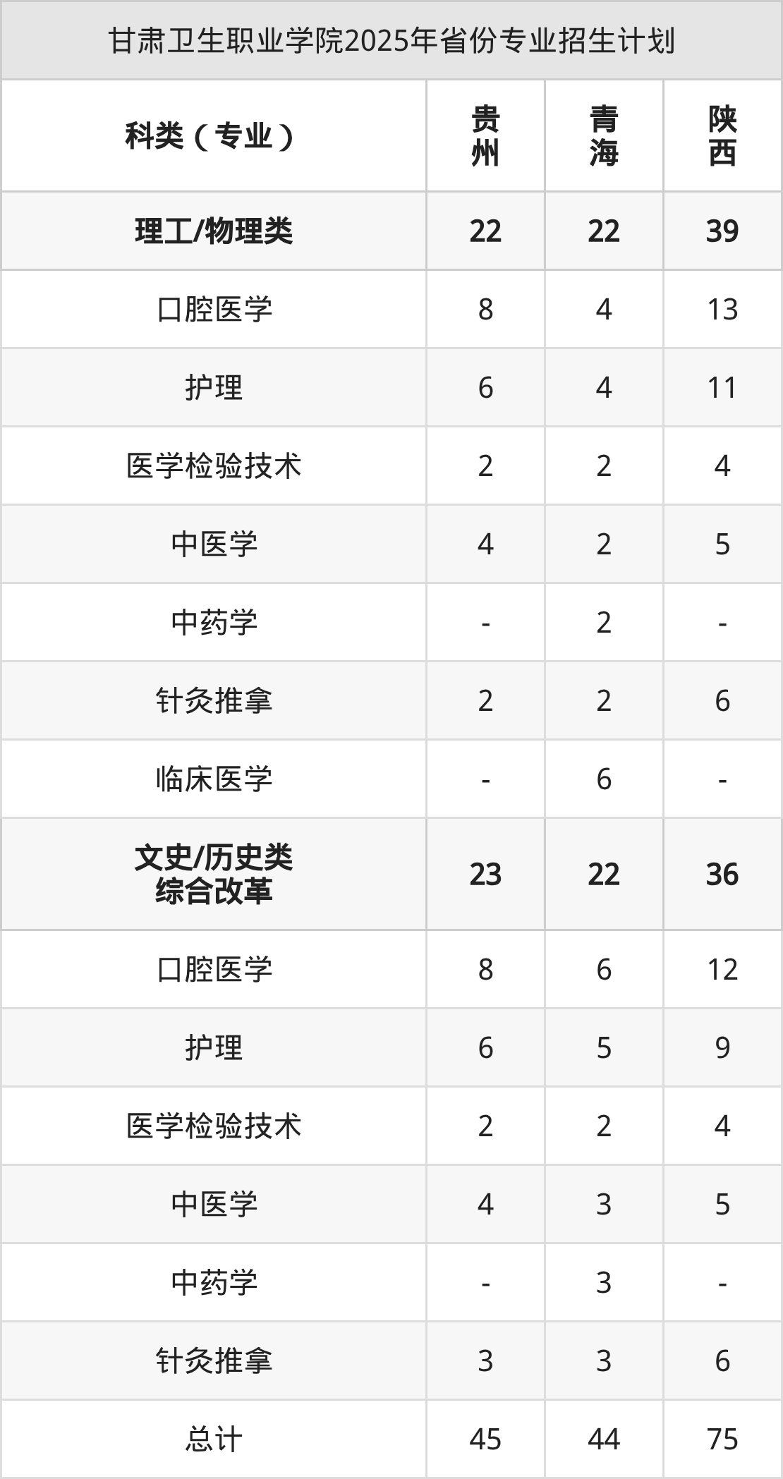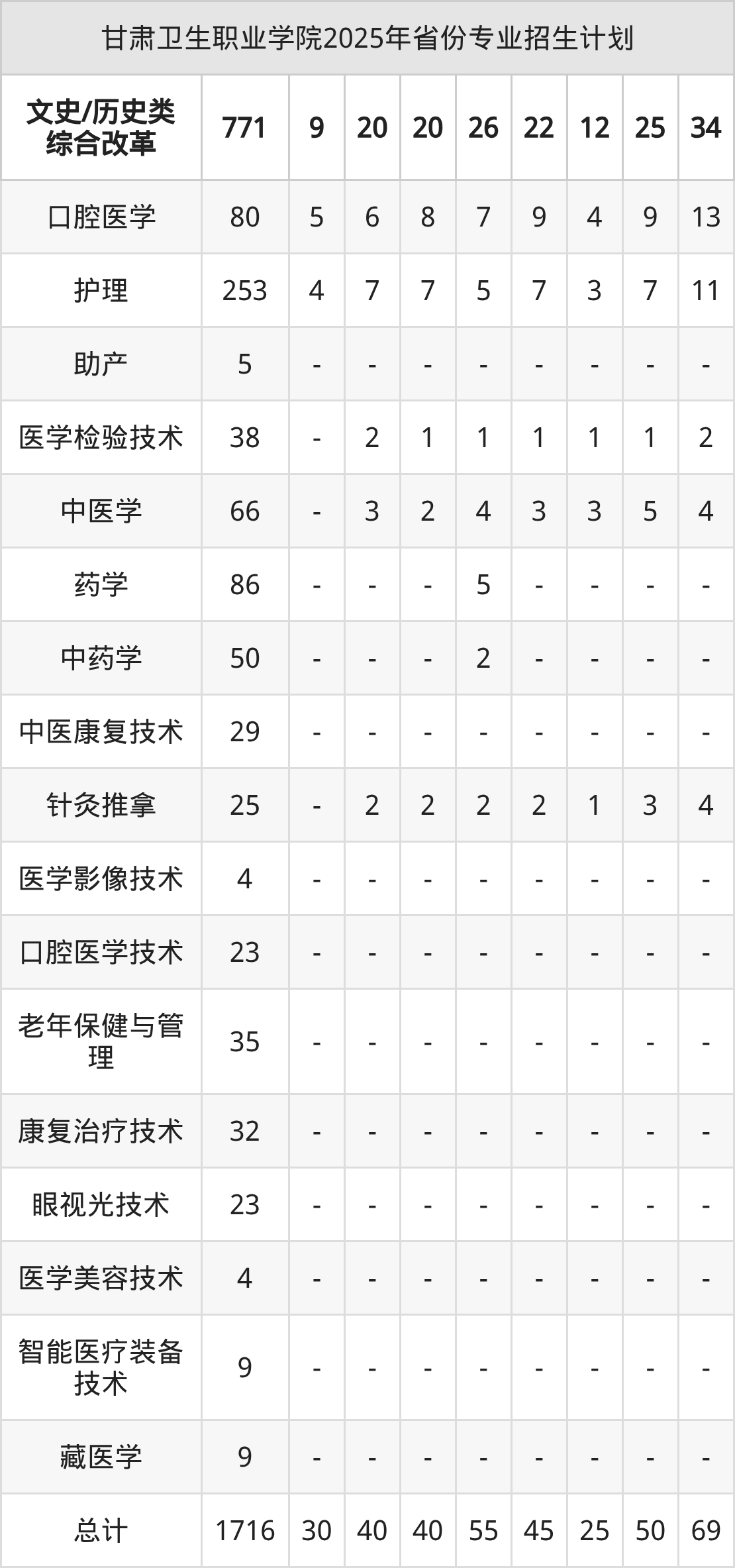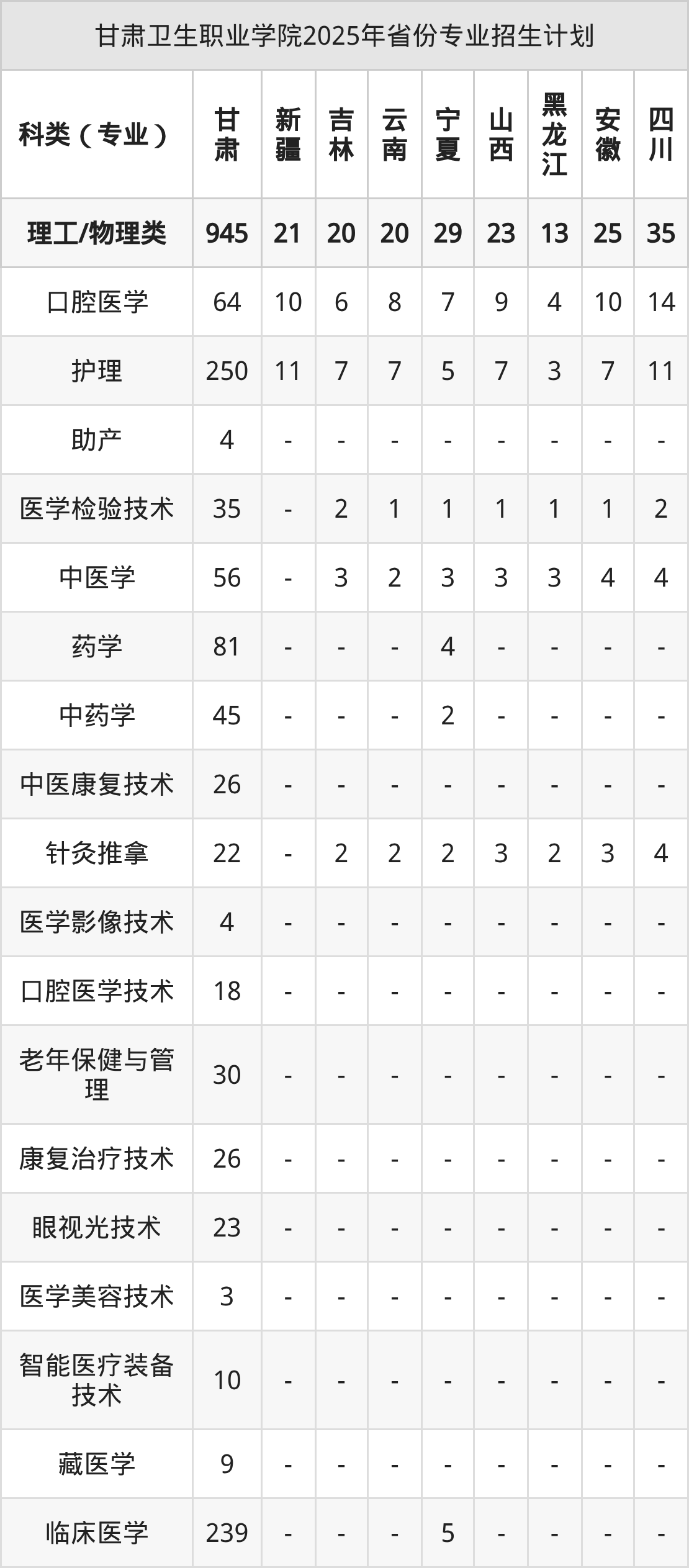 2026年甘肃卫生职业学院专科招生计划待公布,下面附上2025年数据,暂供参考: