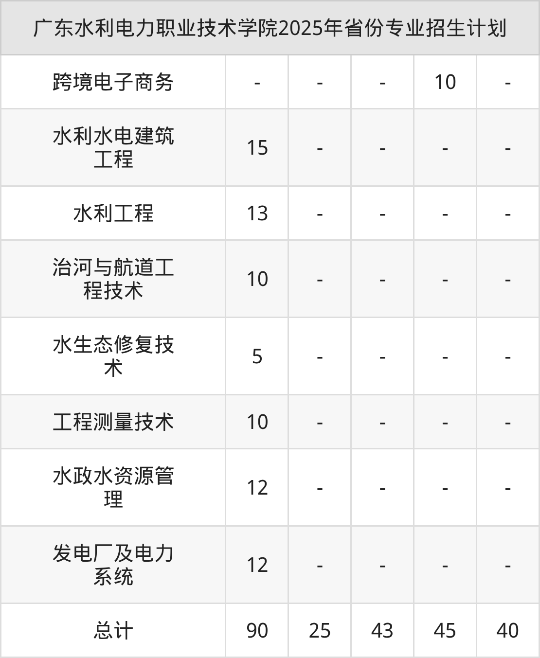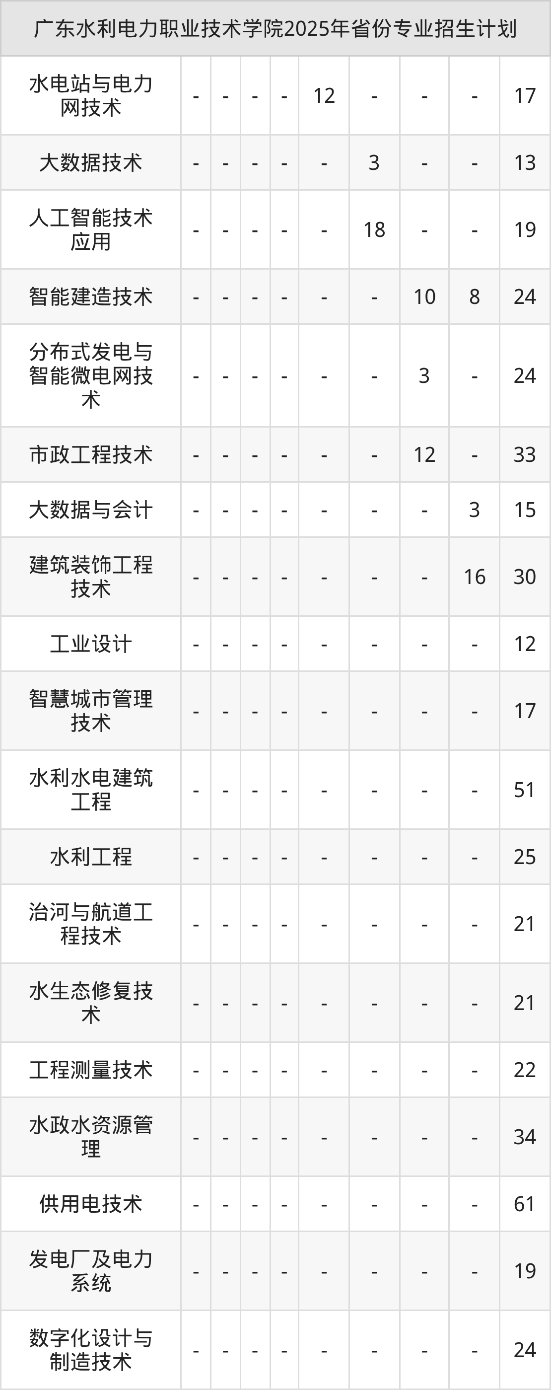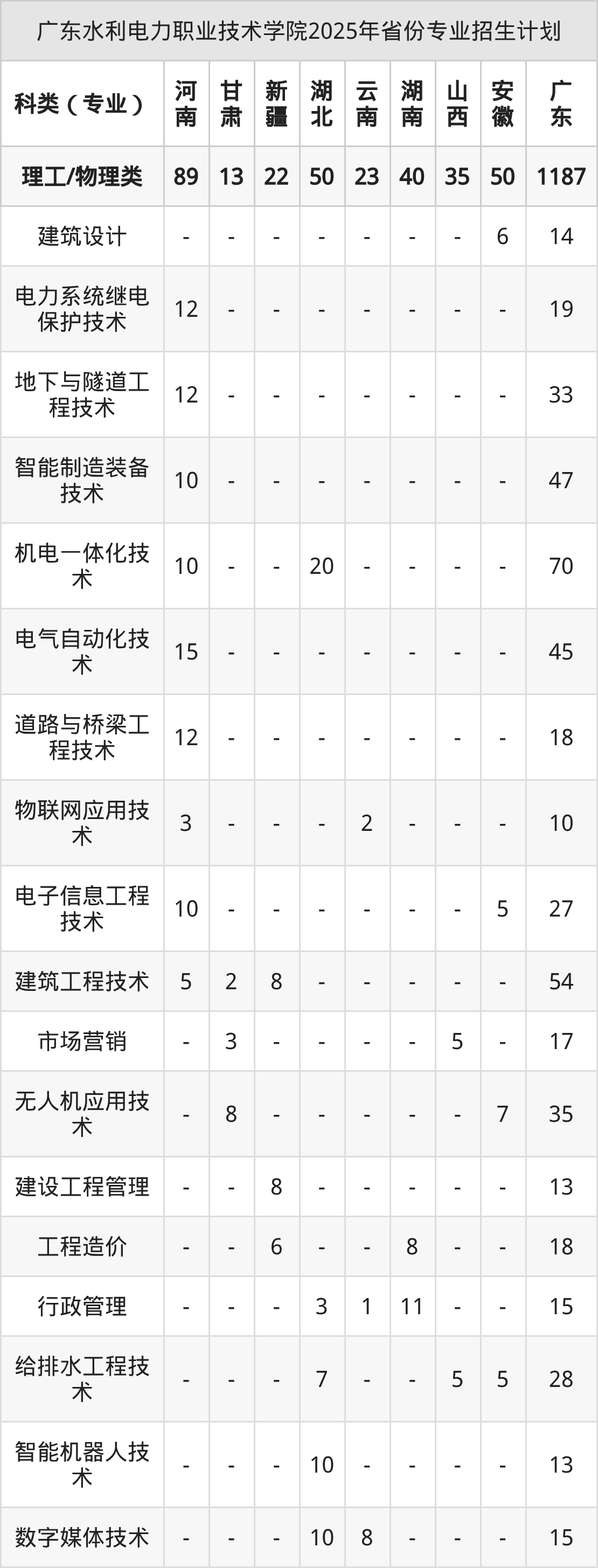 2026年广东水利电力职业技术学院专科招生计划待公布,下面附上2025年数据,暂供参考: