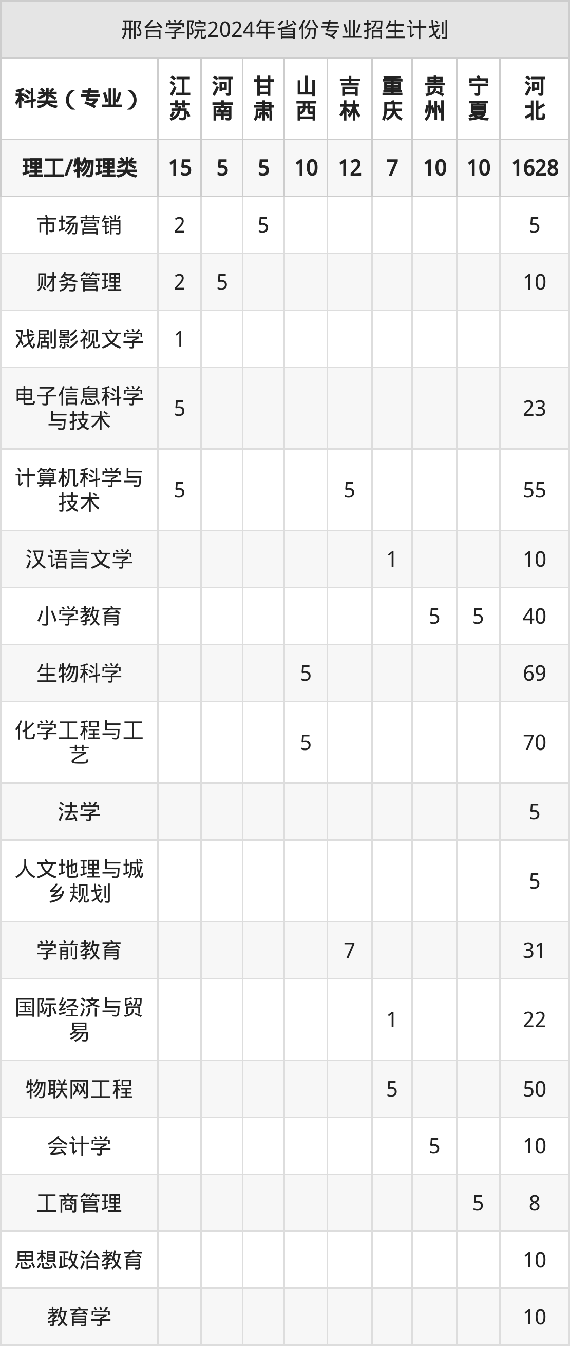 2025年邢台学院本科招生计划待公布,下面附上2024年数据,暂供参考: