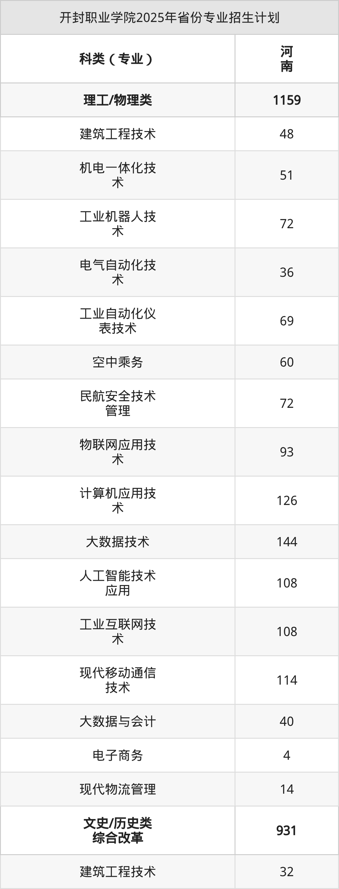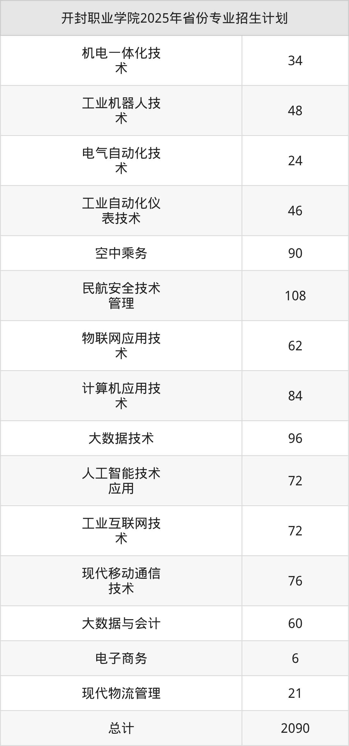 2026年开封职业学院专科招生计划待公布,下面附上2025年数据,暂供参考: