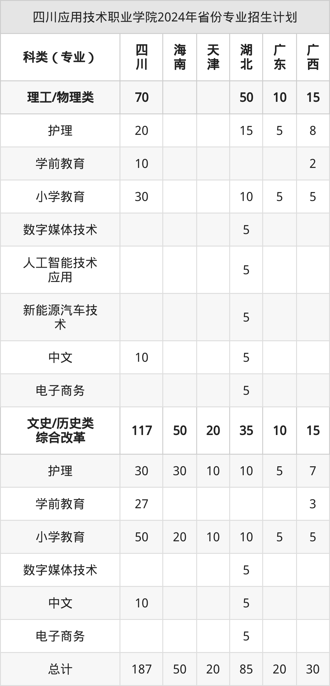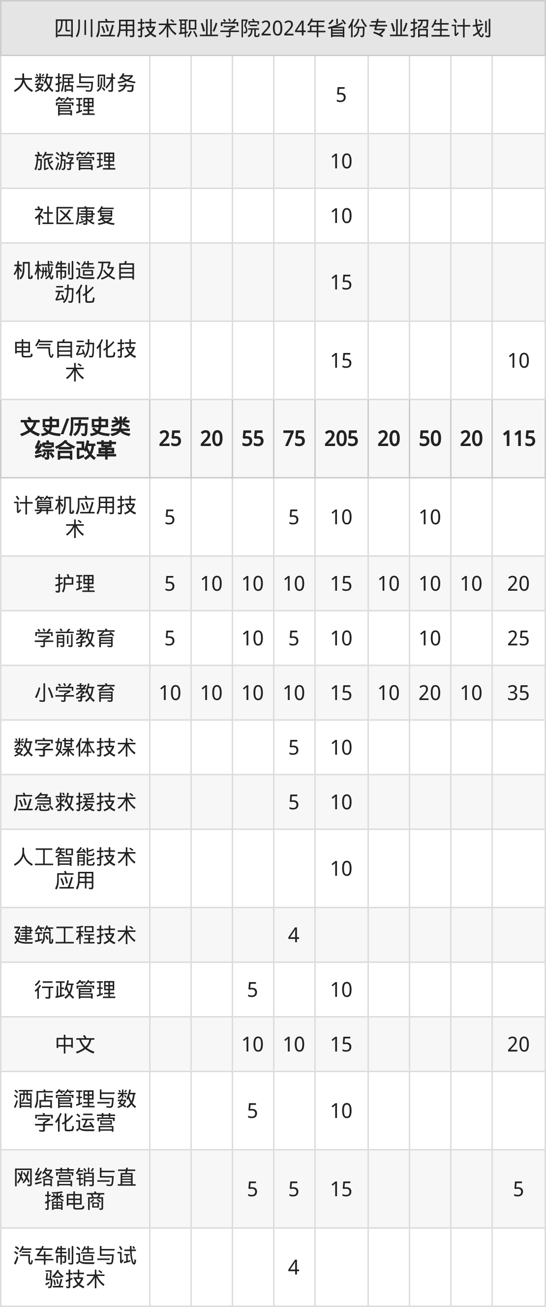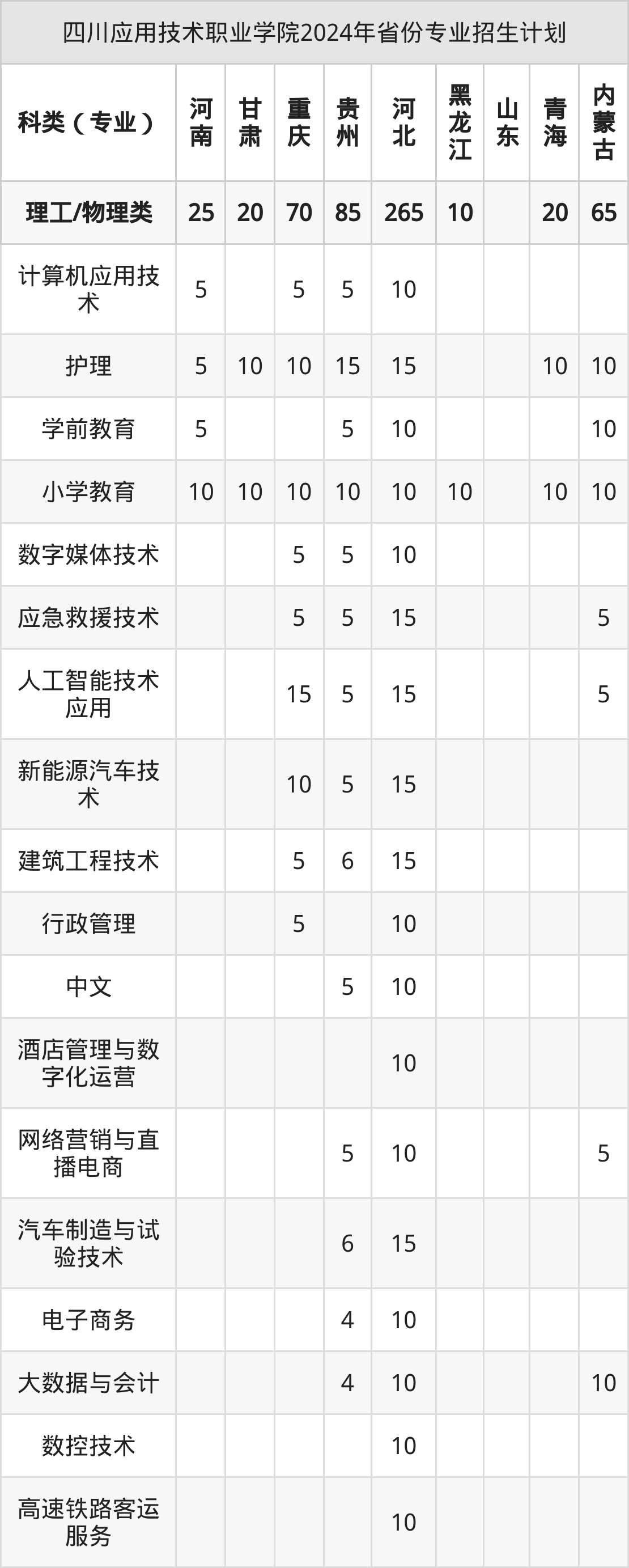 2025年四川应用技术职业学院专科招生计划待公布,下面附上2024年数据,暂供参考: