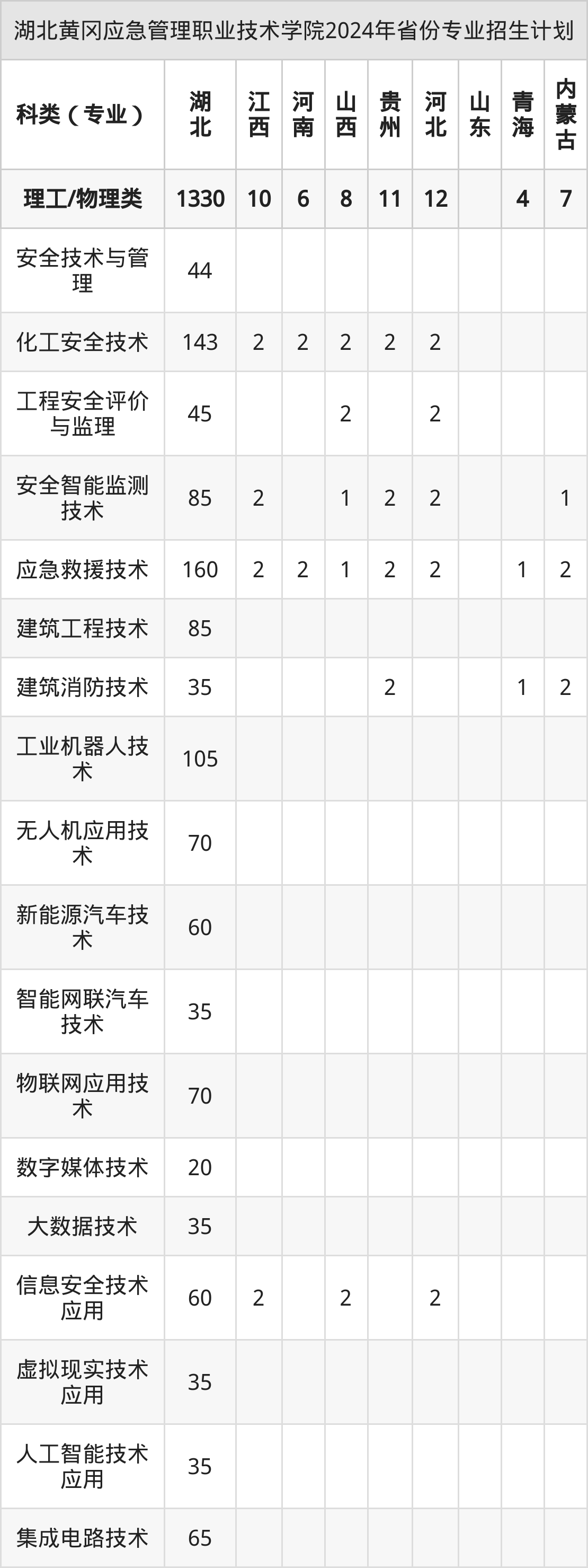 2025年湖北黄冈应急管理职业技术学院专科招生计划待公布,下面附上2024年数据,暂供参考: