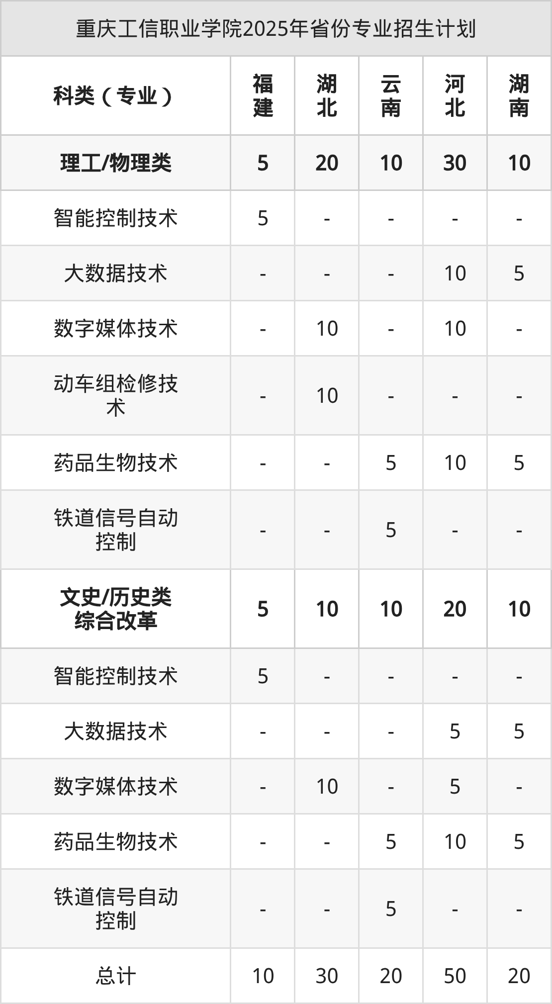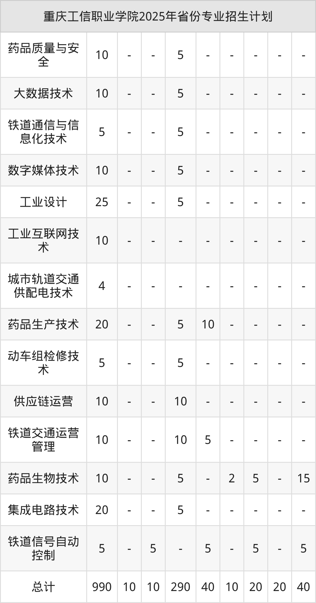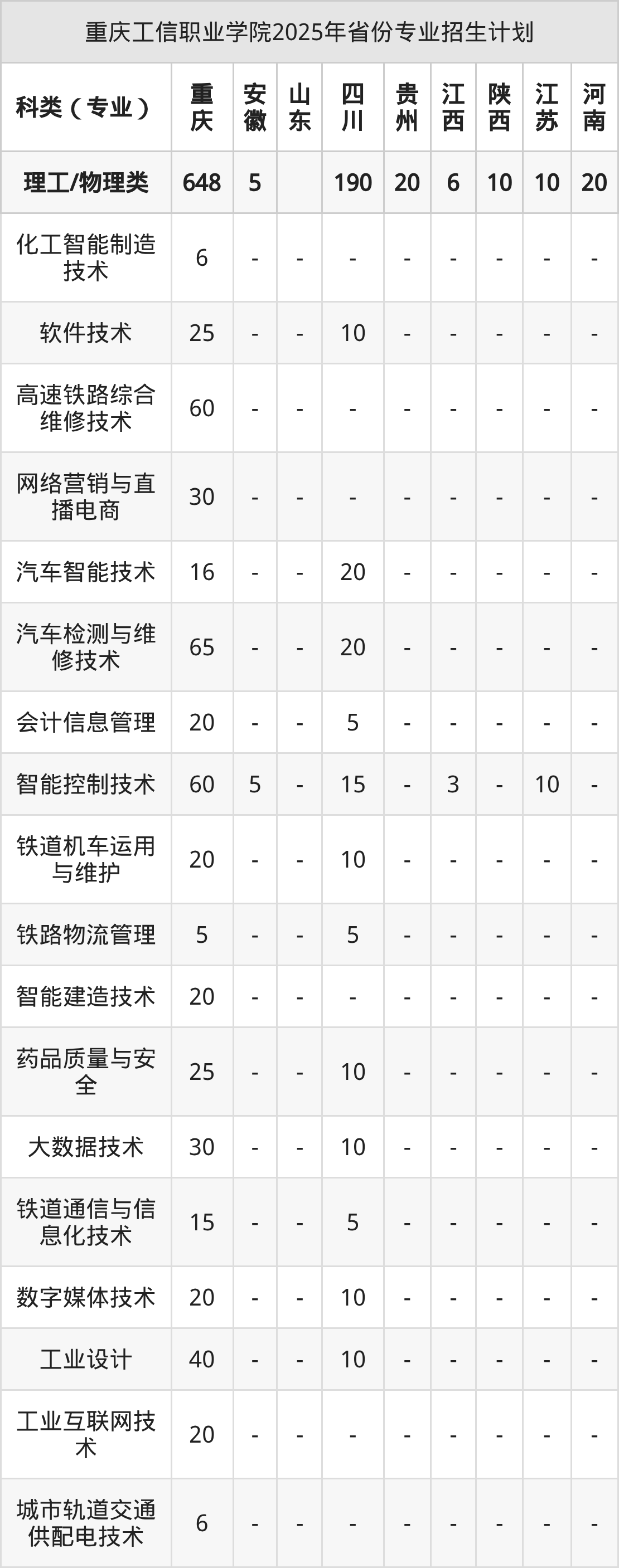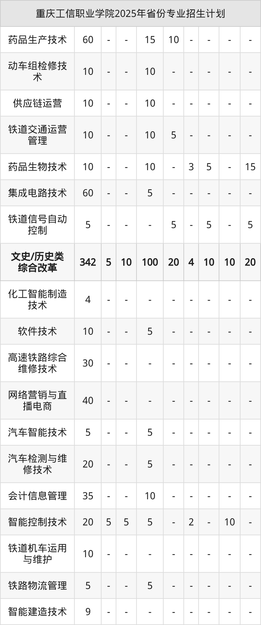 2026年重庆工信职业学院专科招生计划待公布,下面附上2025年数据,暂供参考: