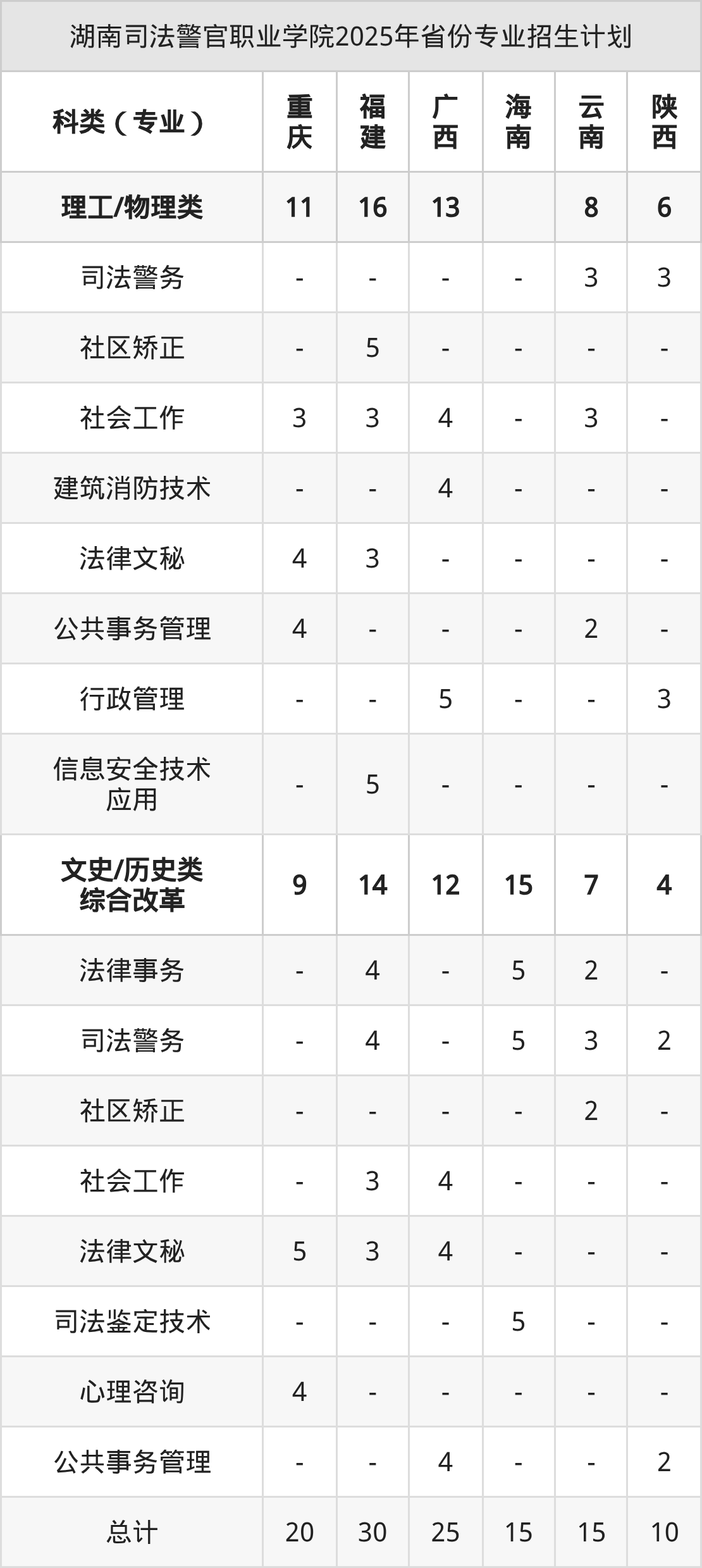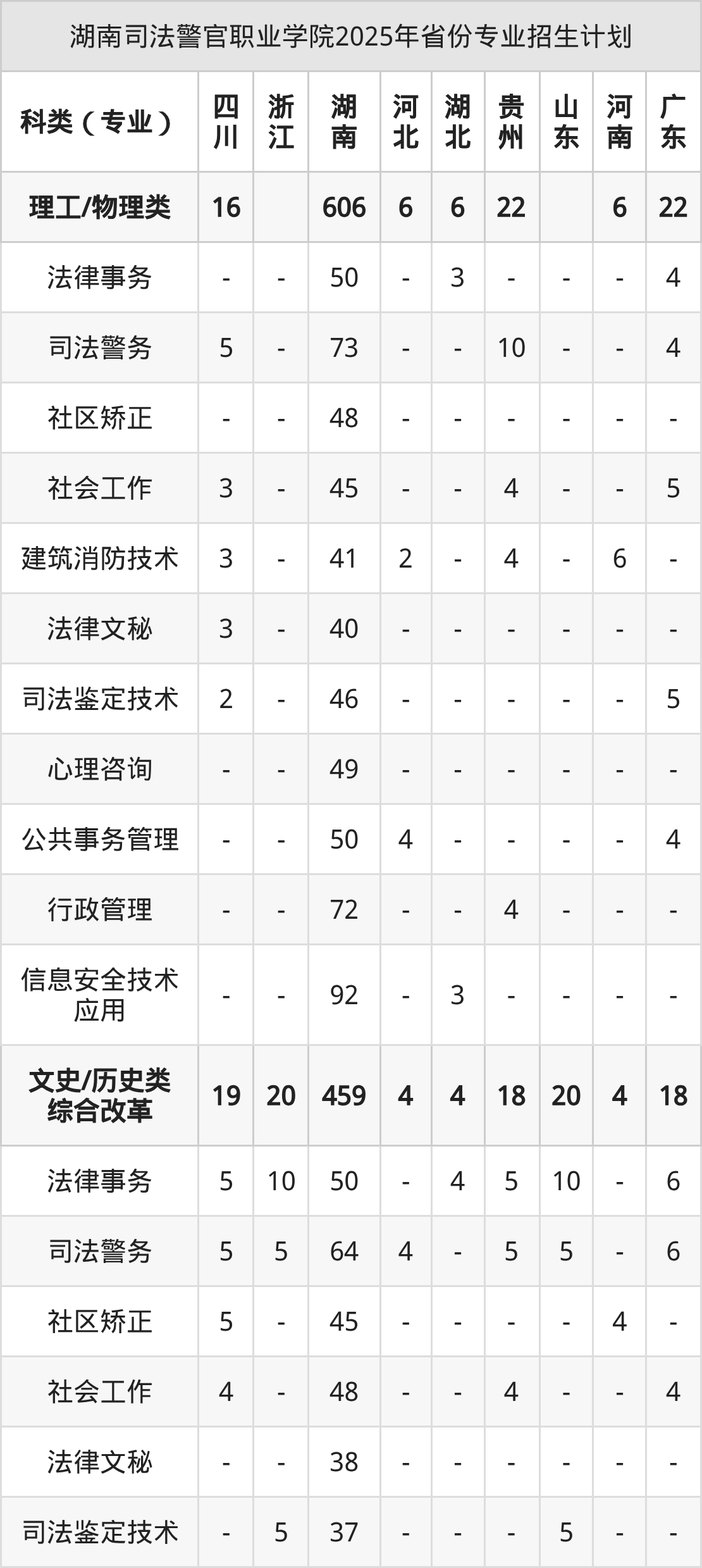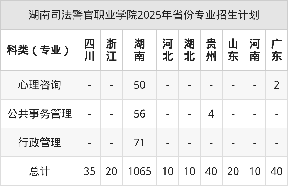 2026年湖南司法警官职业学院专科招生计划待公布,下面附上2025年数据,暂供参考: