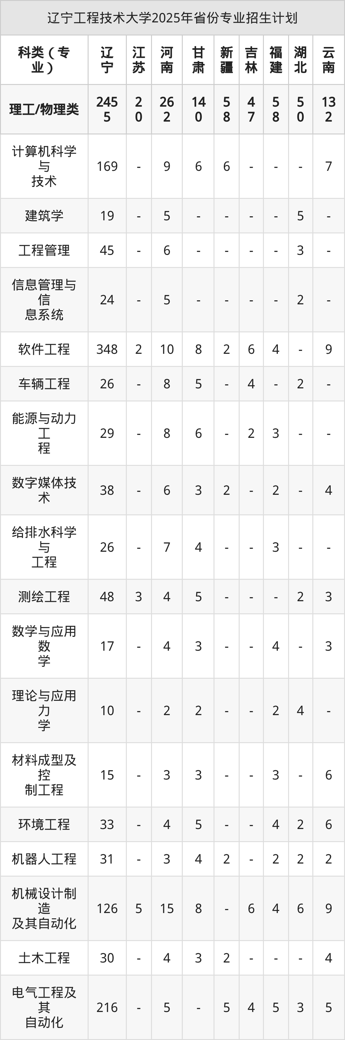2026年辽宁工程技术大学本科招生计划待公布,下面附上2025年数据,暂供参考: