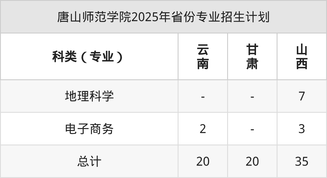 2026年唐山师范学院本科招生计划待公布,下面附上2025年数据,暂供参考: