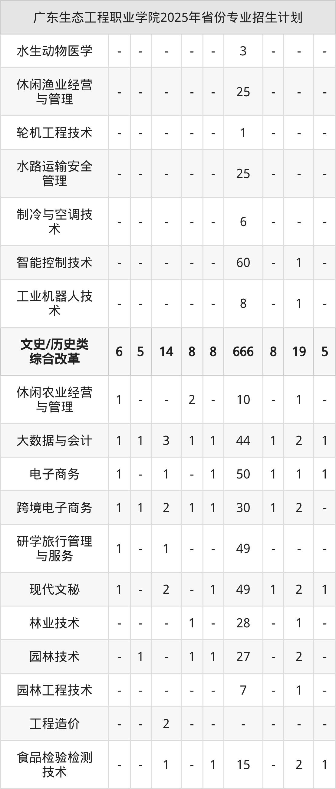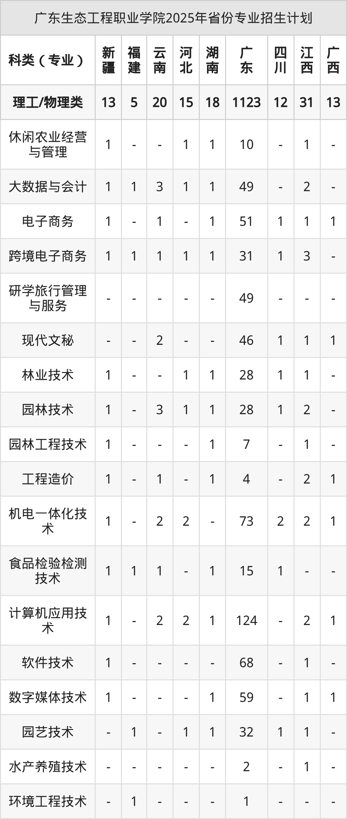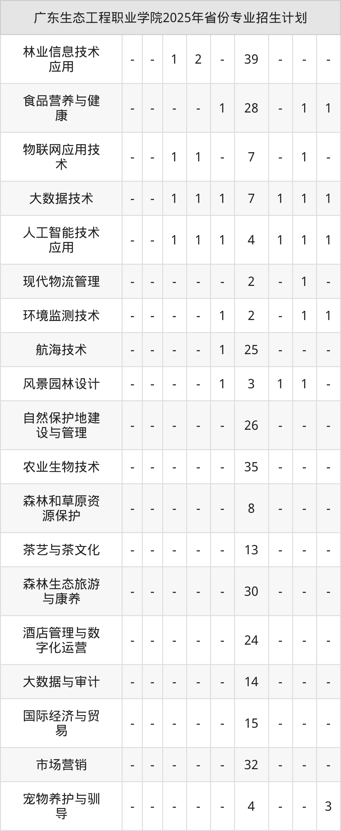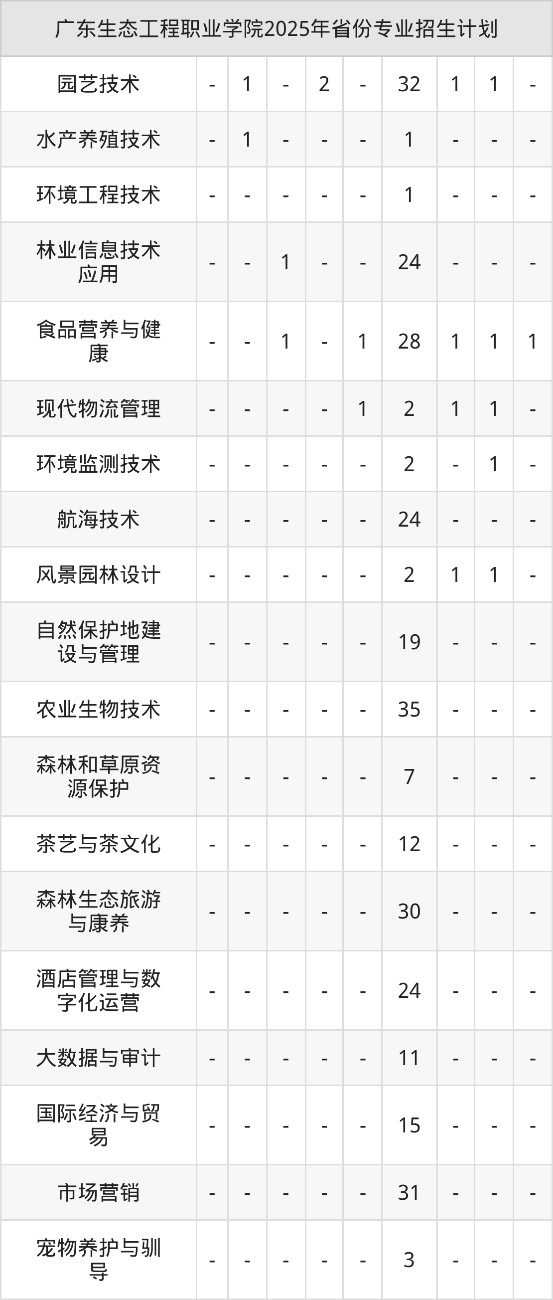 2026年广东生态工程职业学院专科招生计划待公布,下面附上2025年数据,暂供参考: