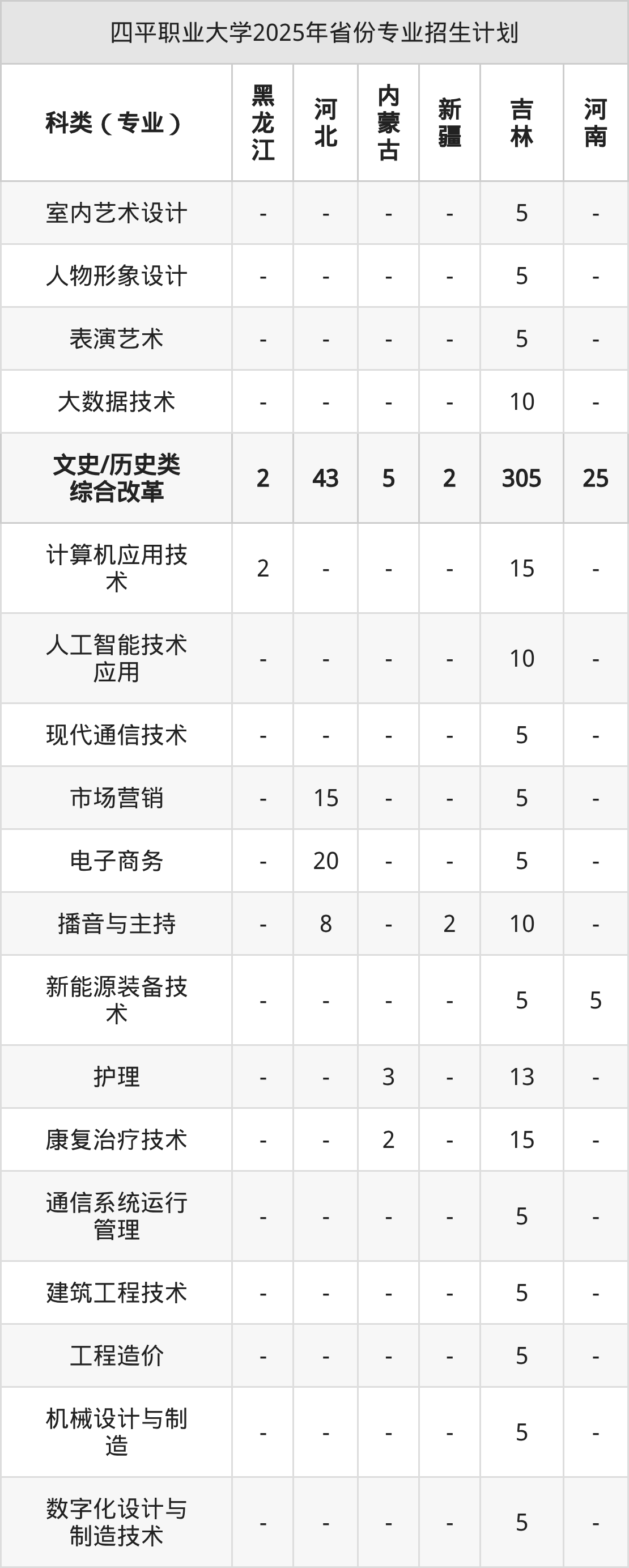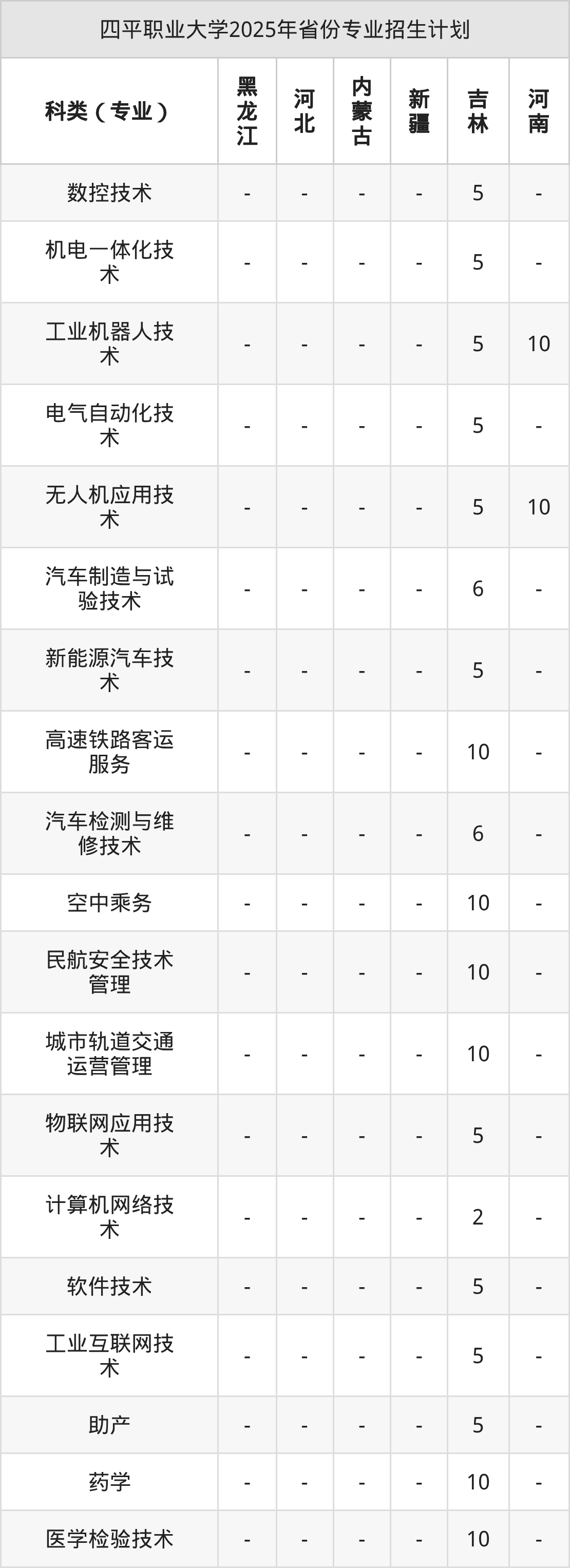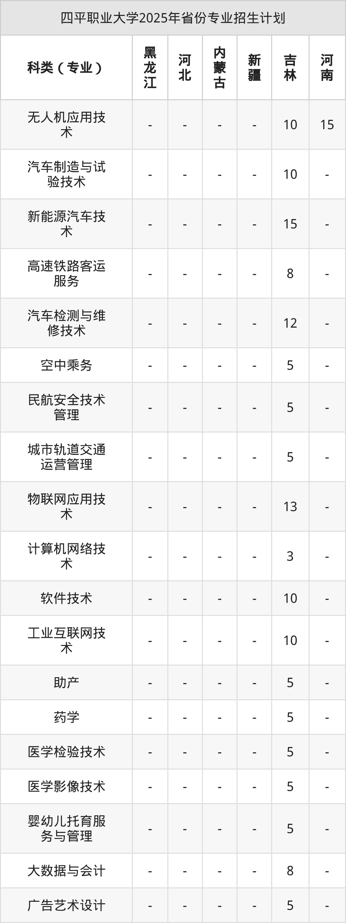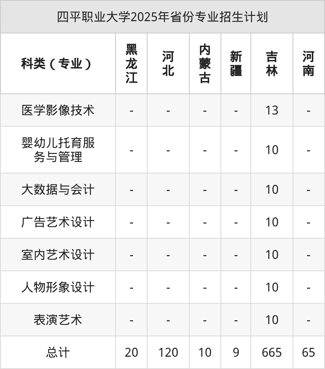 2026年四平职业大学专科招生计划待公布,下面附上2025年数据,暂供参考: