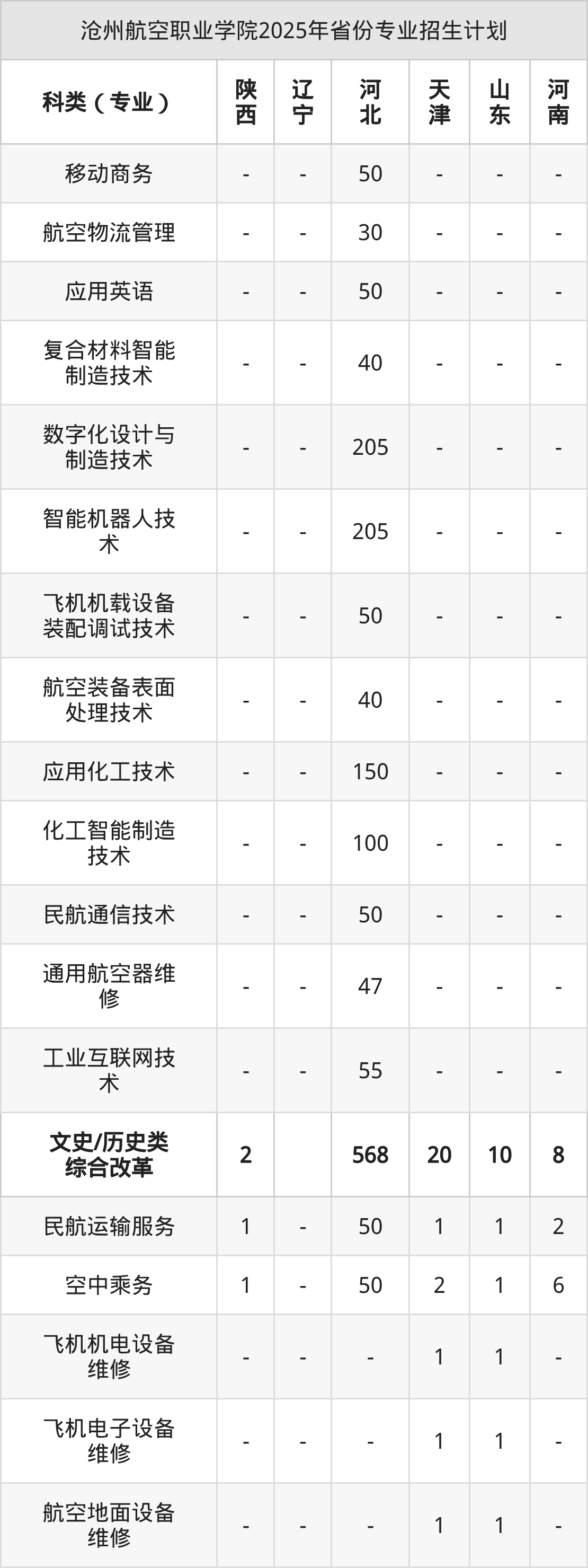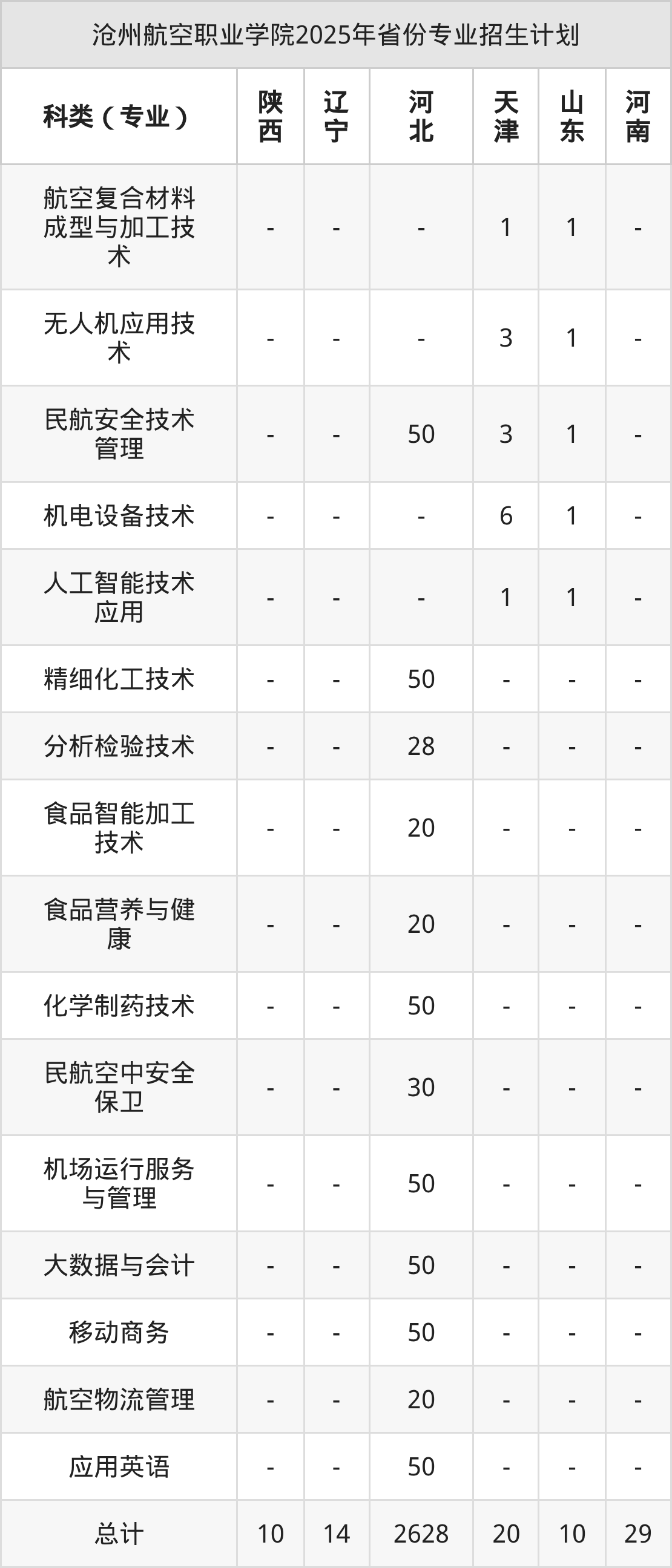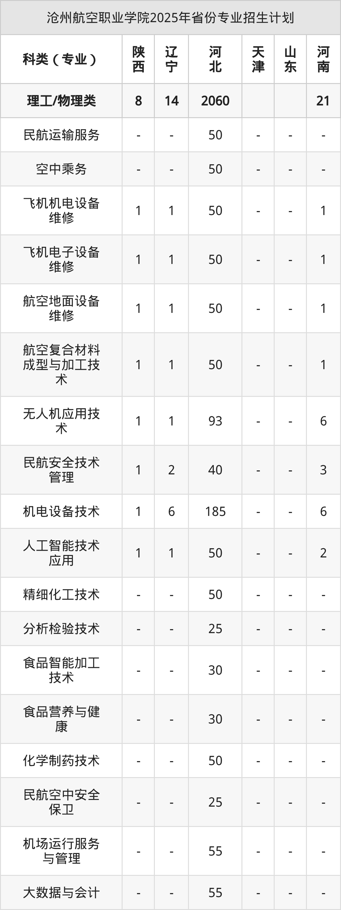 2026年沧州航空职业学院专科招生计划待公布,下面附上2025年数据,暂供参考: