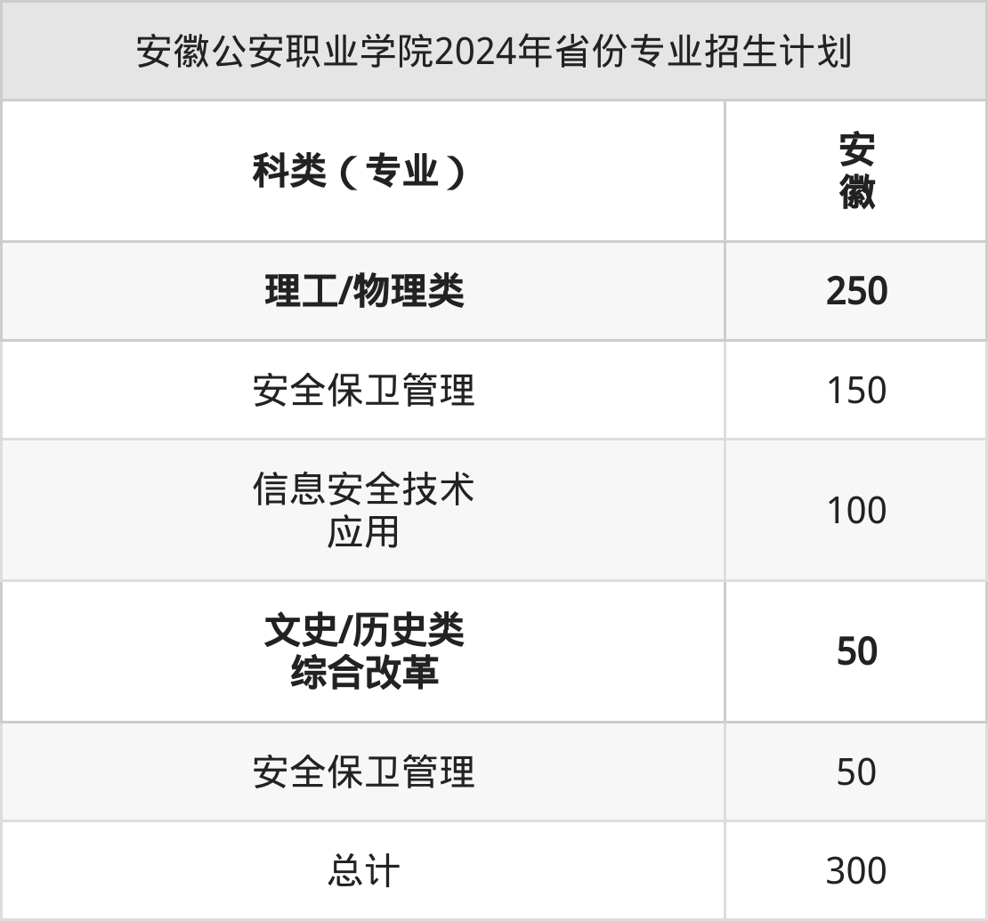2025年安徽公安职业学院专科招生计划待公布,下面附上2024年数据,暂供参考: