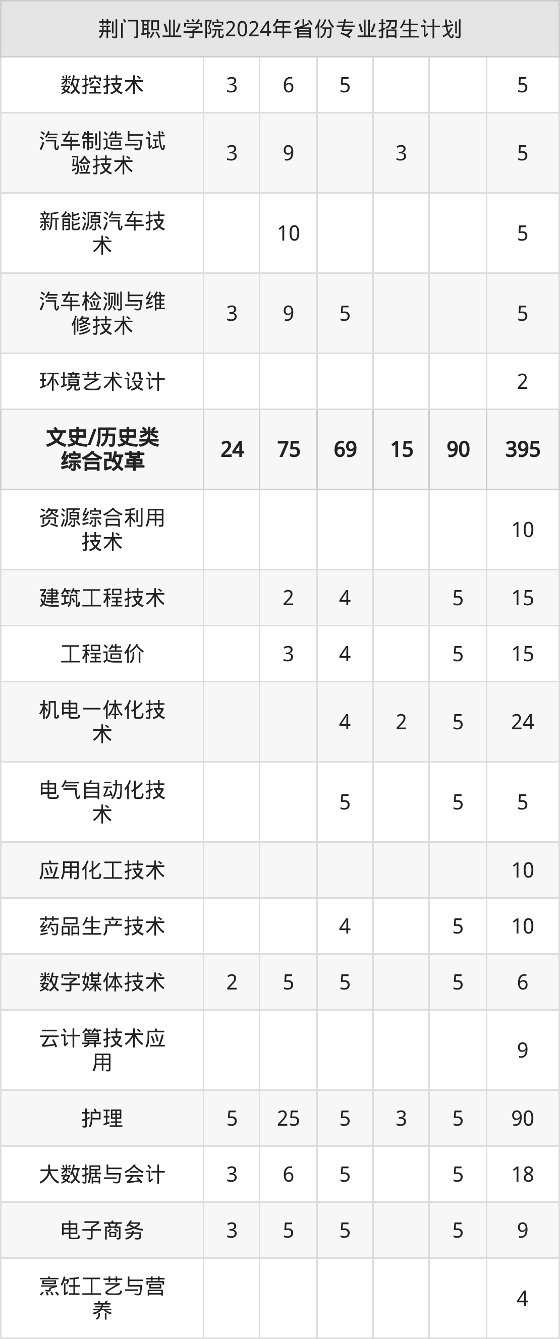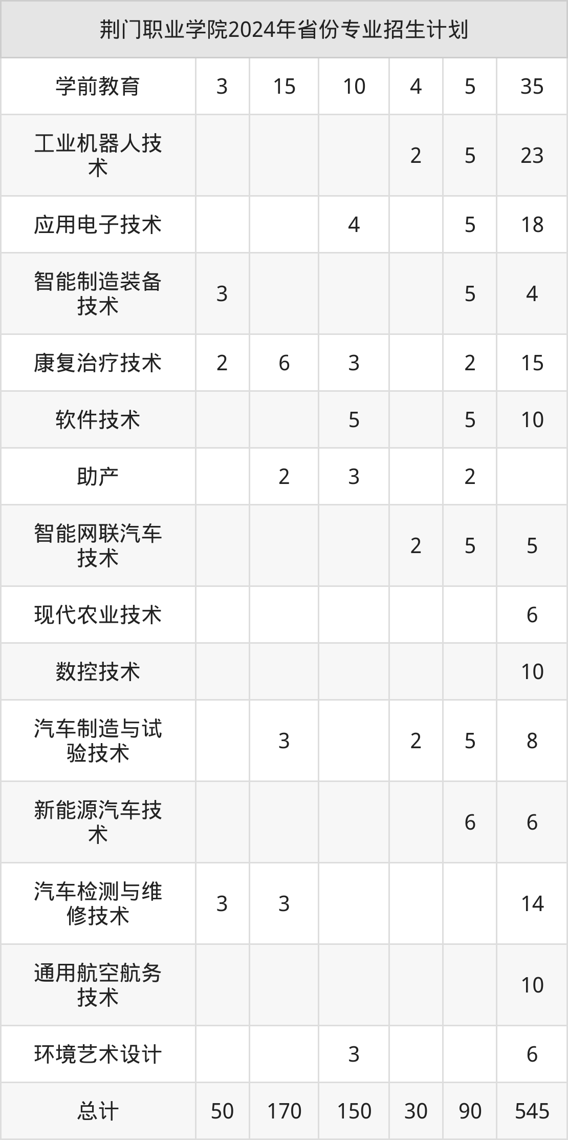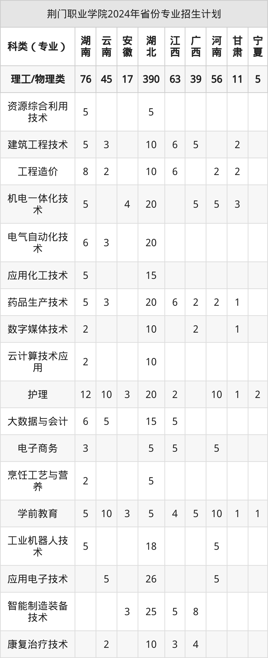 2025年荆门职业学院专科招生计划待公布,下面附上2024年数据,暂供参考: