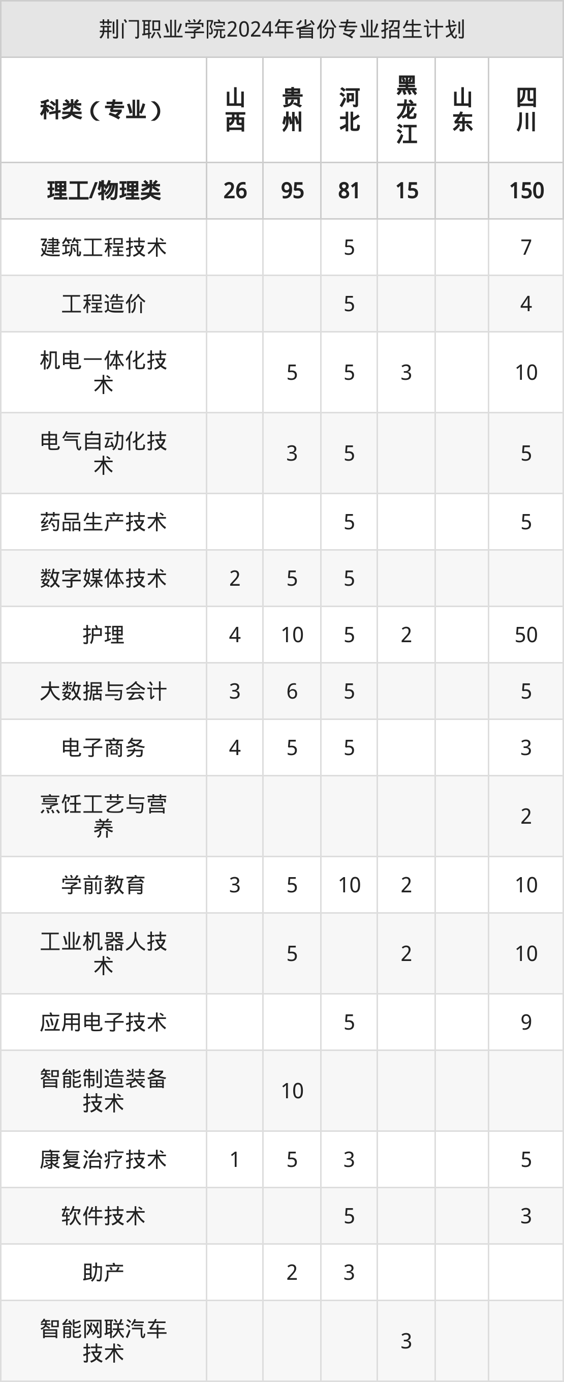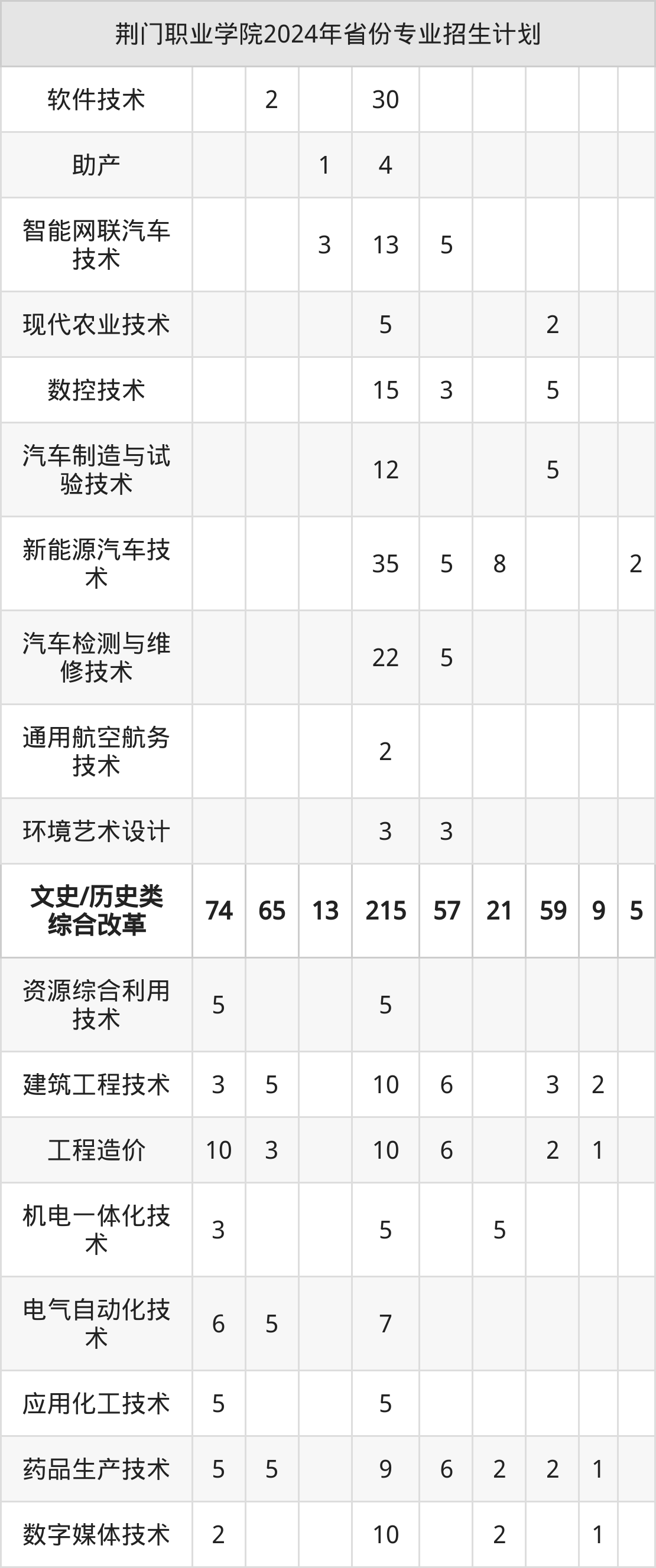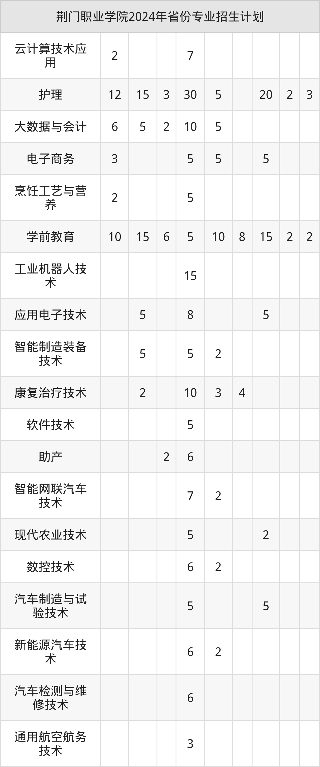 2025年荆门职业学院专科招生计划待公布,下面附上2024年数据,暂供参考: