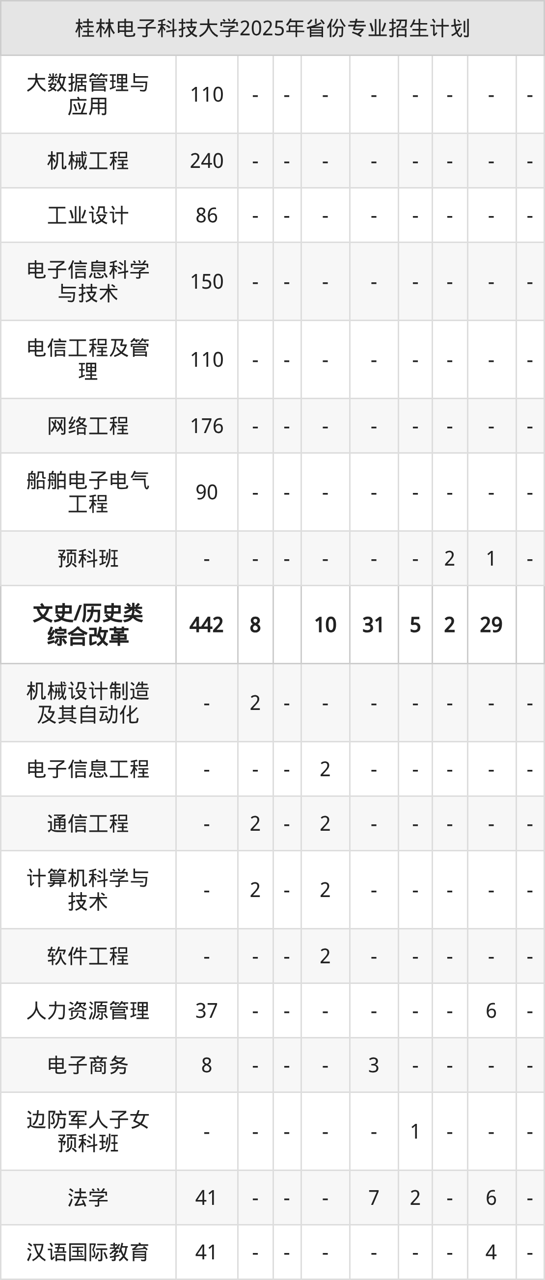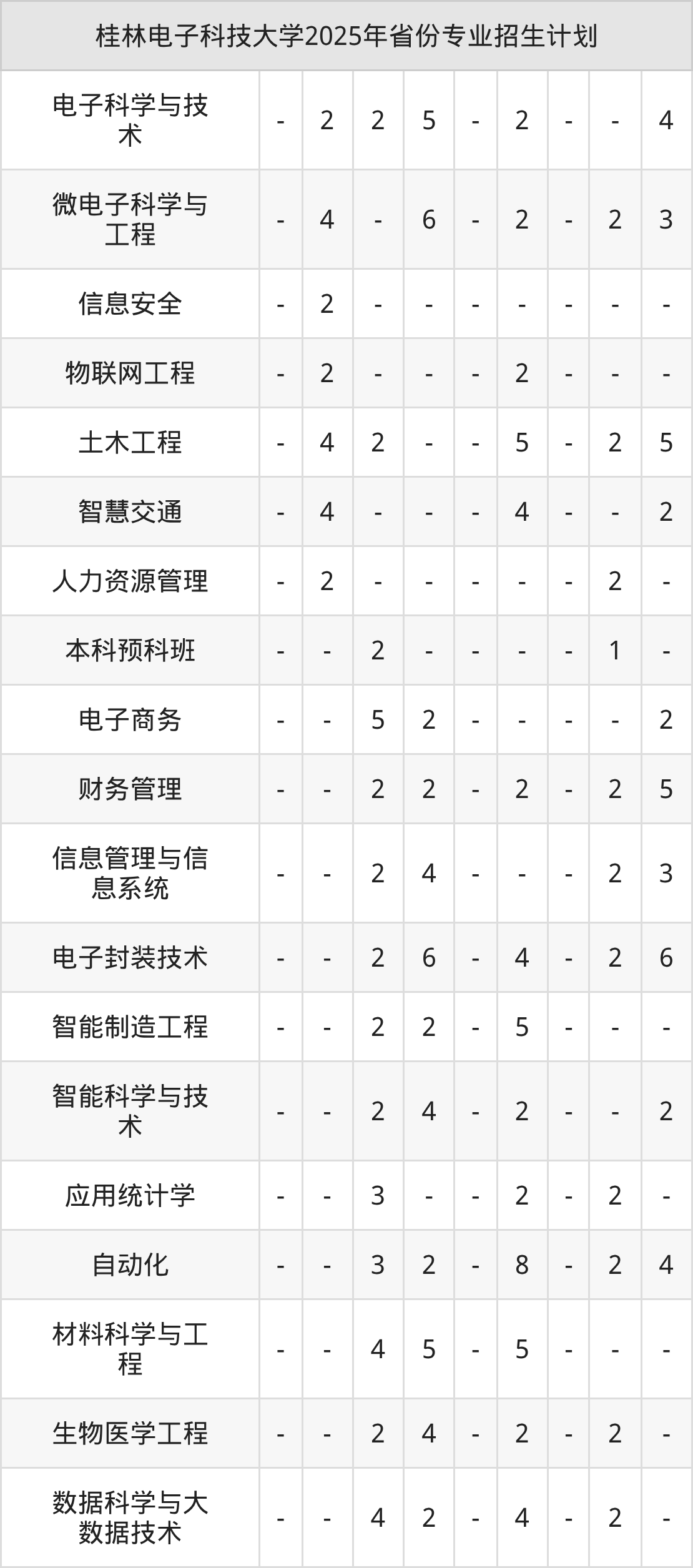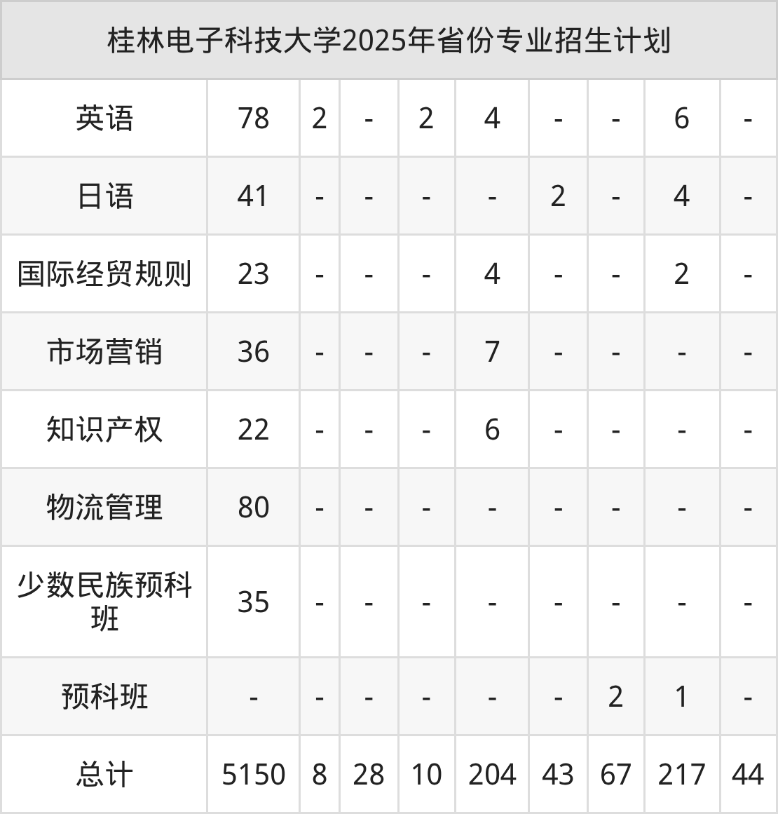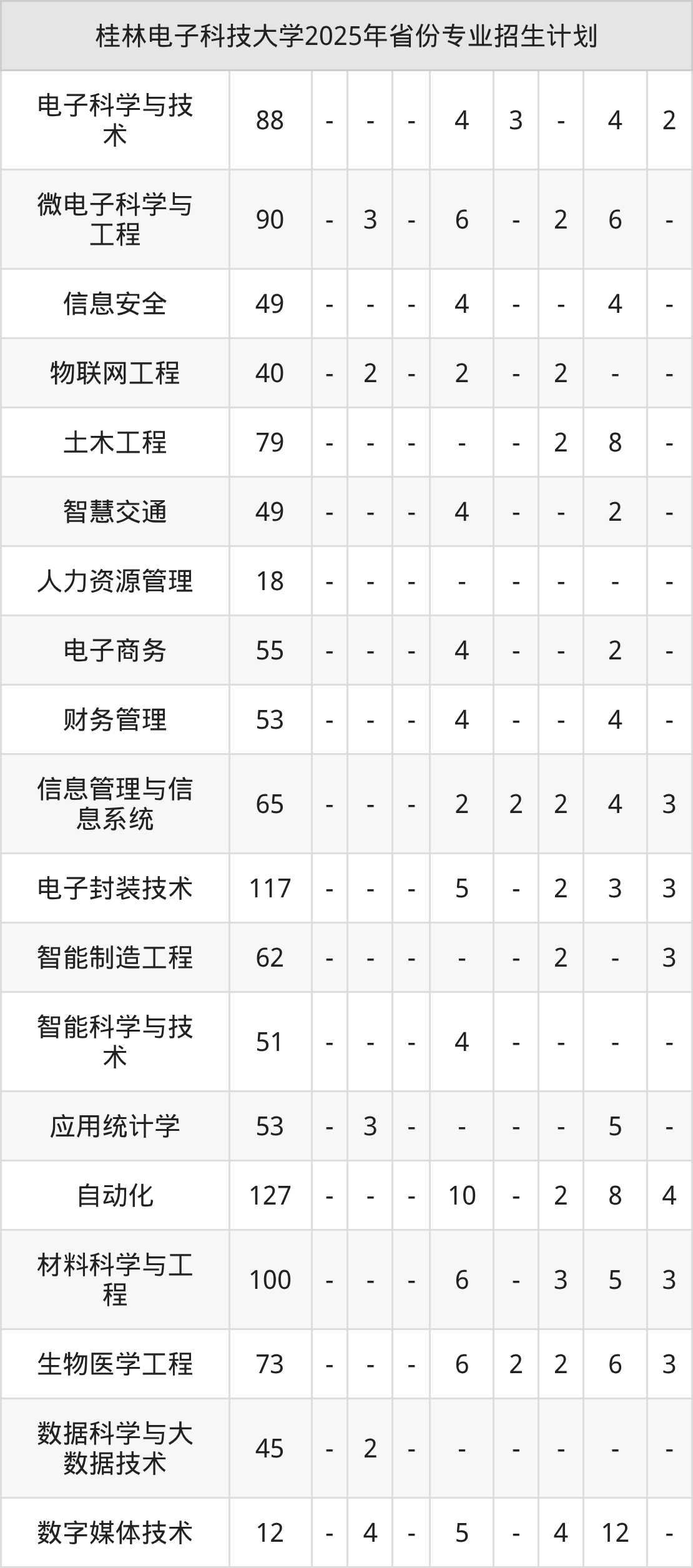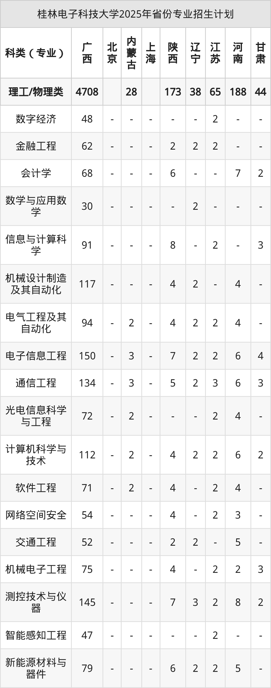 2026年桂林电子科技大学本科招生计划待公布,下面附上2025年数据,暂供参考: