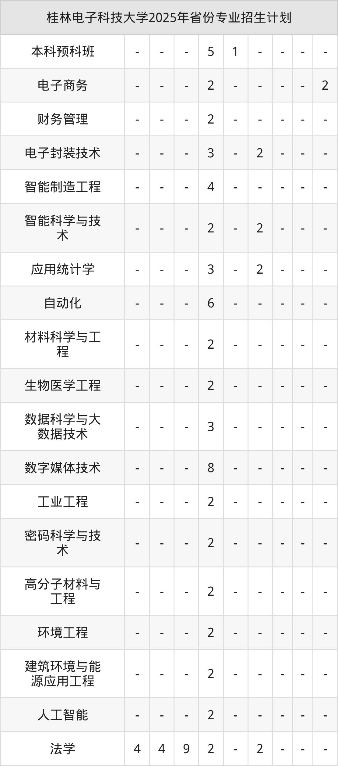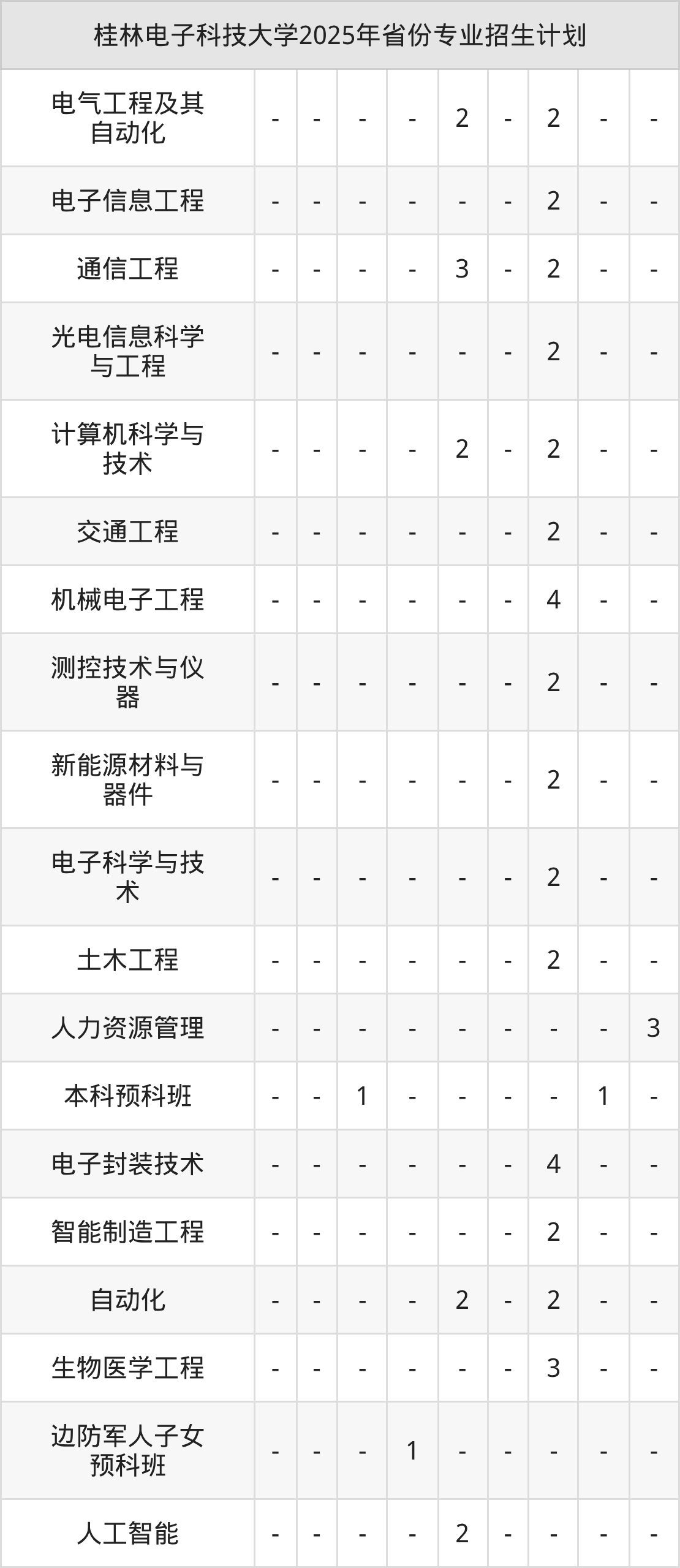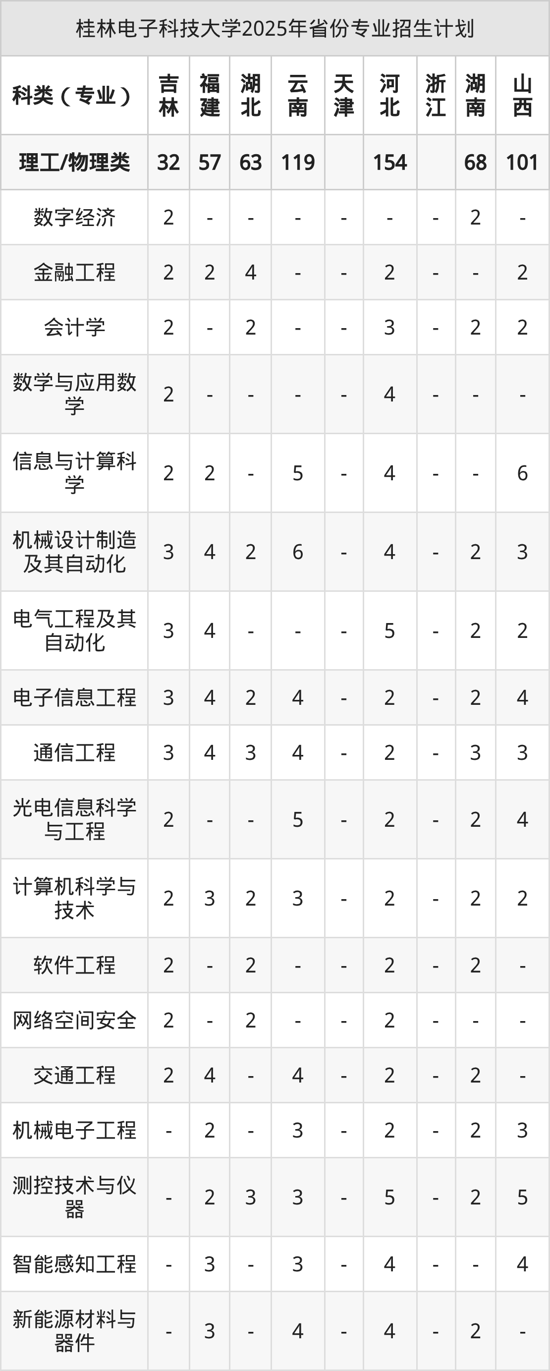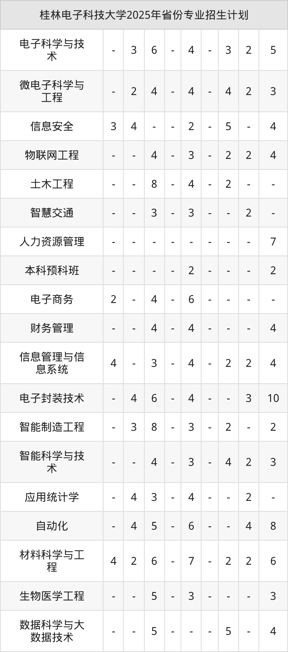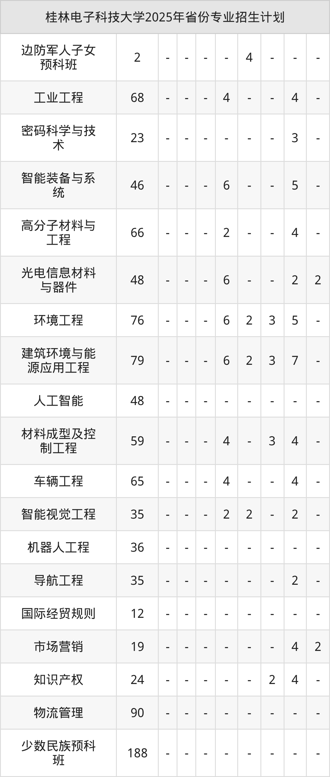 2026年桂林电子科技大学本科招生计划待公布,下面附上2025年数据,暂供参考: