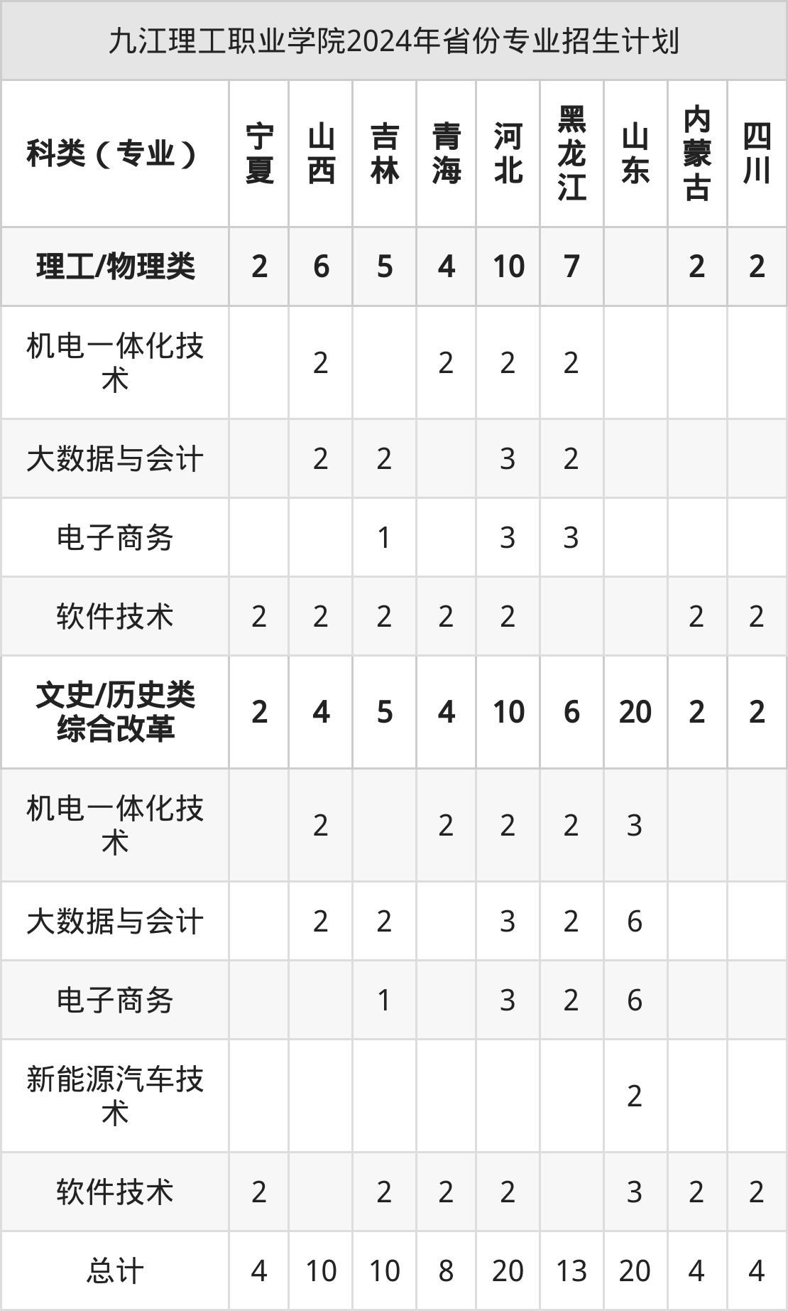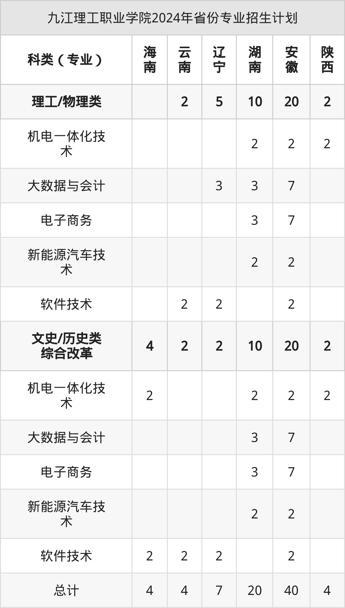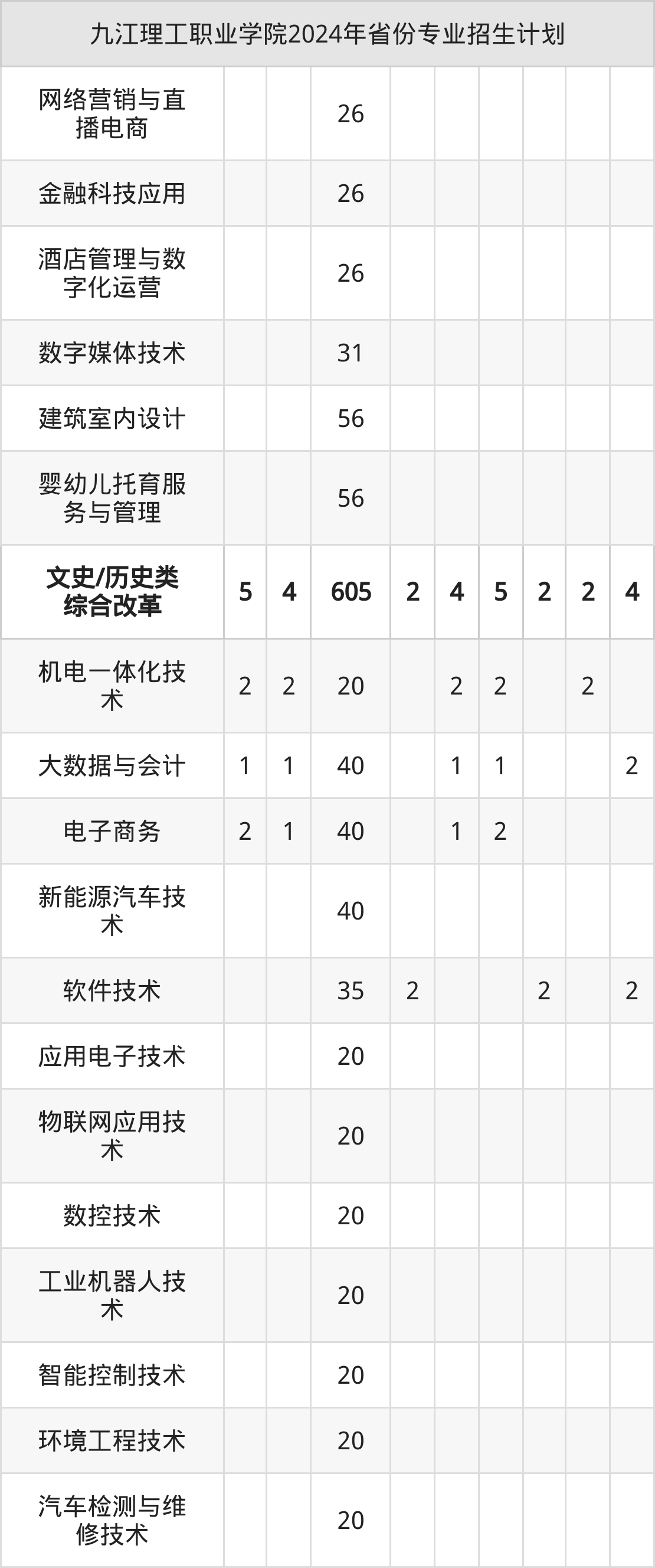 2025年九江理工职业学院专科招生计划待公布,下面附上2024年数据,暂供参考: