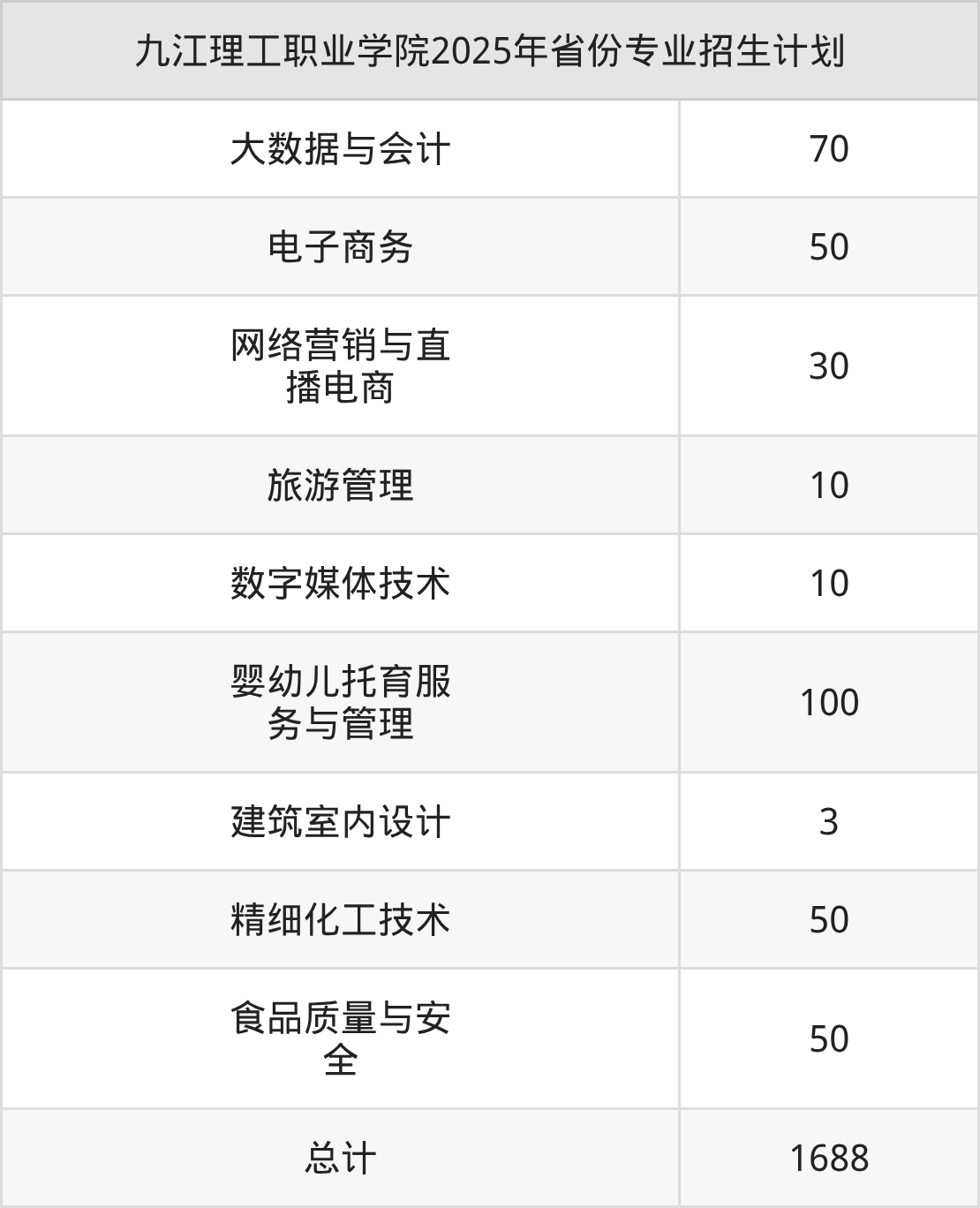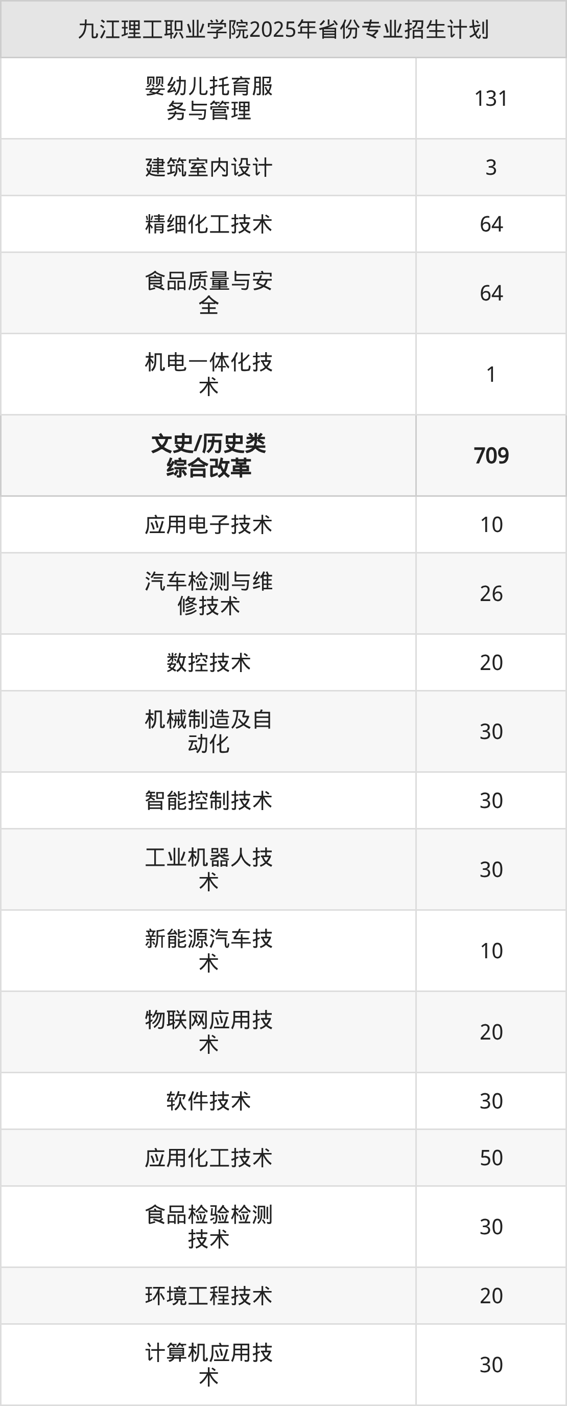 2026年九江理工职业学院专科招生计划待公布,下面附上2025年数据,暂供参考: