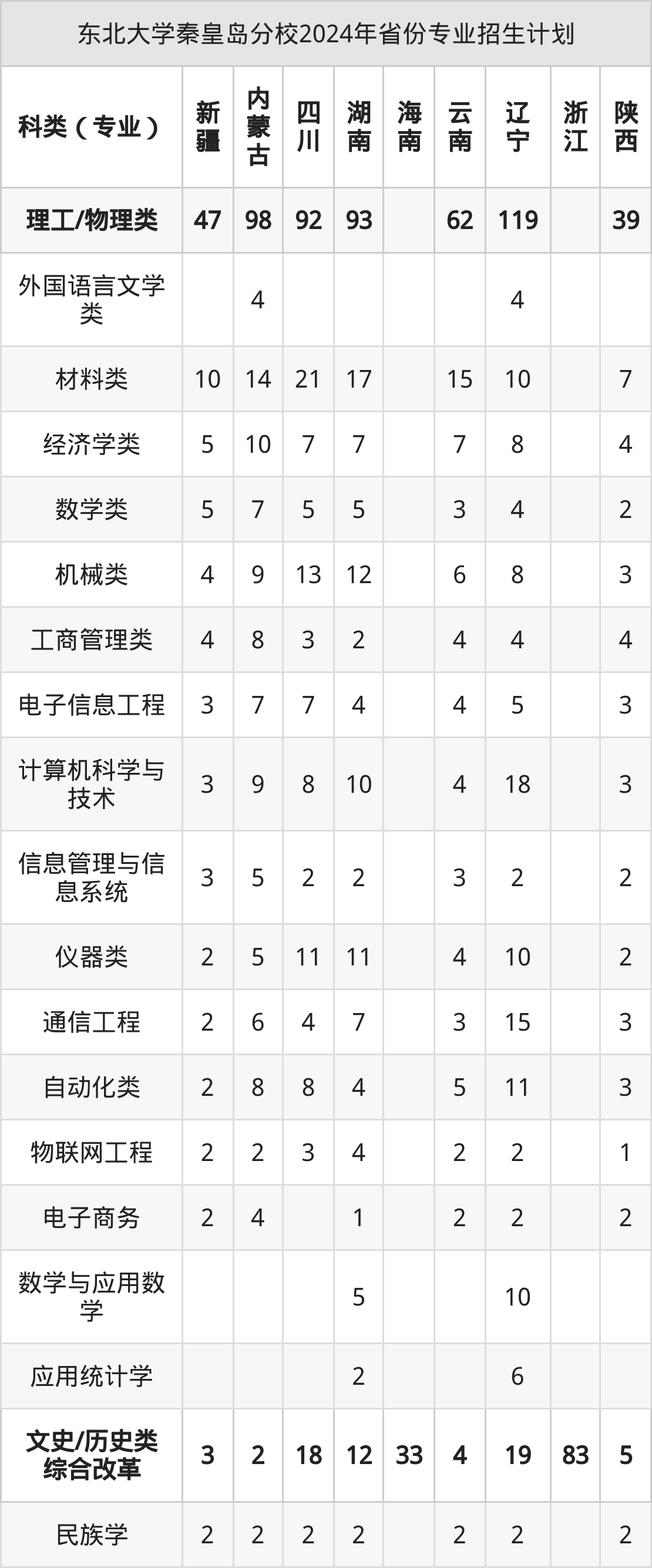 2025年东北大学秦皇岛分校本科招生计划待公布,下面附上2024年数据,暂供参考:
