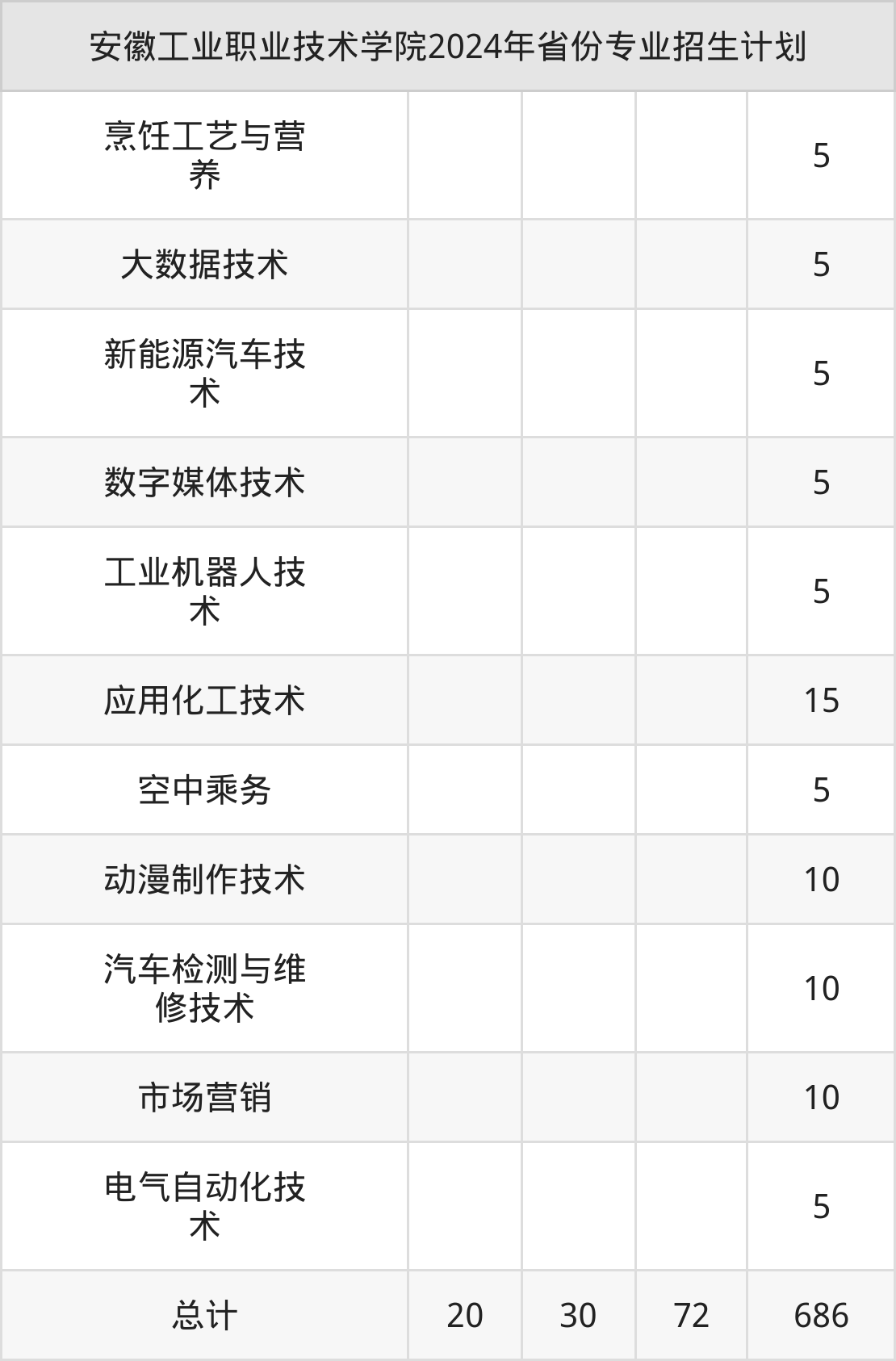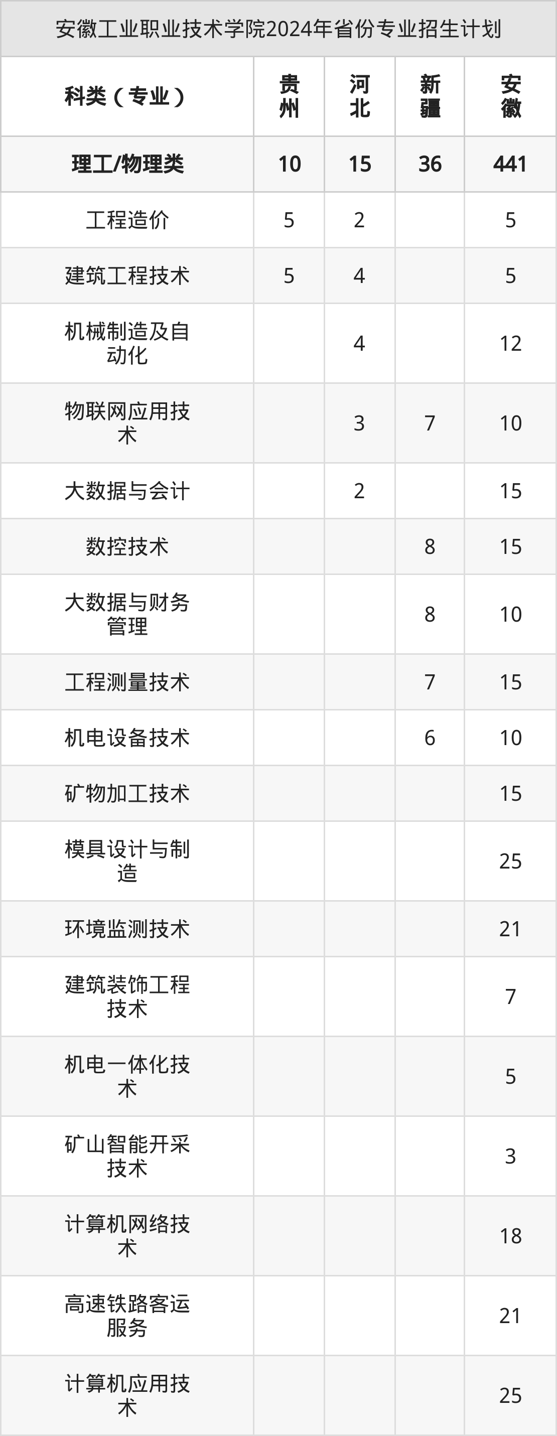2025年安徽工业职业技术学院专科招生计划待公布,下面附上2024年数据,暂供参考: