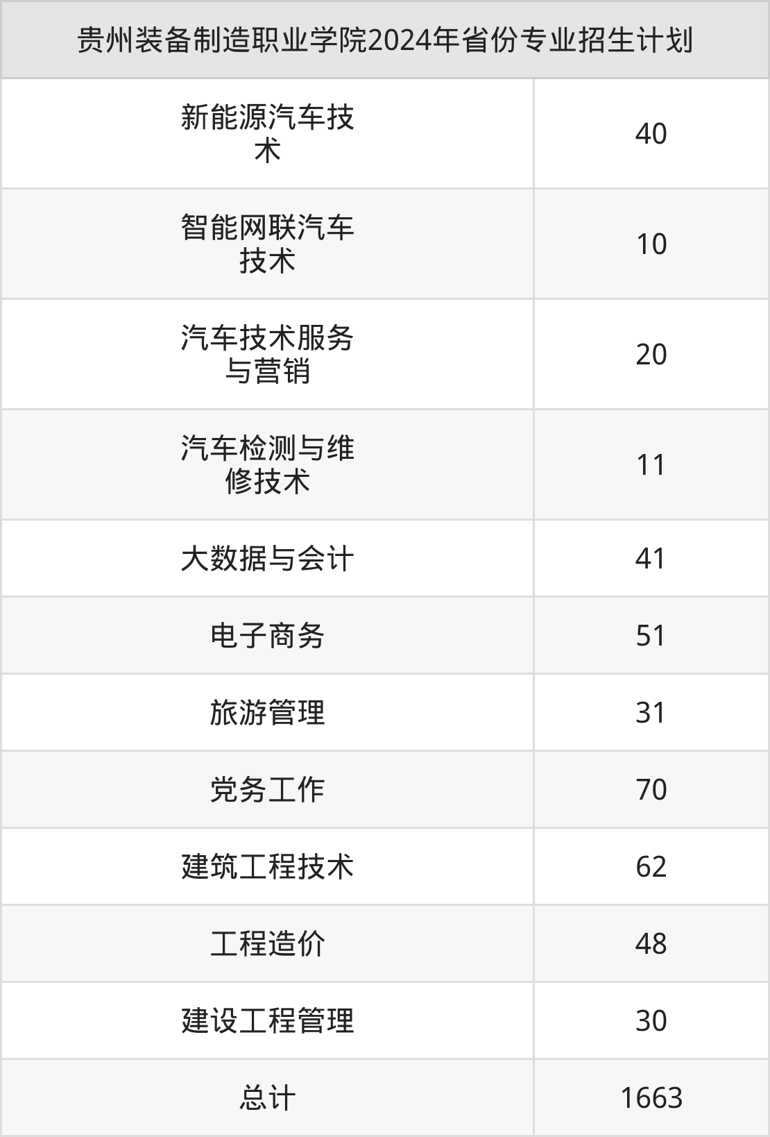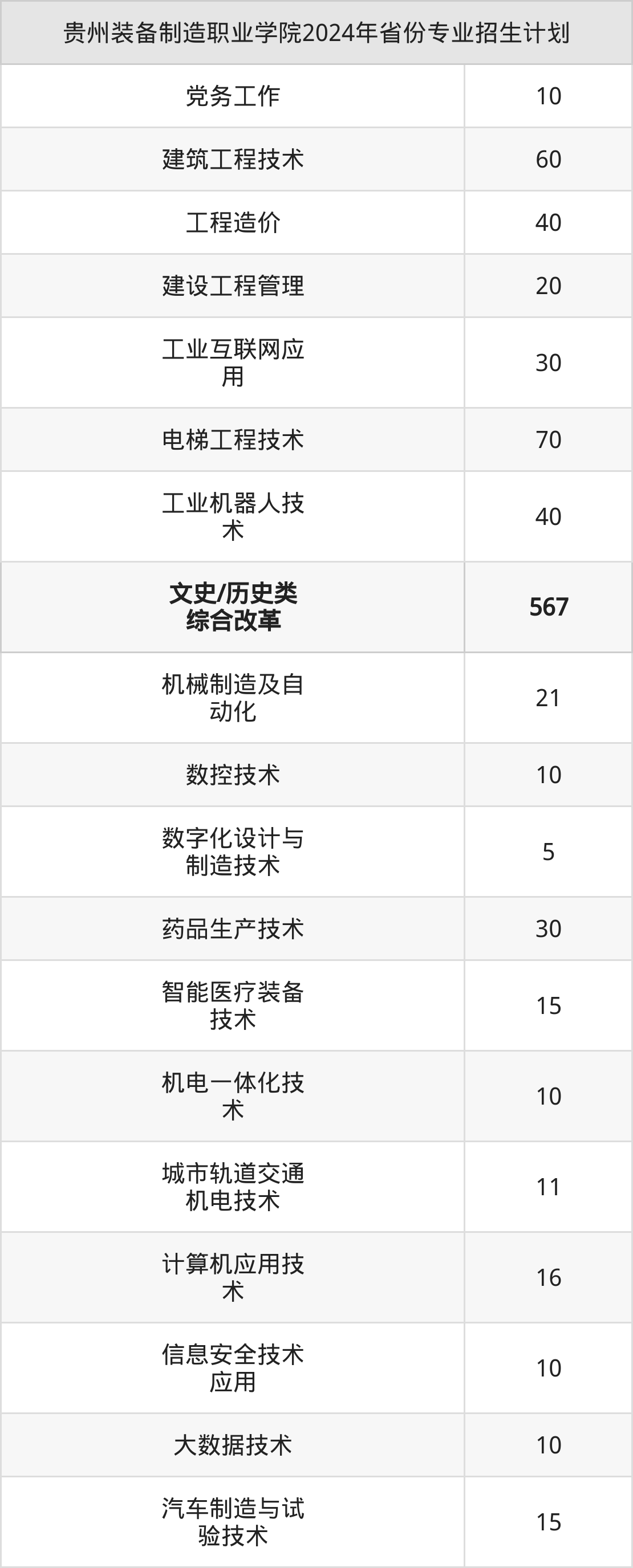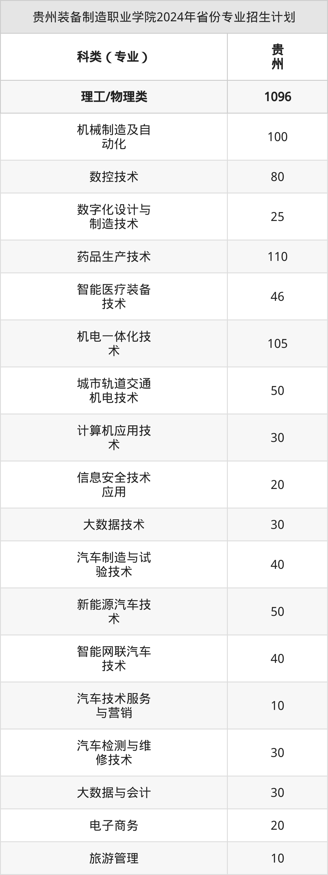 2025年贵州装备制造职业学院专科招生计划待公布,下面附上2024年数据,暂供参考: