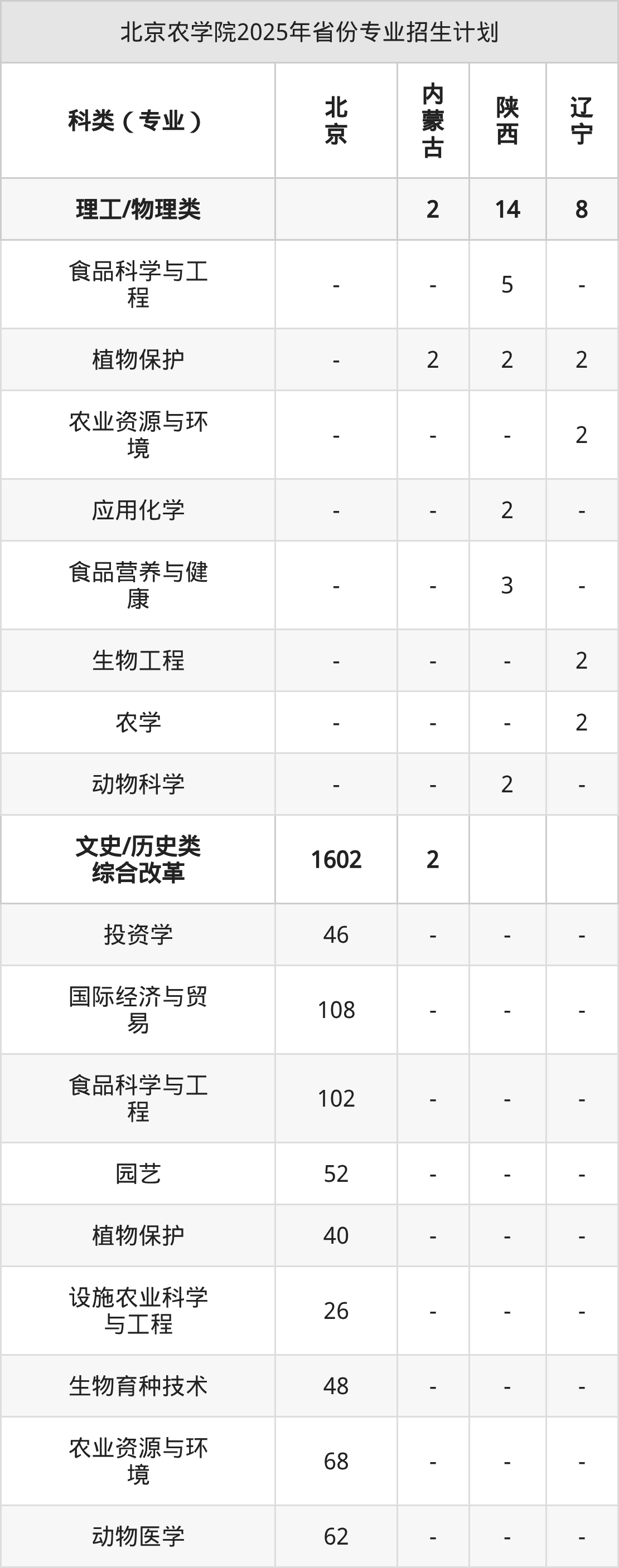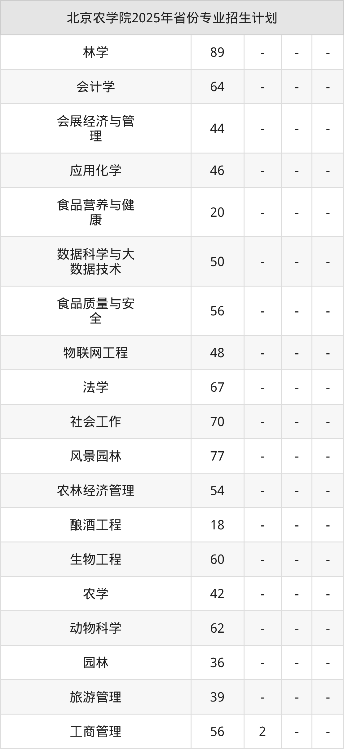 2026年北京农学院本科招生计划待公布,下面附上2025年数据,暂供参考:
