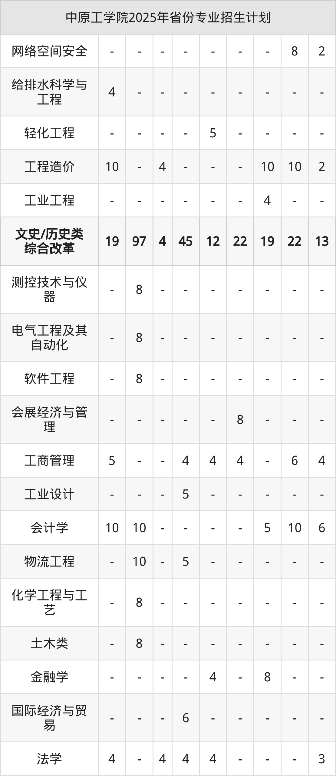 2026年中原工学院本科招生计划待公布,下面附上2025年数据,暂供参考: