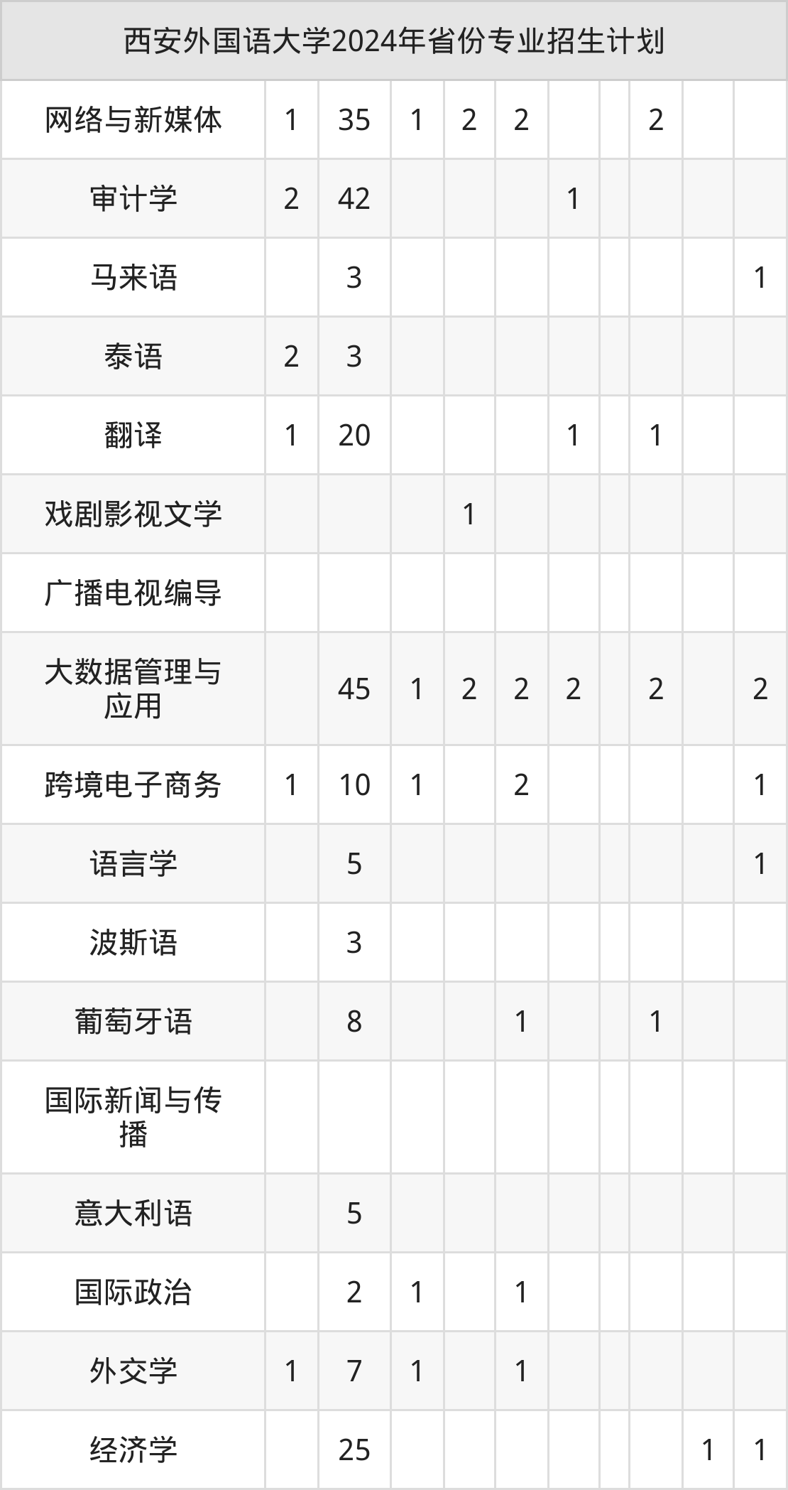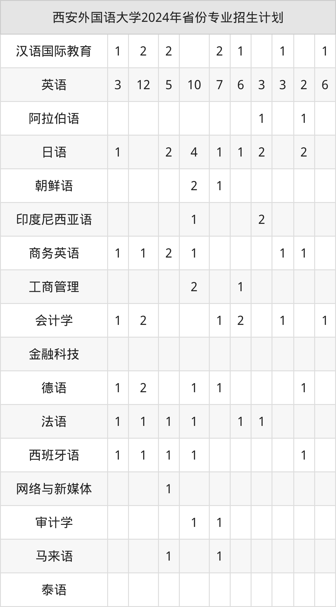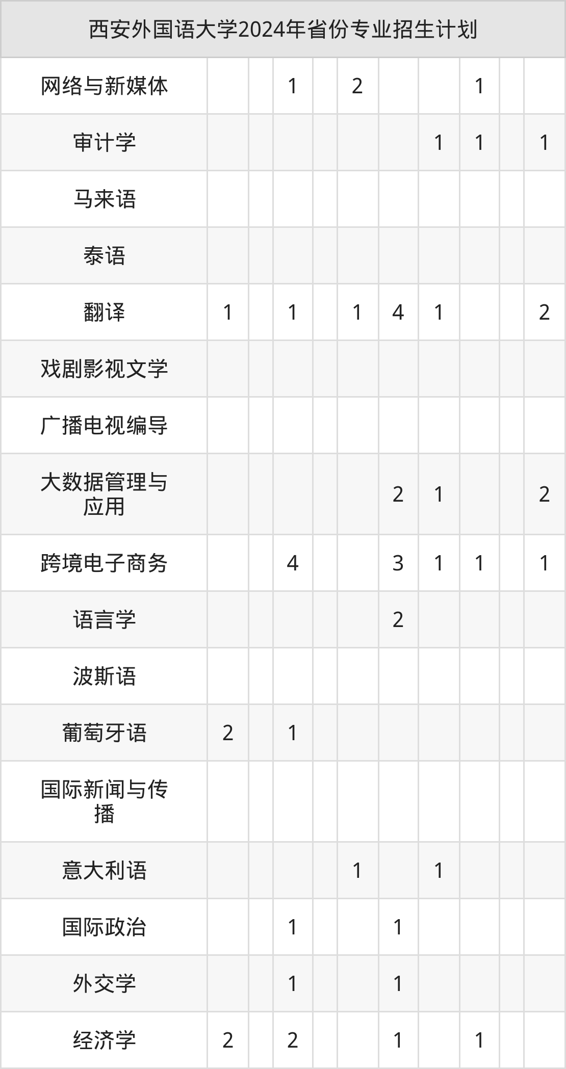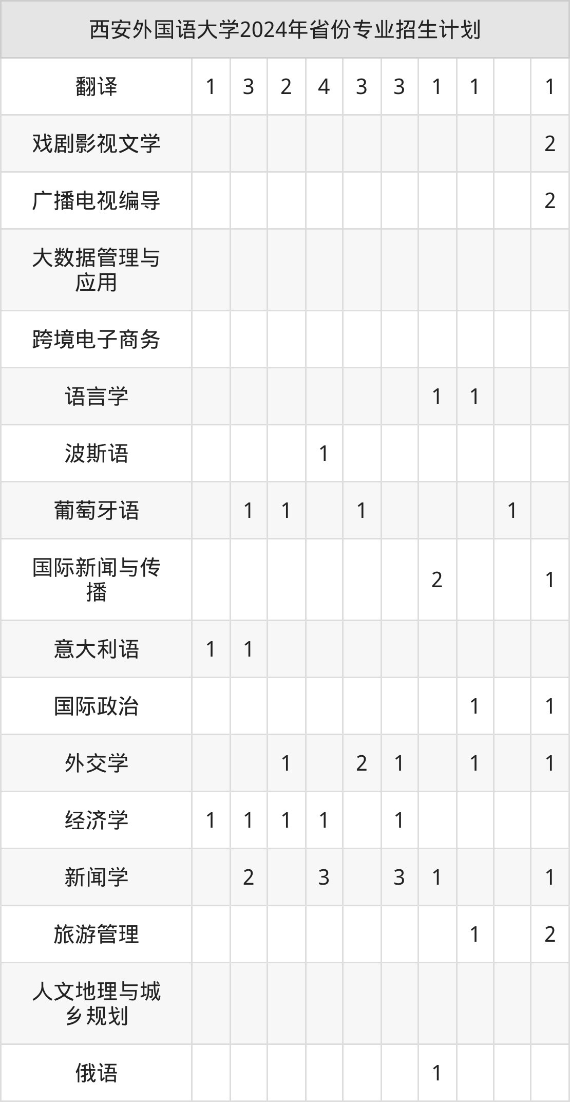 2025年西安外国语大学本科招生计划待公布,下面附上2024年数据,暂供参考:
