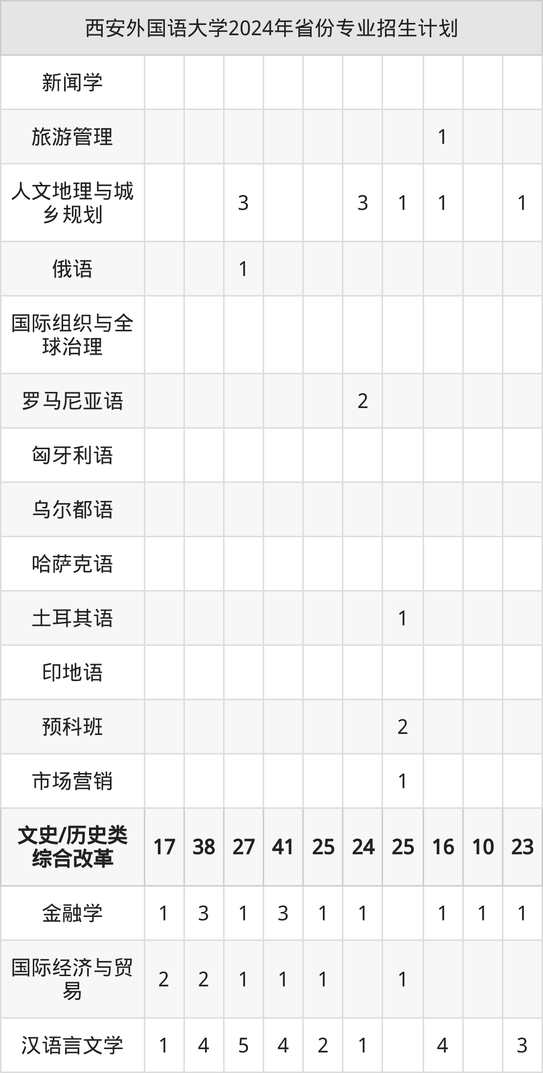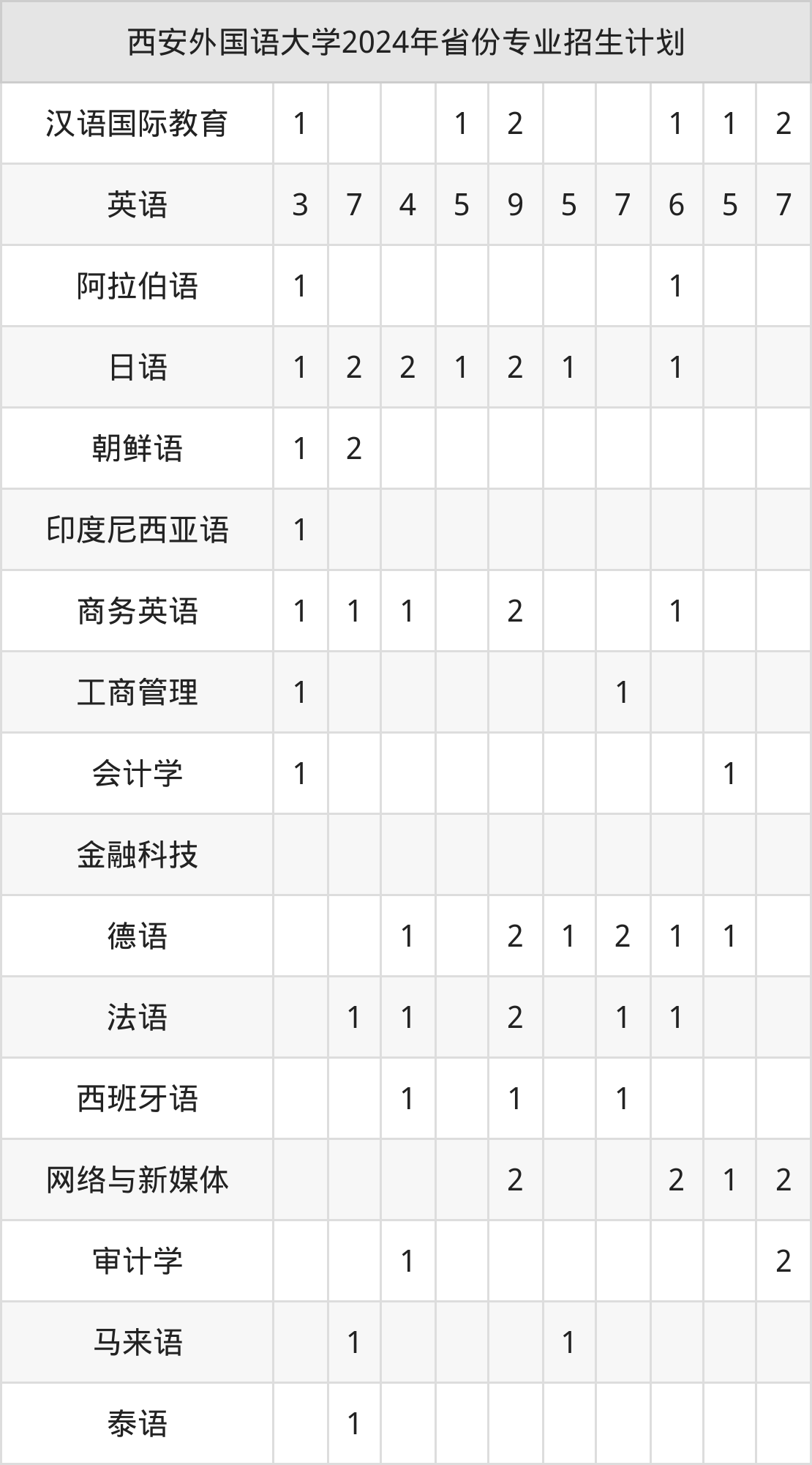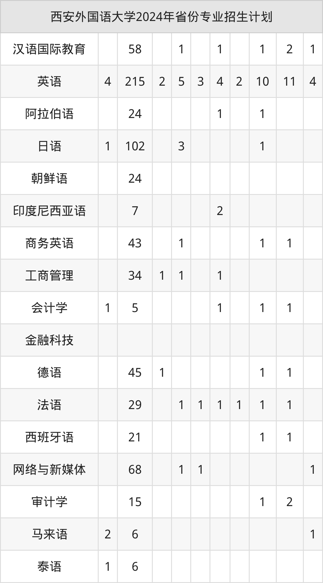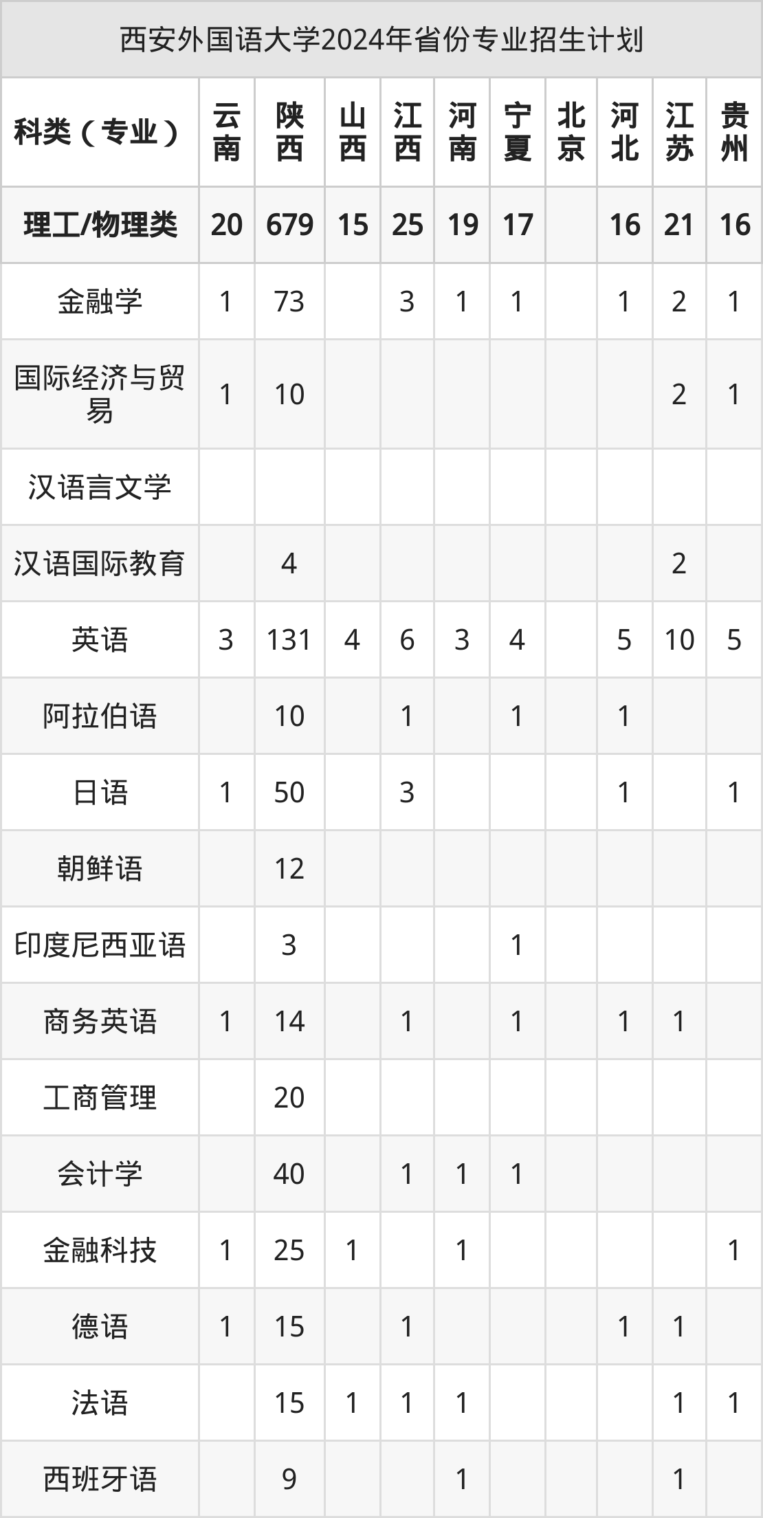 2025年西安外国语大学本科招生计划待公布,下面附上2024年数据,暂供参考: