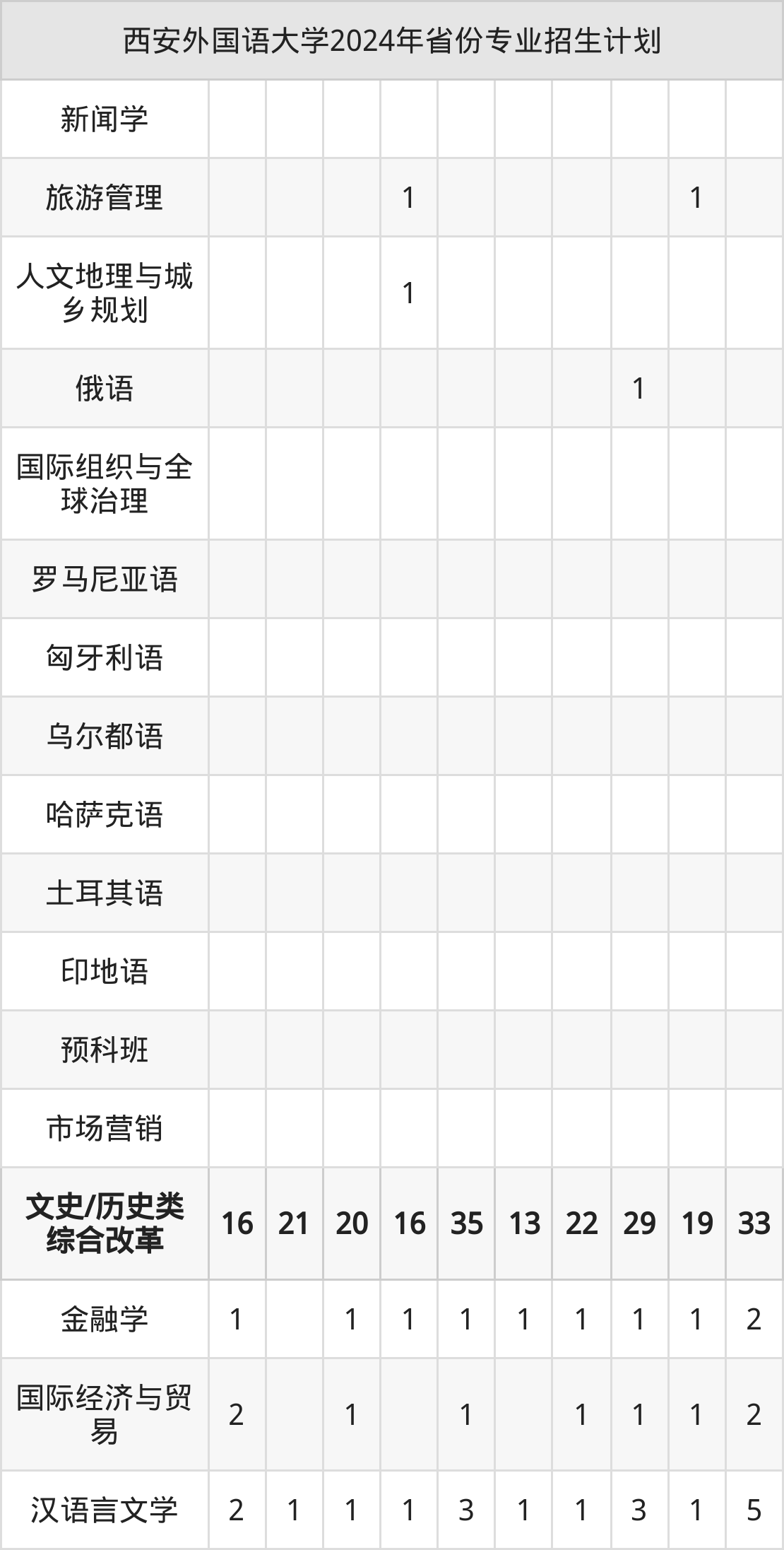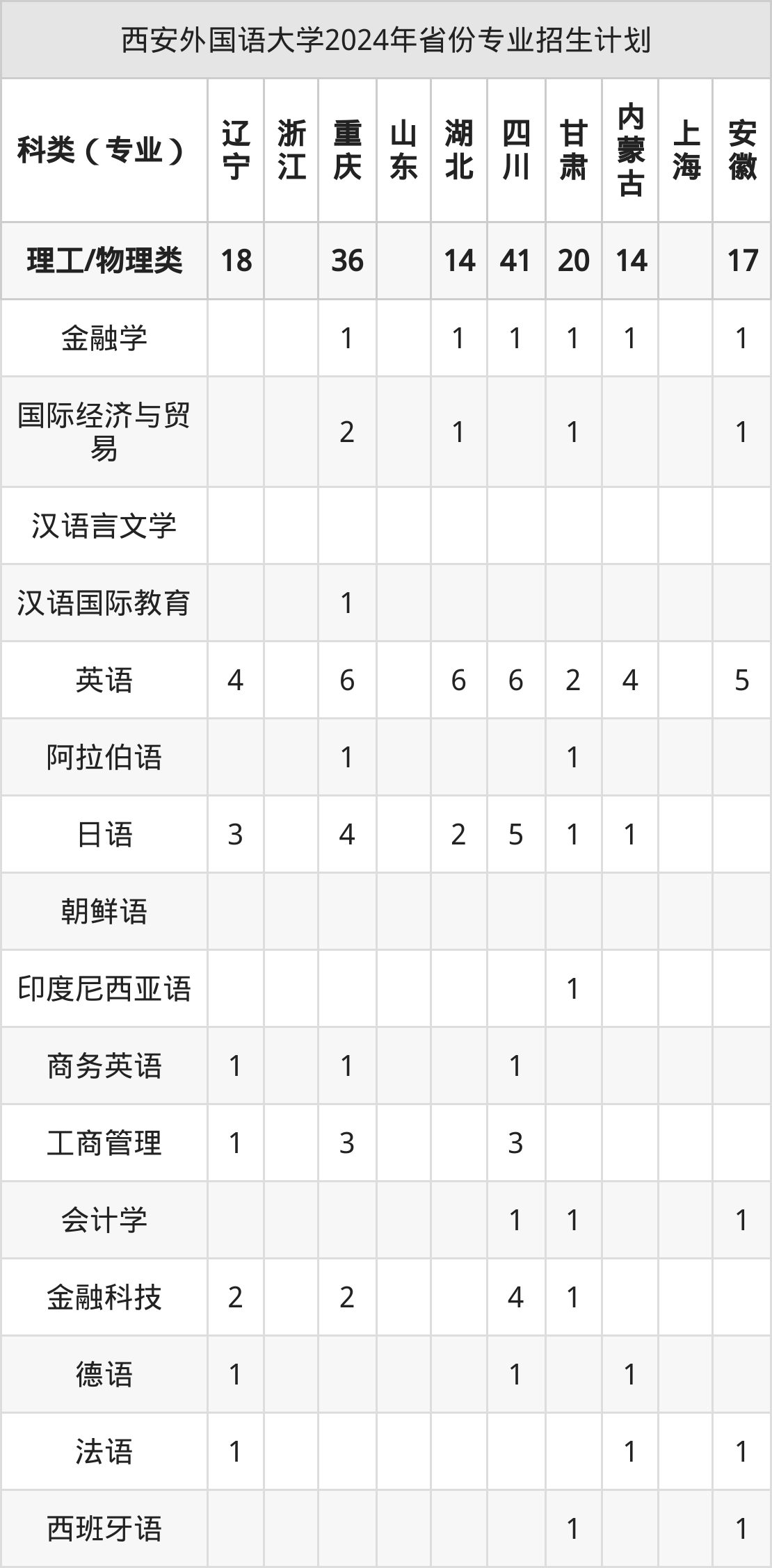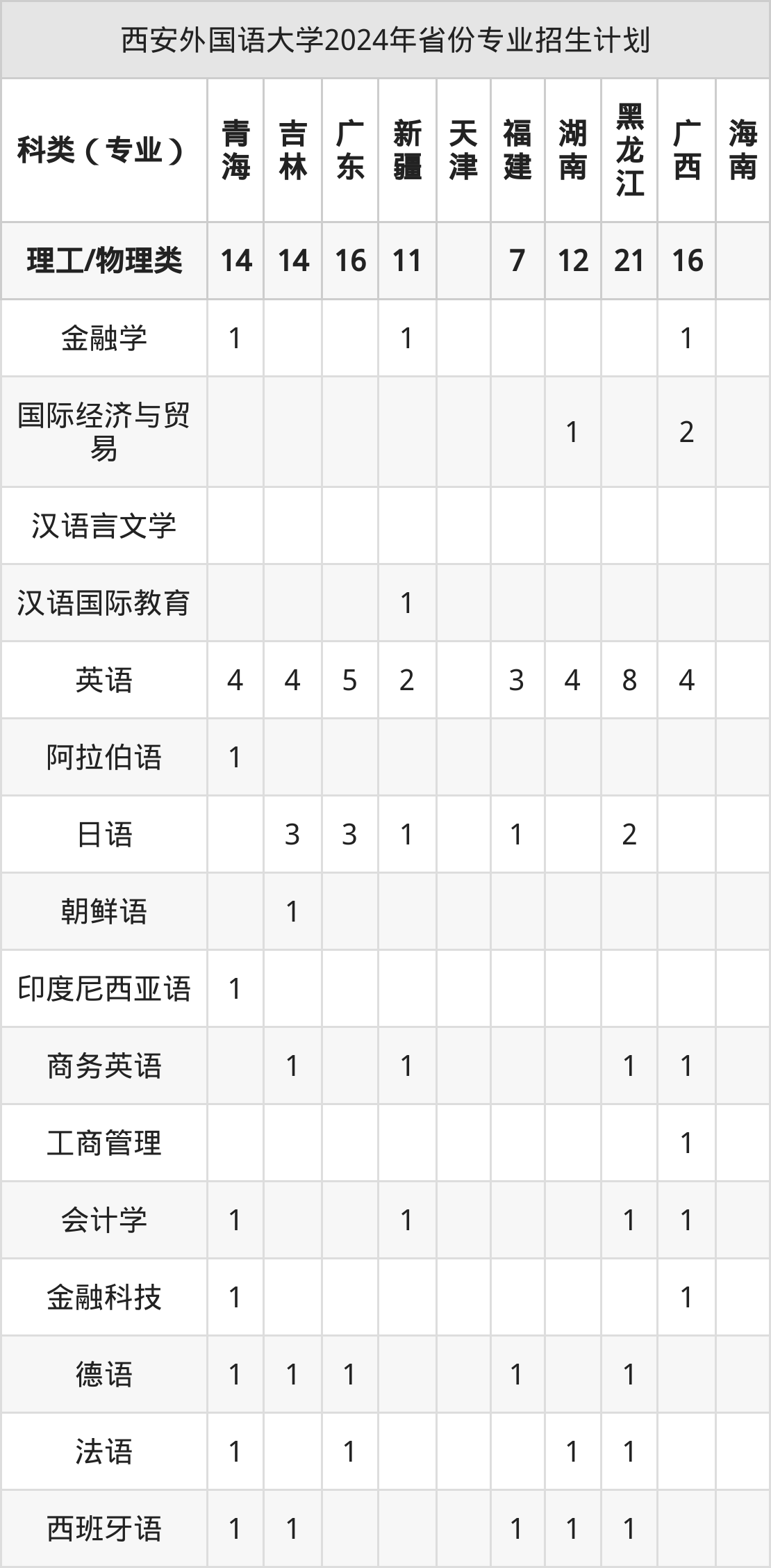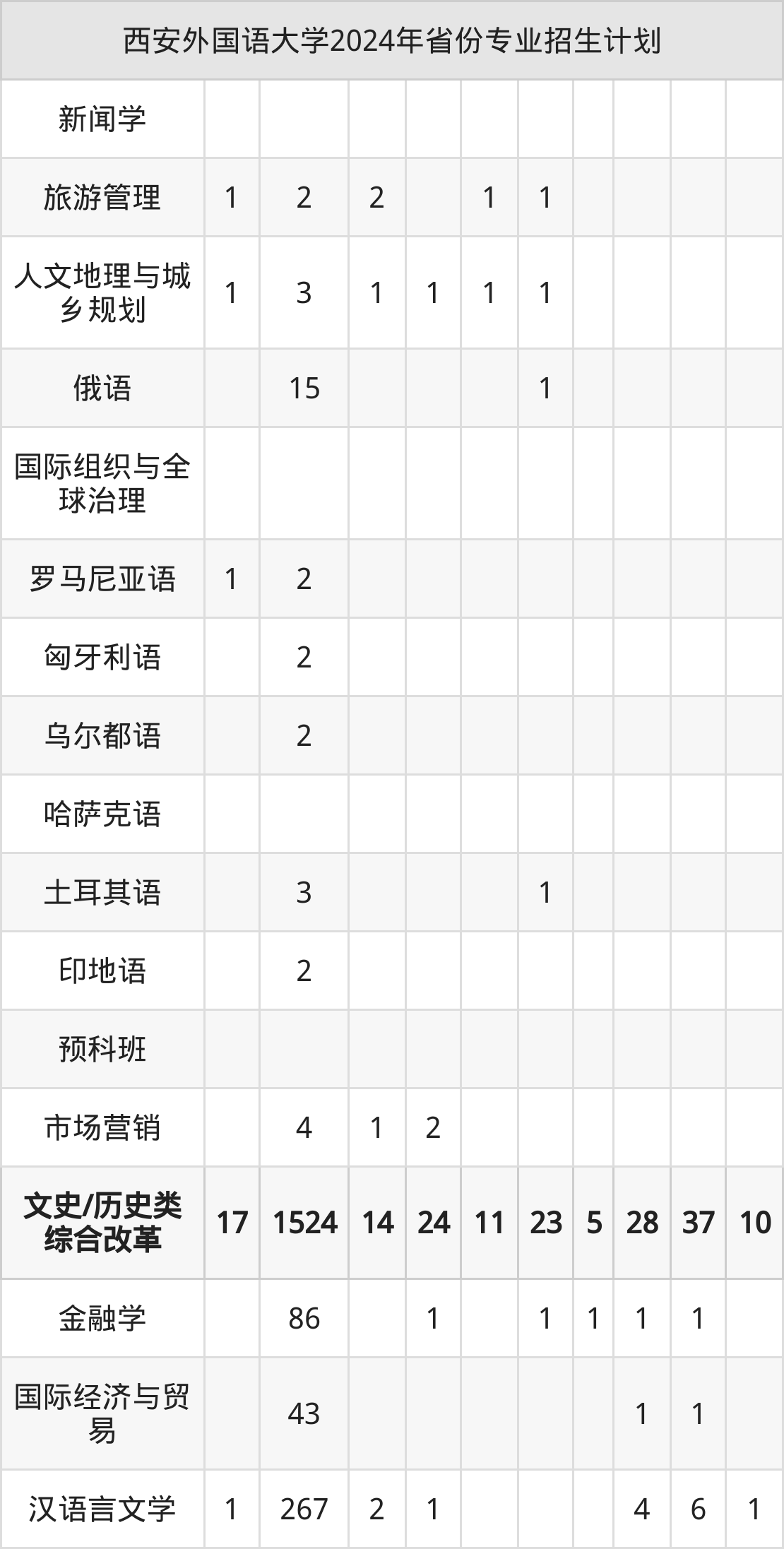 2025年西安外国语大学本科招生计划待公布,下面附上2024年数据,暂供参考: