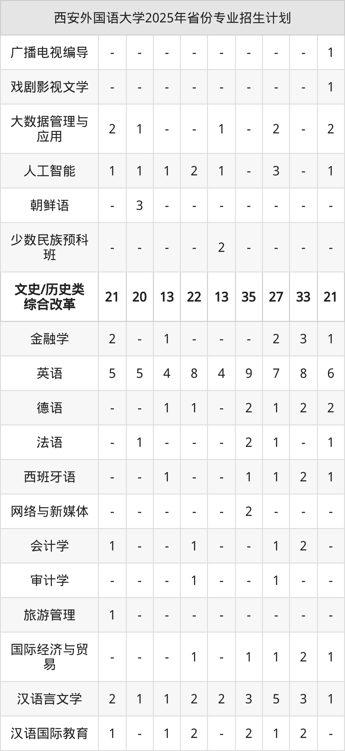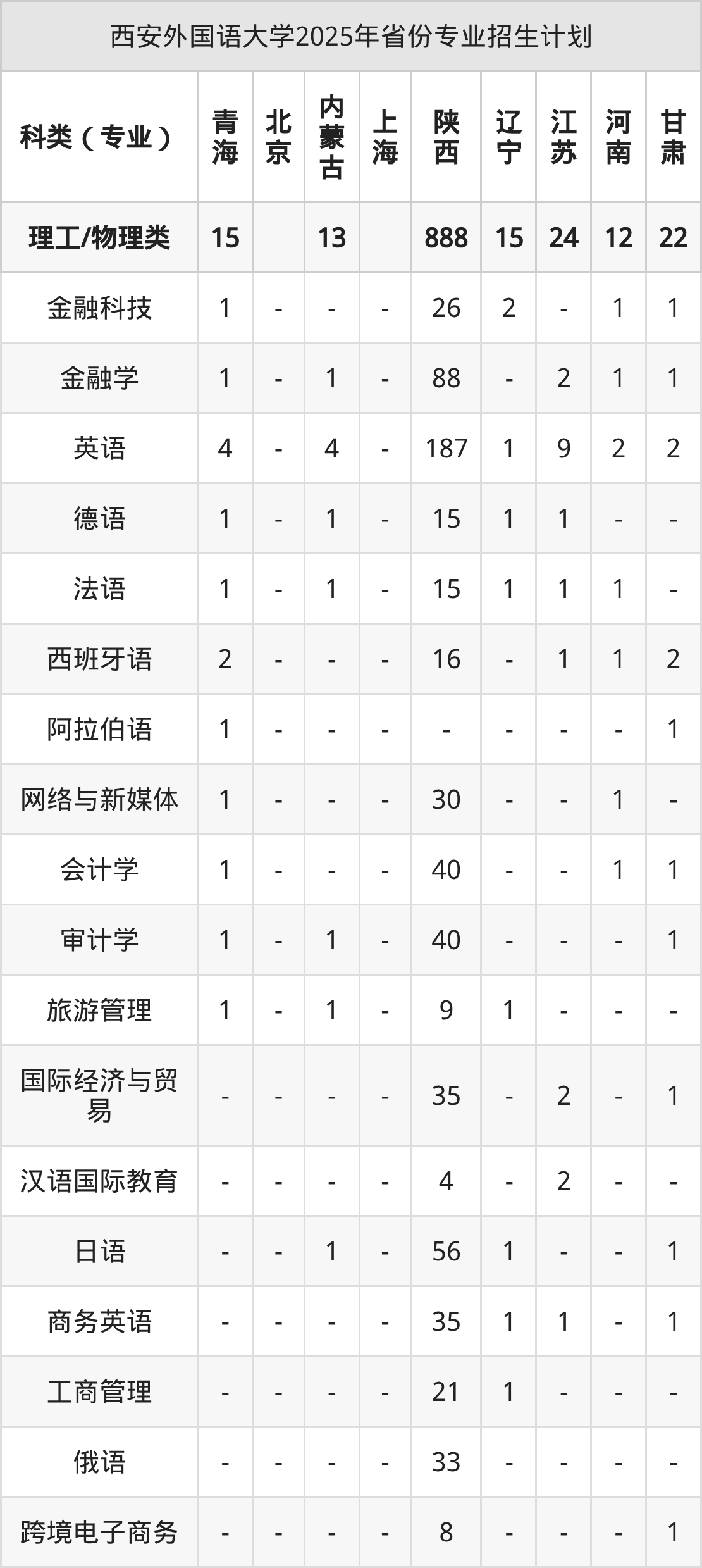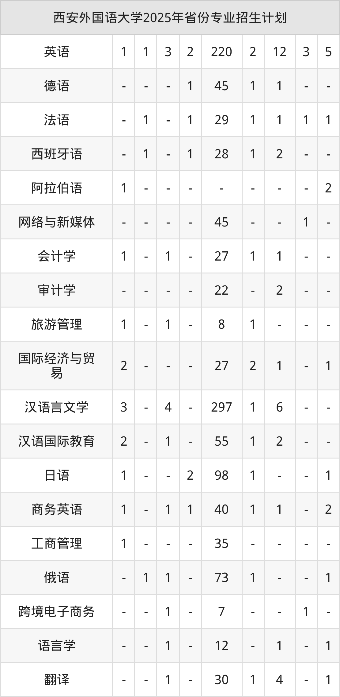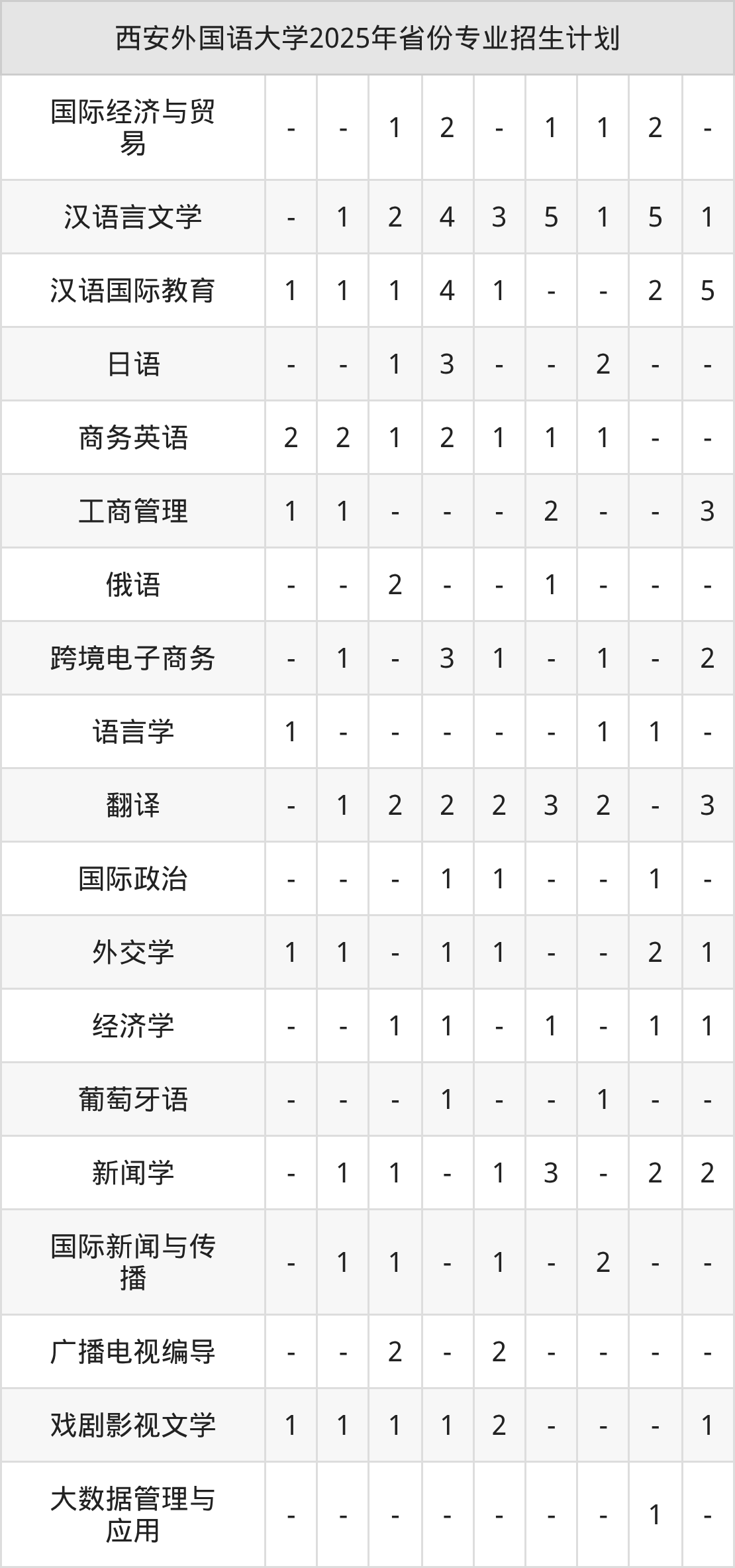 2026年西安外国语大学本科招生计划待公布,下面附上2025年数据,暂供参考: