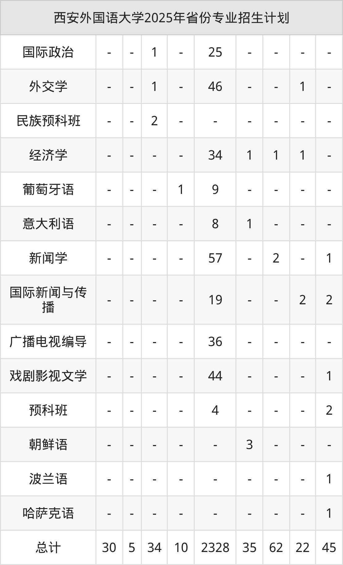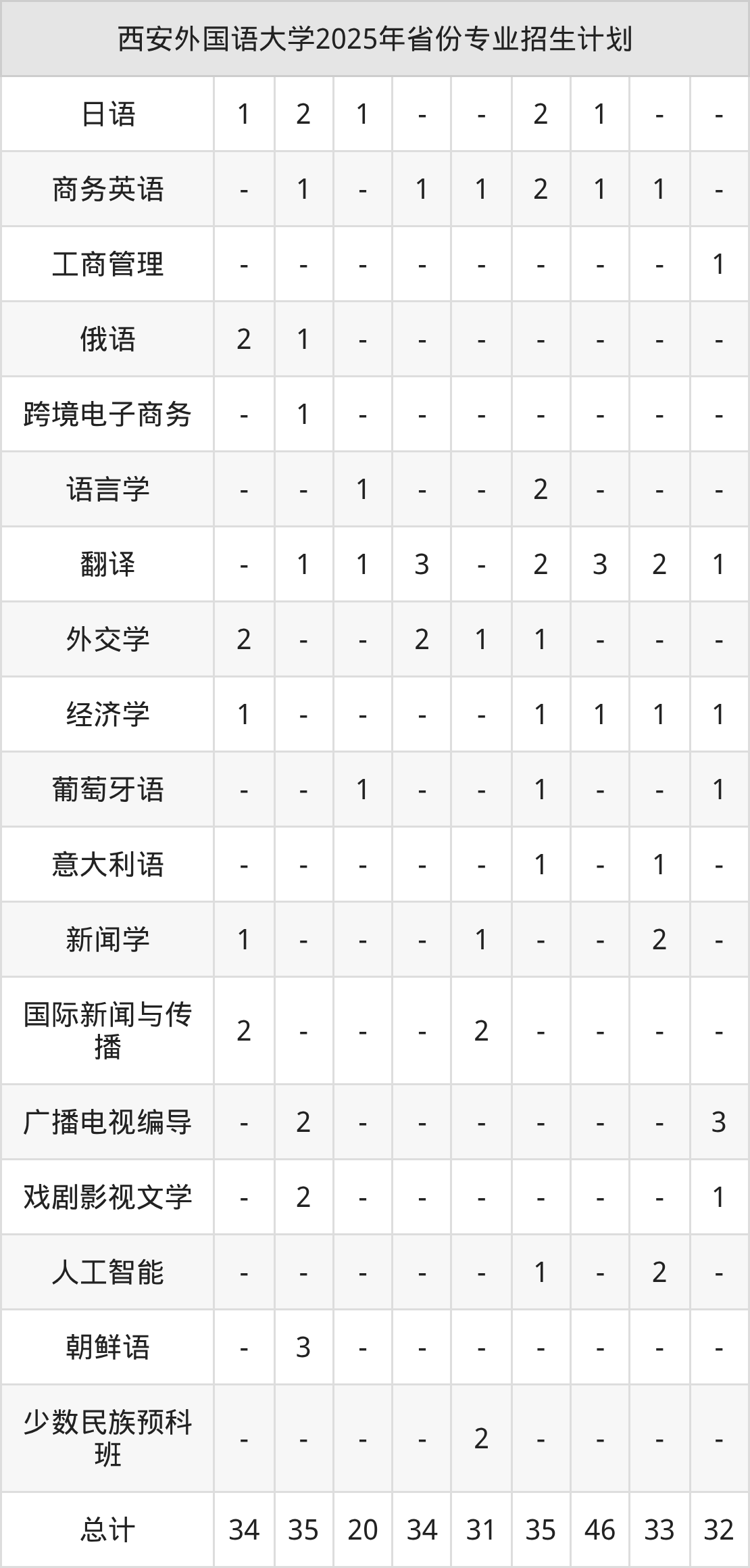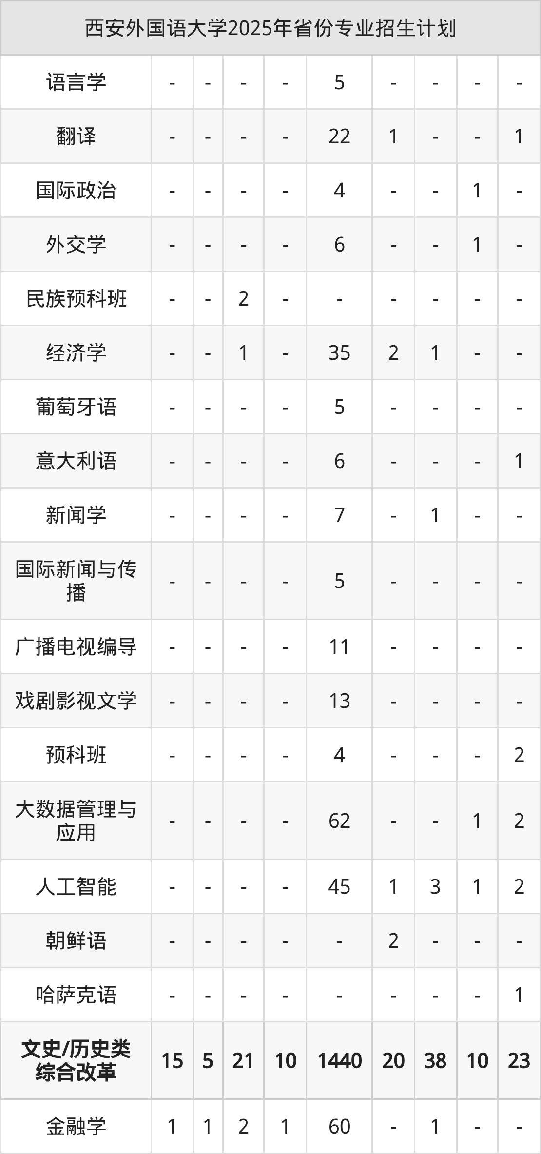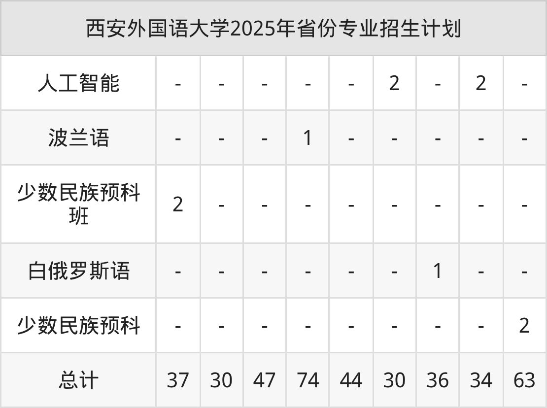 2026年西安外国语大学本科招生计划待公布,下面附上2025年数据,暂供参考: