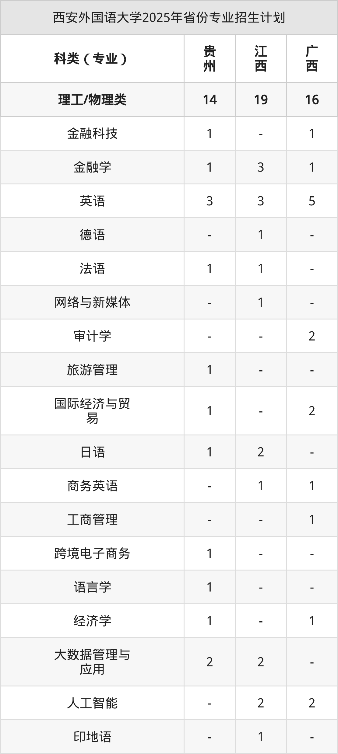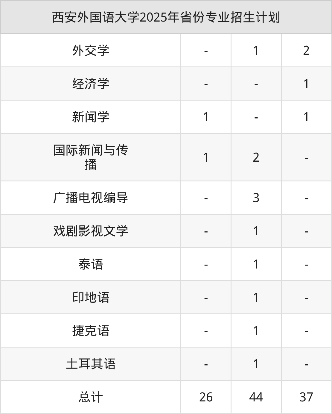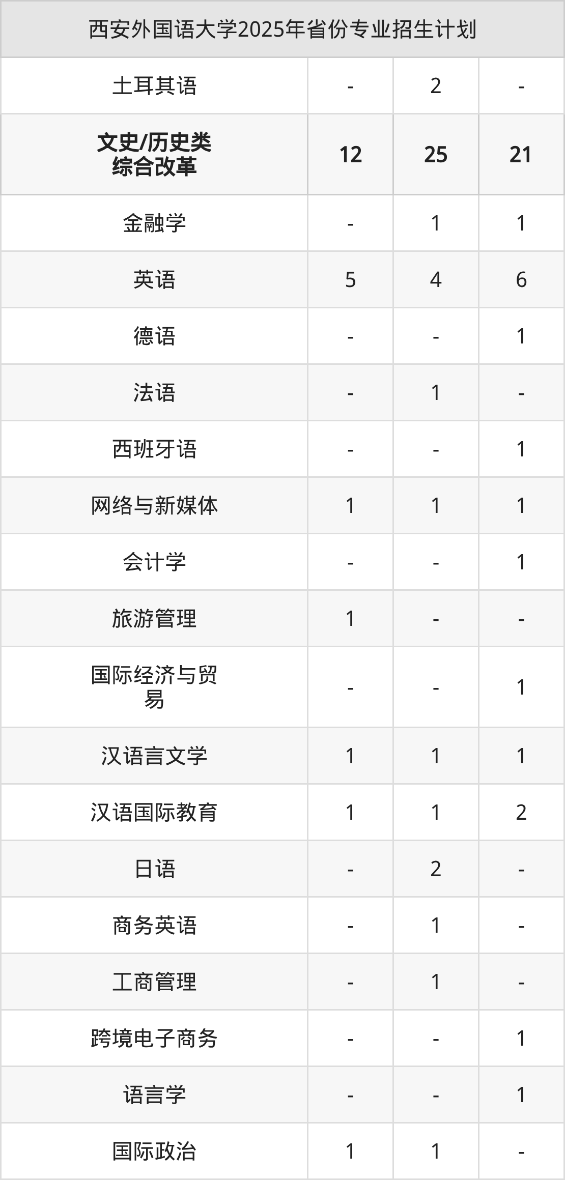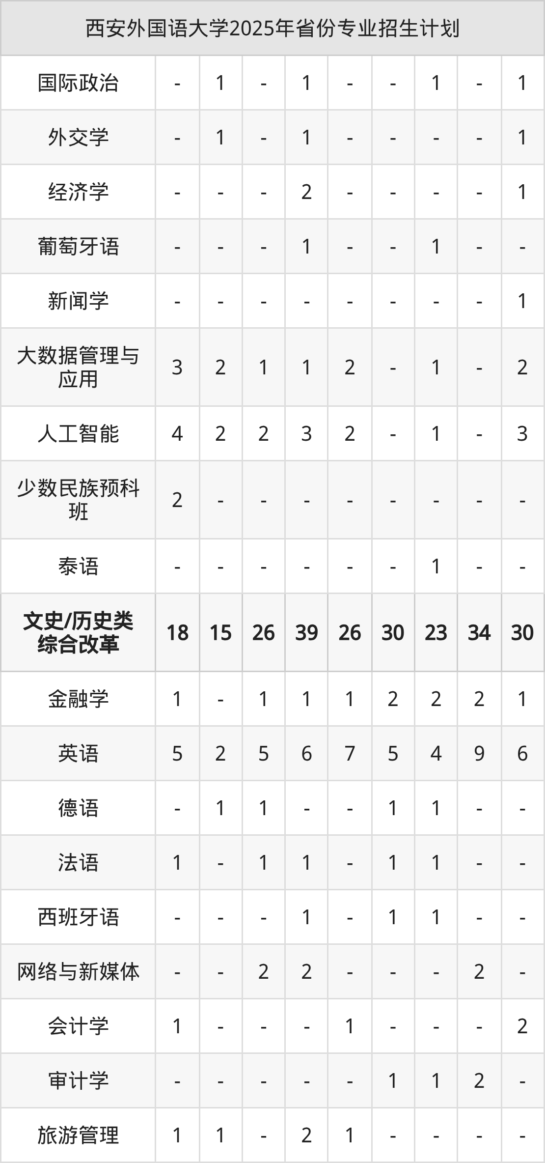 2026年西安外国语大学本科招生计划待公布,下面附上2025年数据,暂供参考: