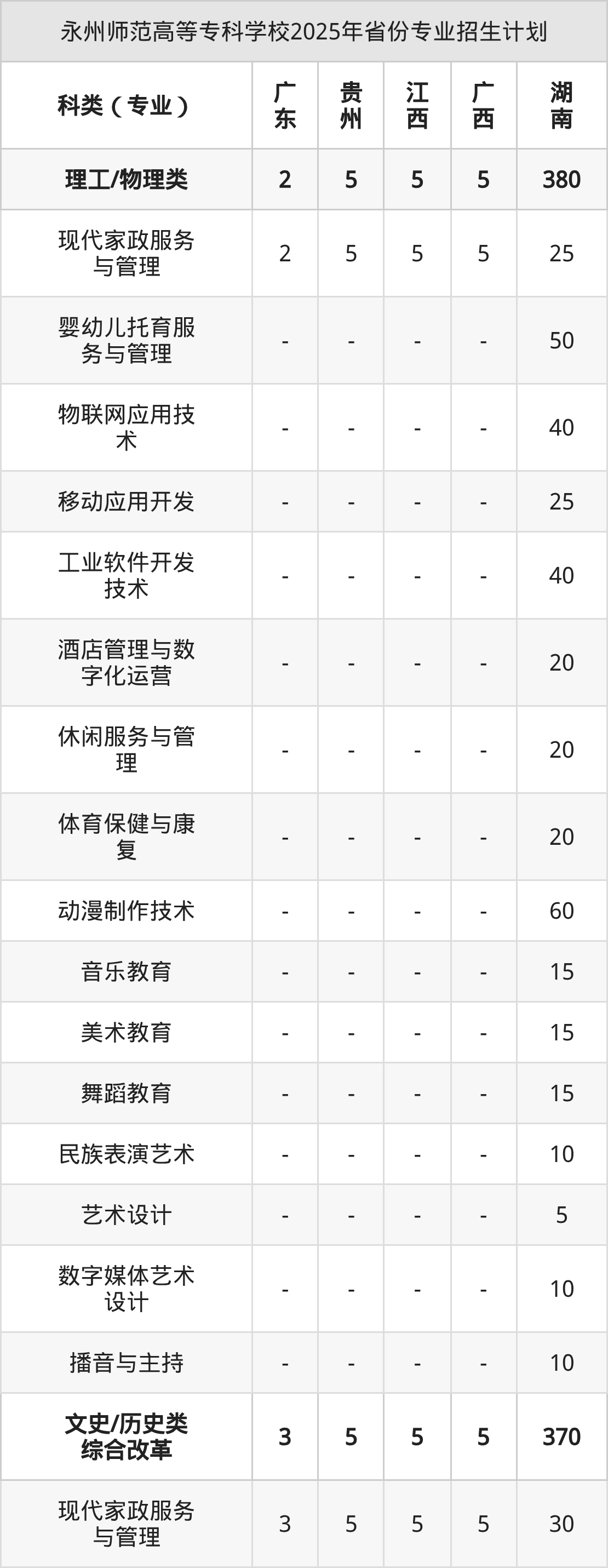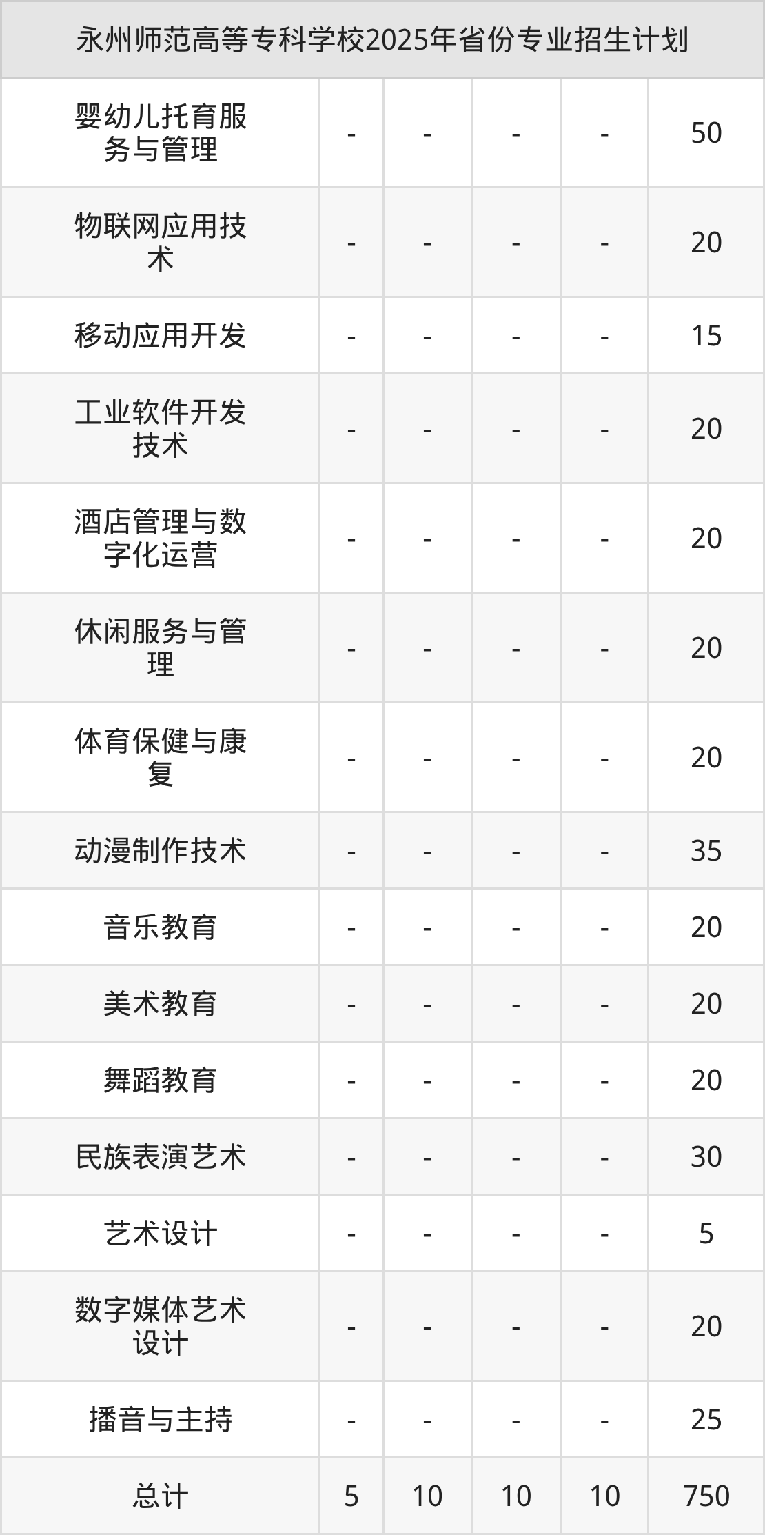 2026年永州师范高等专科学校专科招生计划待公布,下面附上2025年数据,暂供参考: