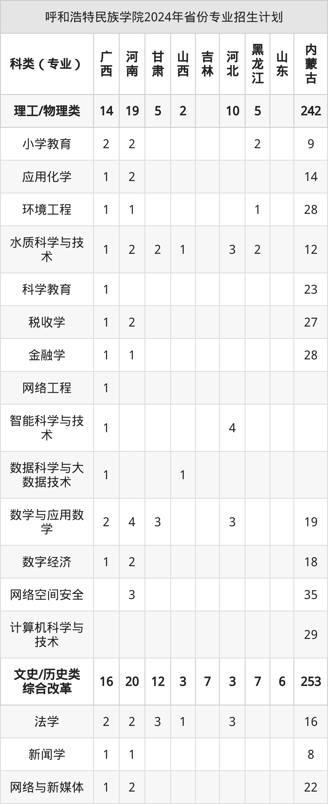 2025年呼和浩特民族学院本科招生计划待公布,下面附上2024年数据,暂供参考: