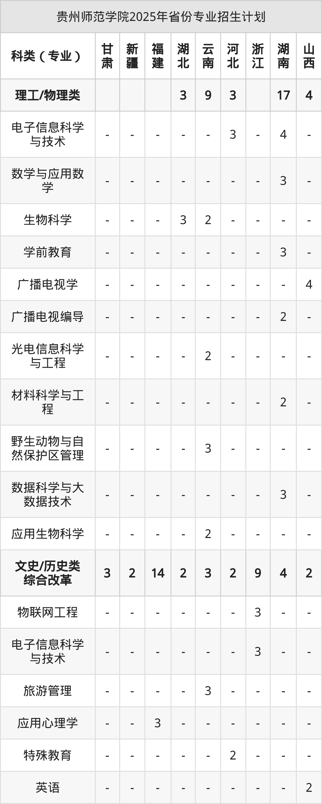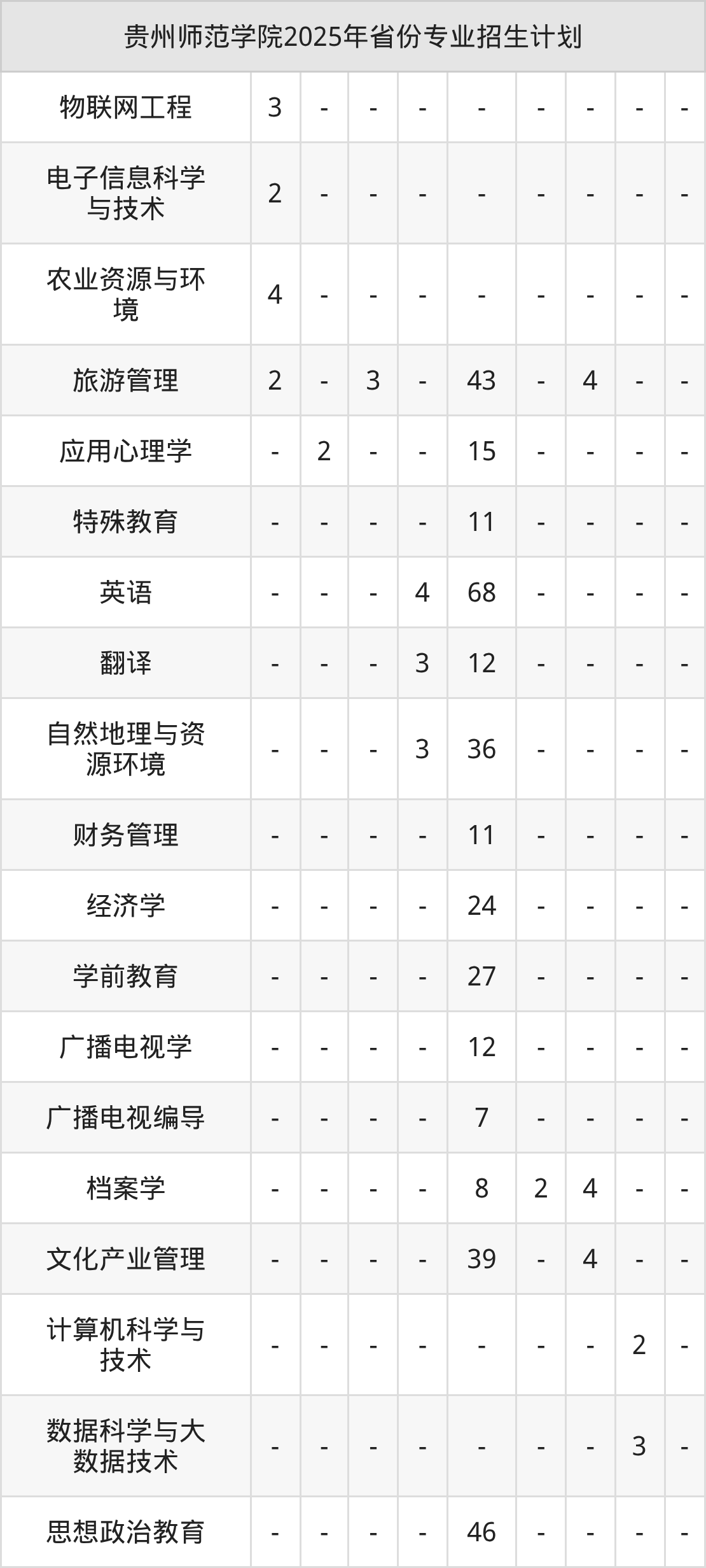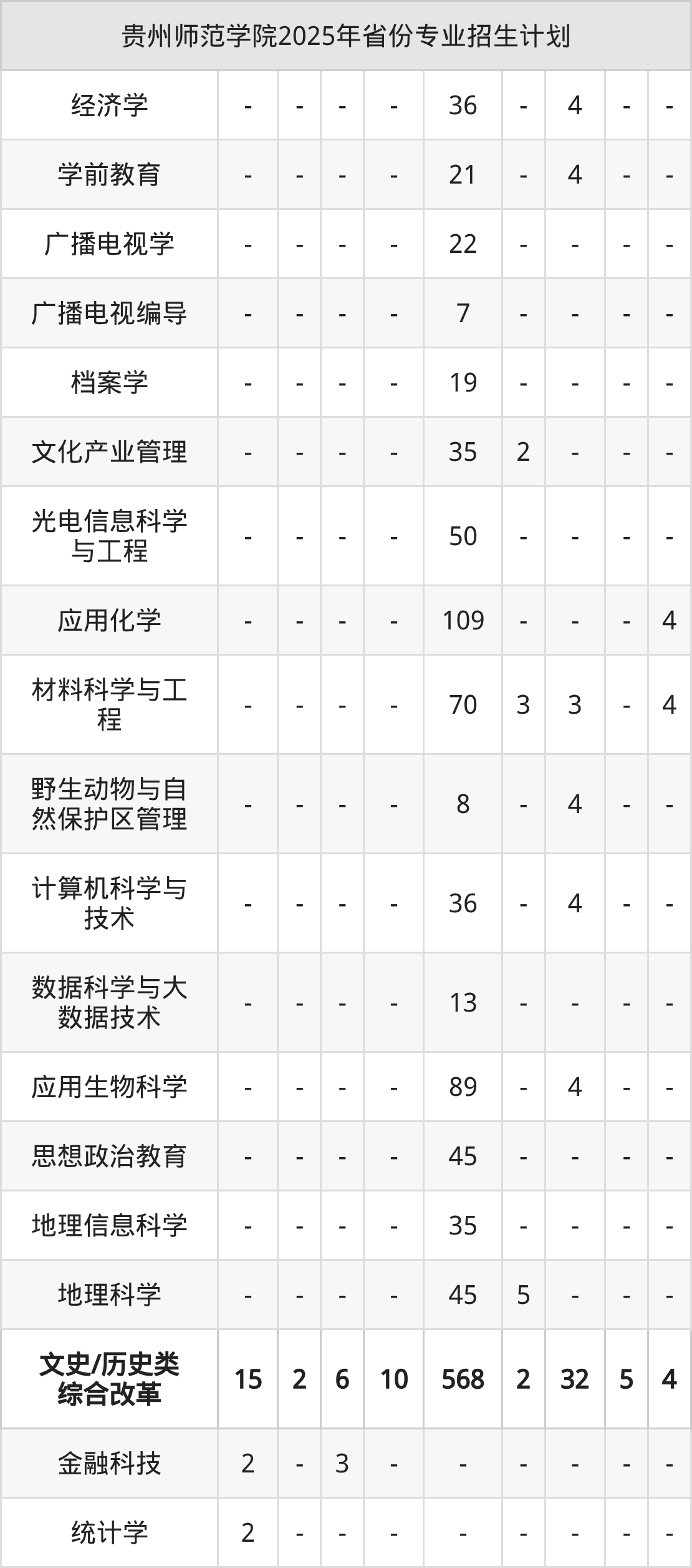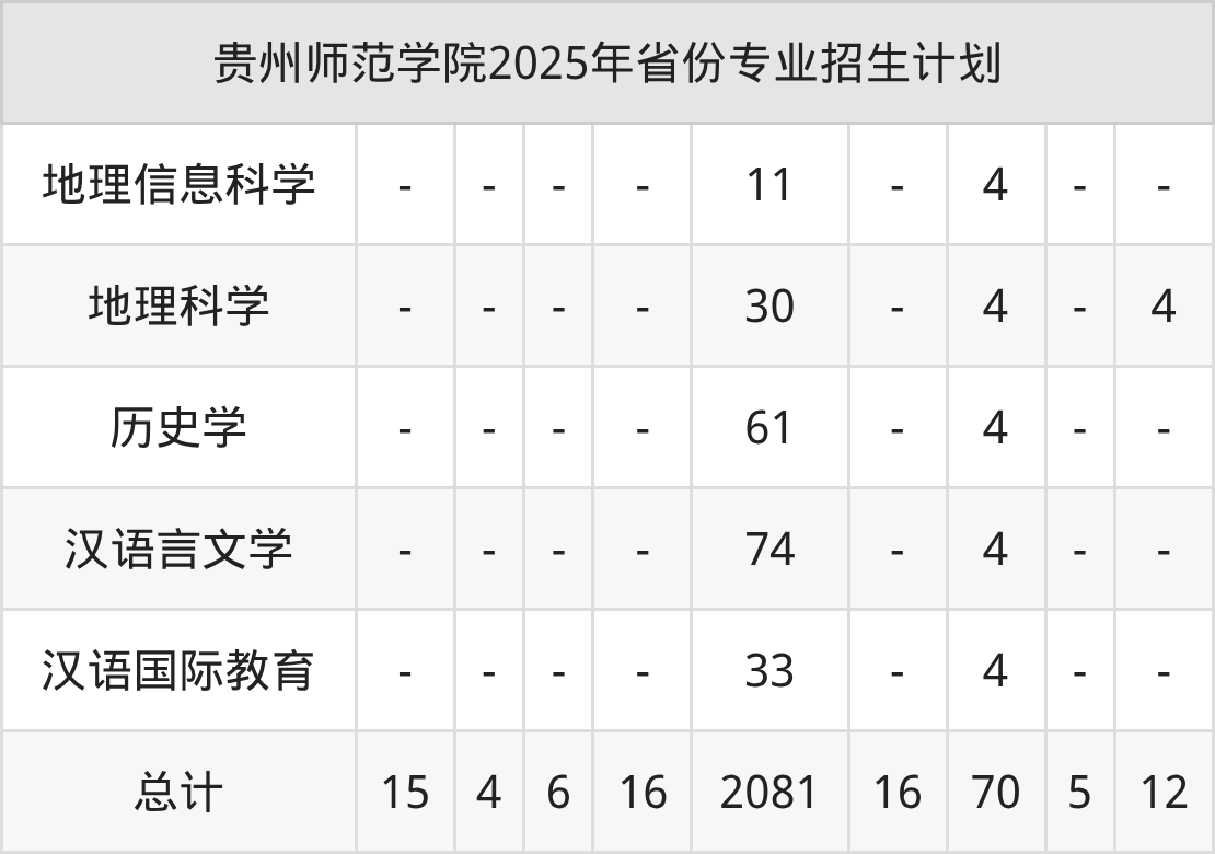 2026年贵州师范学院本科招生计划待公布,下面附上2025年数据,暂供参考: