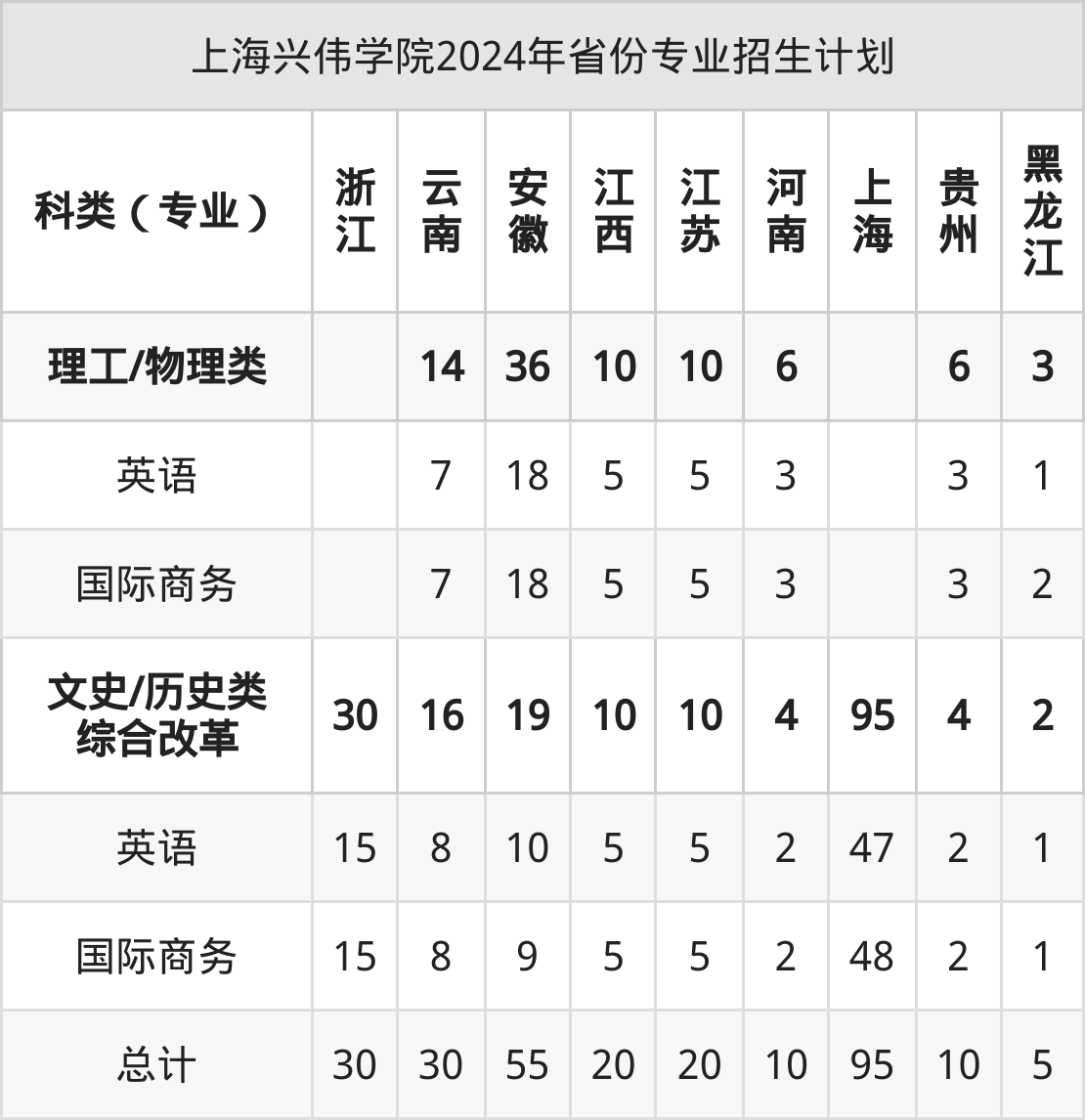 2025年上海兴伟学院本科招生计划待公布,下面附上2024年数据,暂供参考: