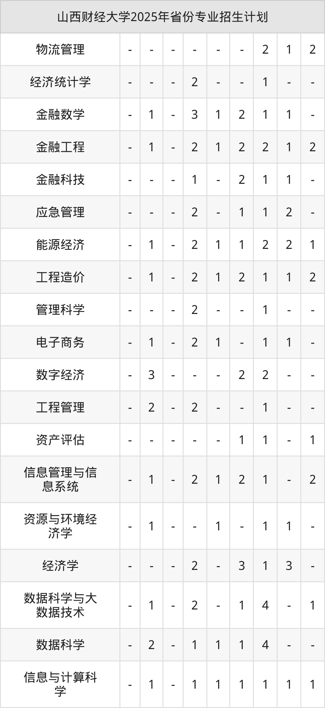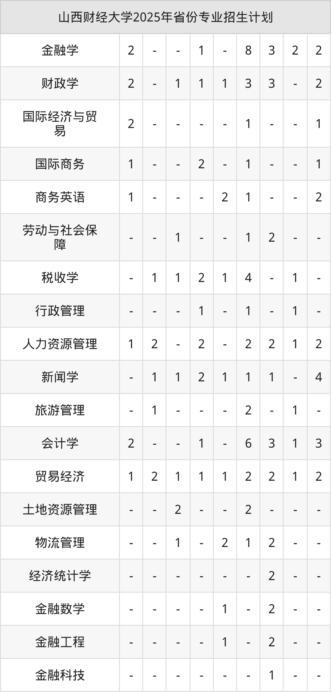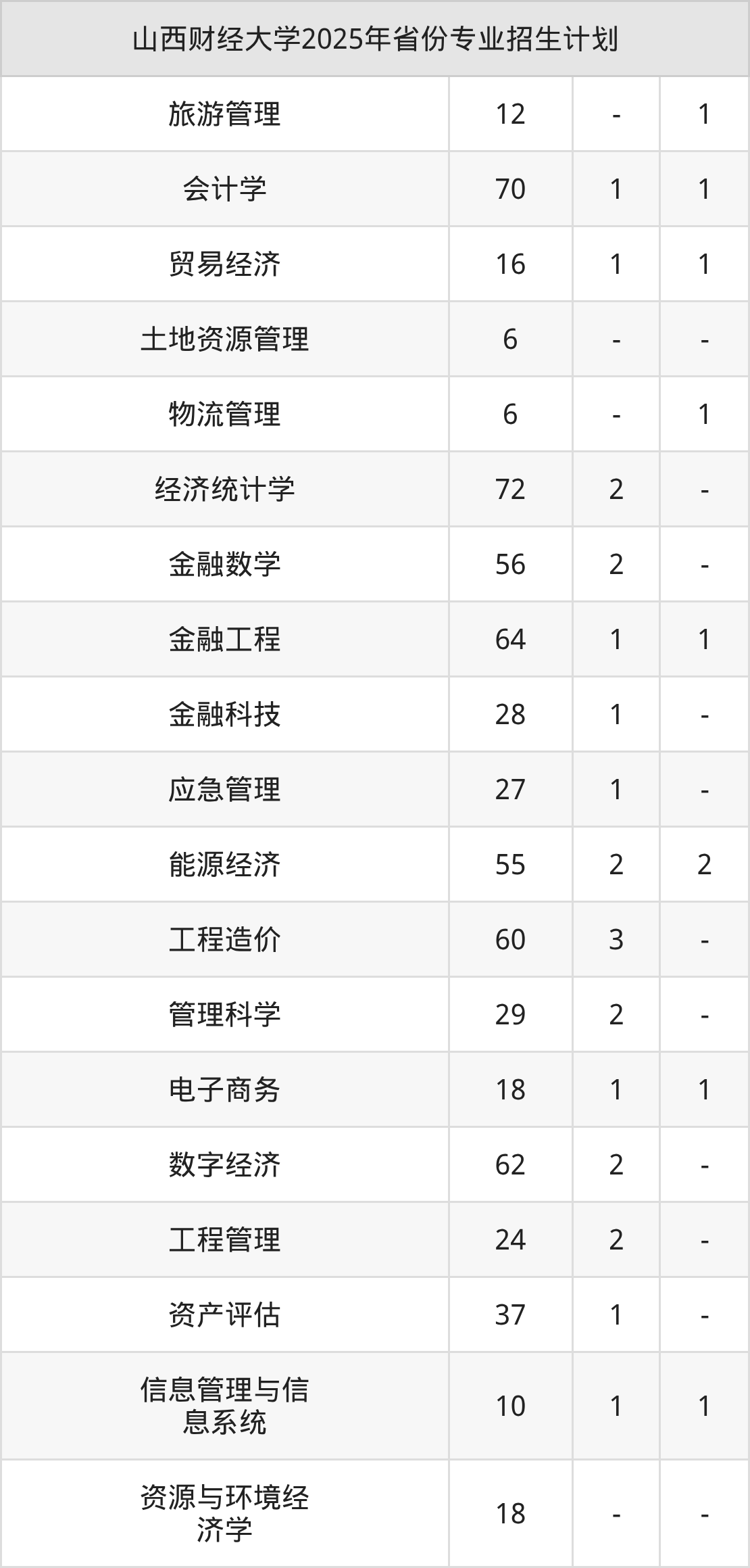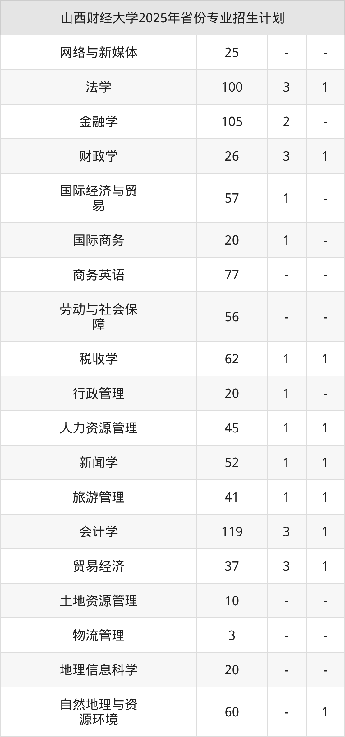 2026年山西财经大学本科招生计划待公布,下面附上2025年数据,暂供参考: