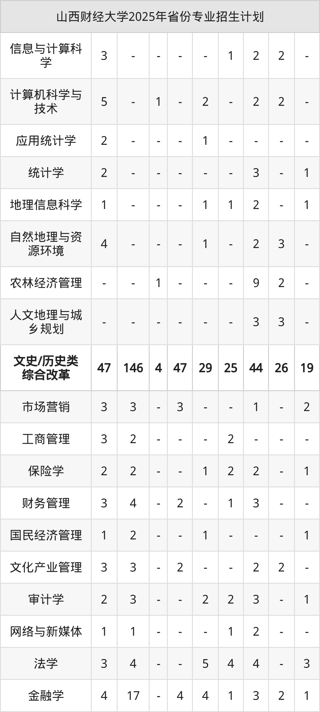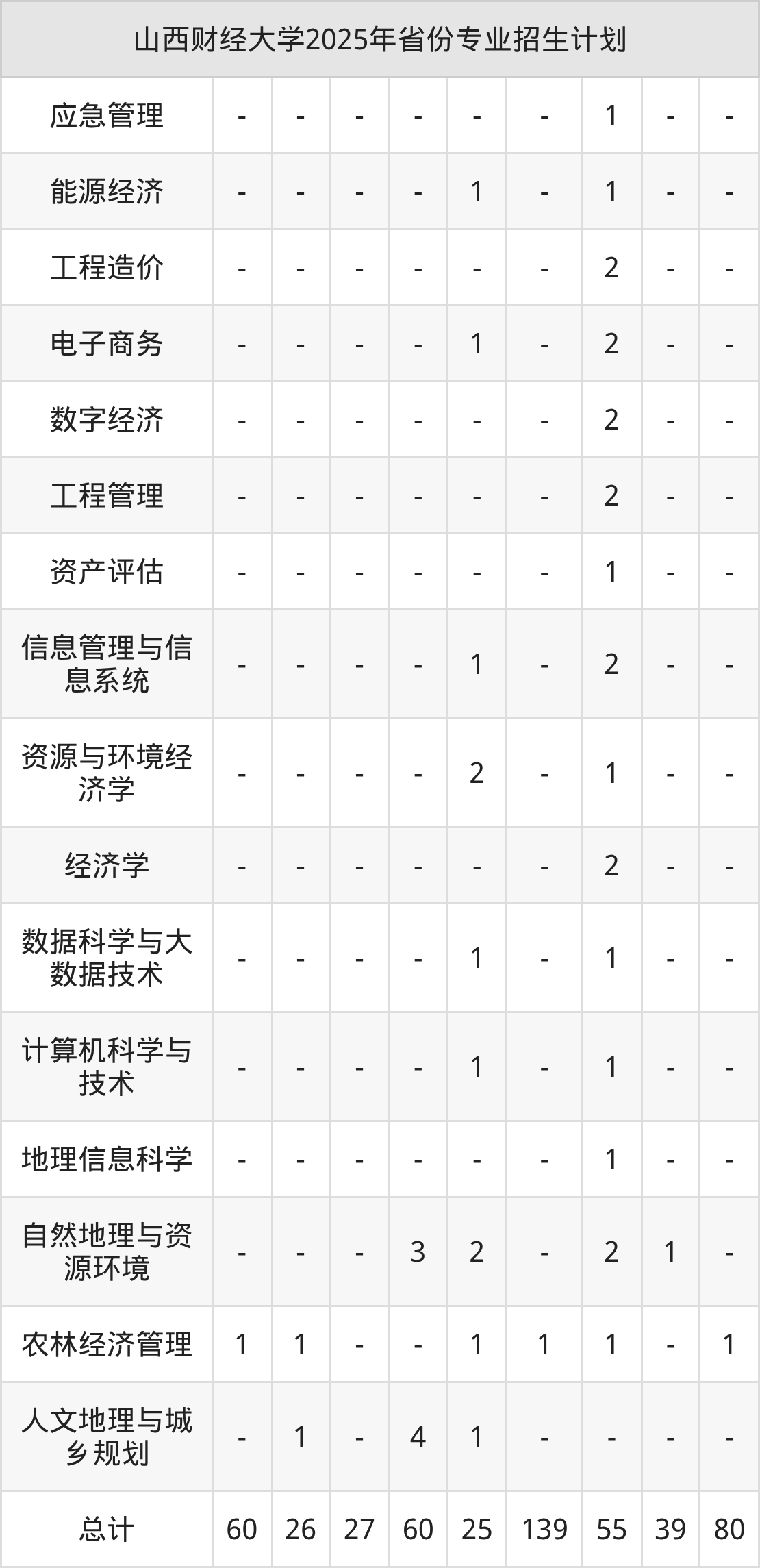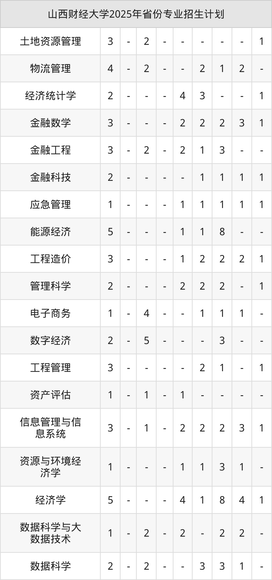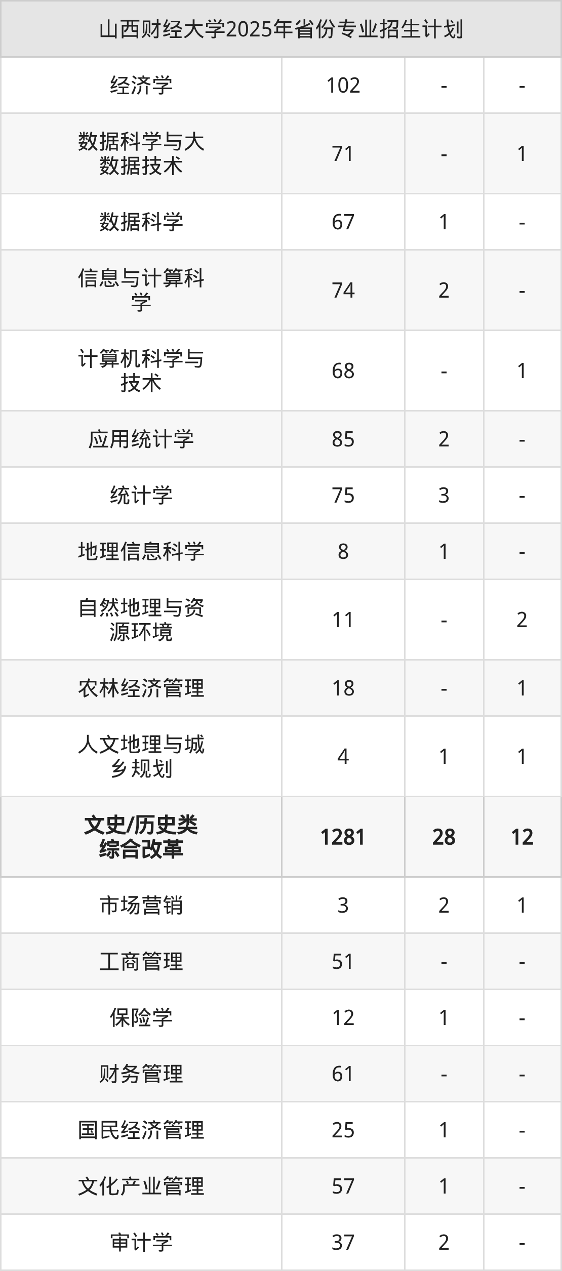 2026年山西财经大学本科招生计划待公布,下面附上2025年数据,暂供参考: