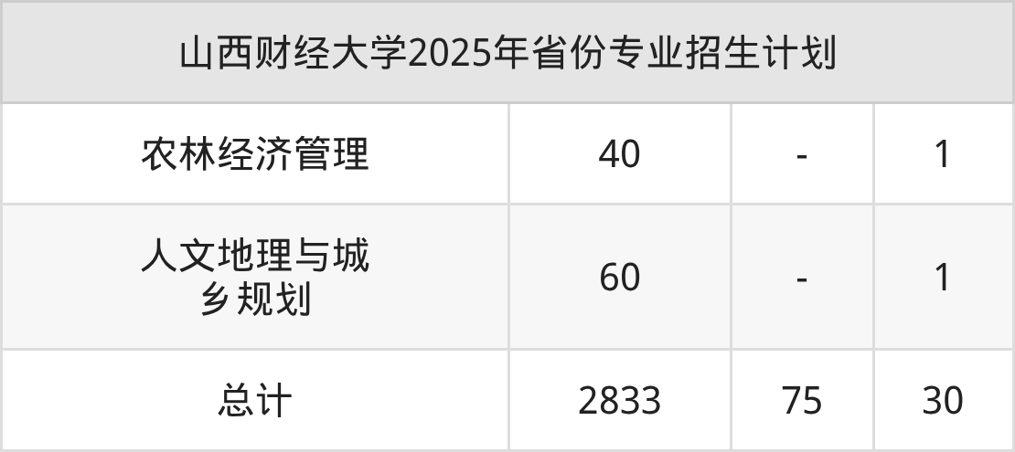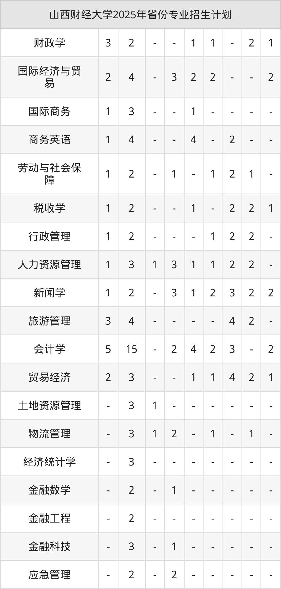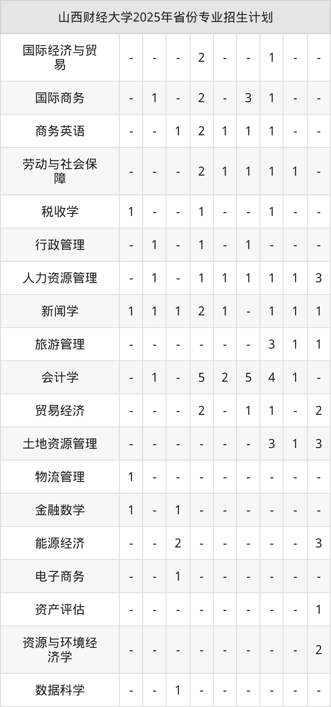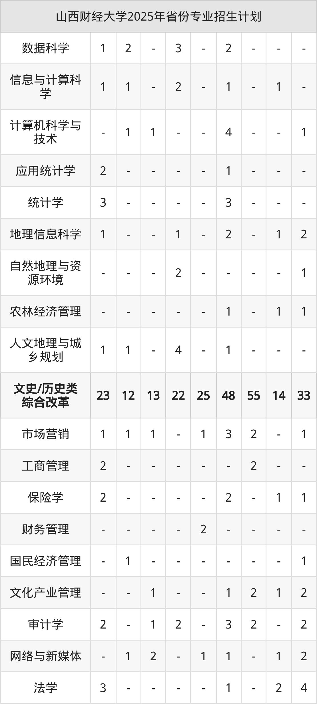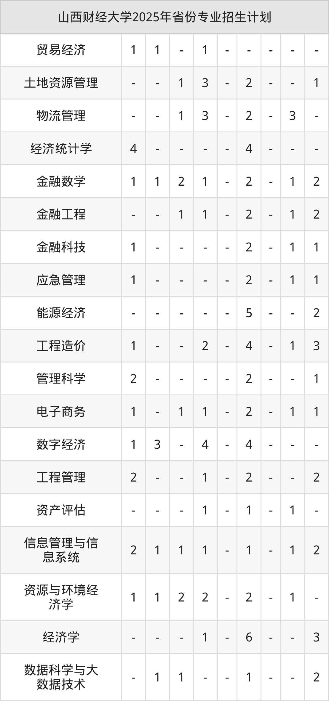 2026年山西财经大学本科招生计划待公布,下面附上2025年数据,暂供参考: