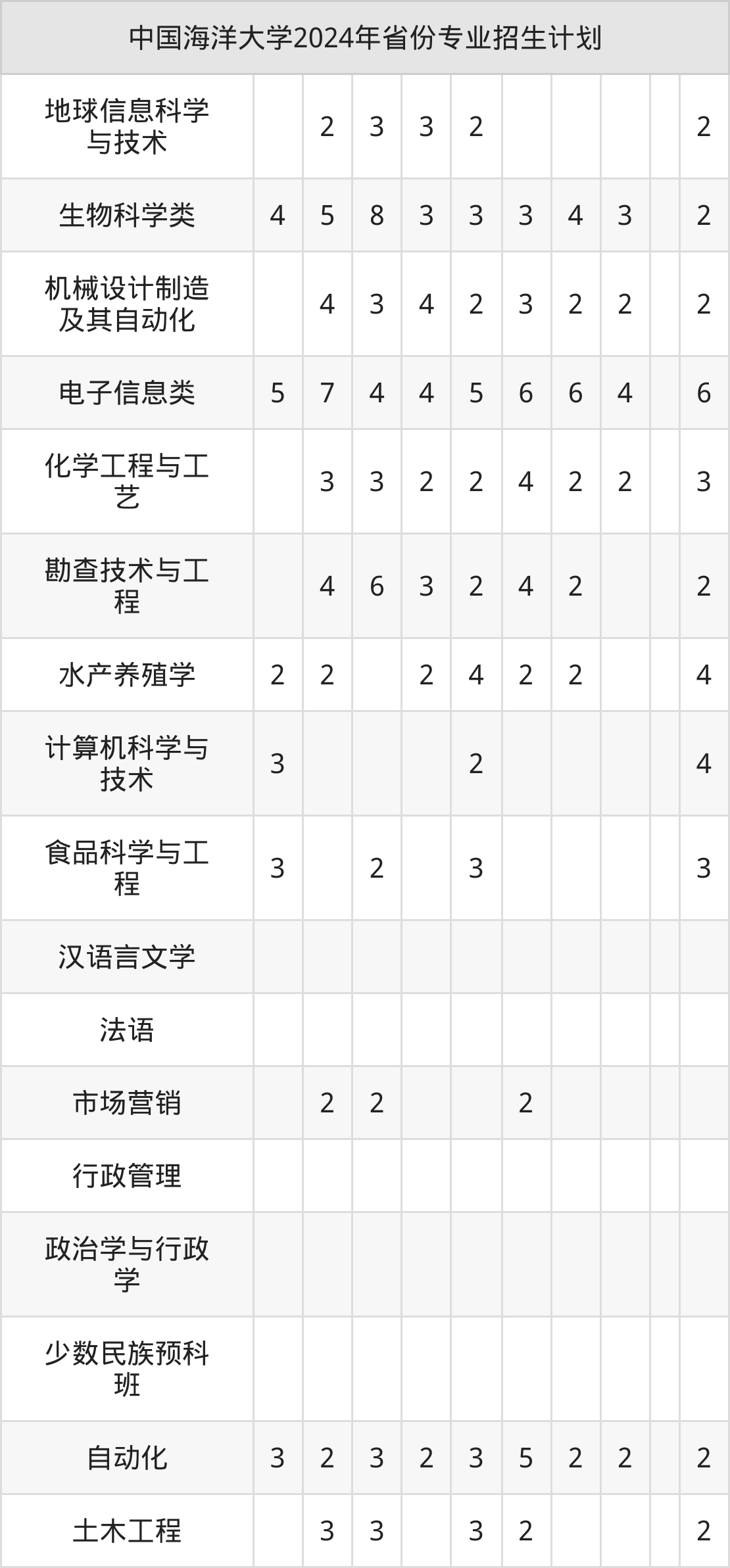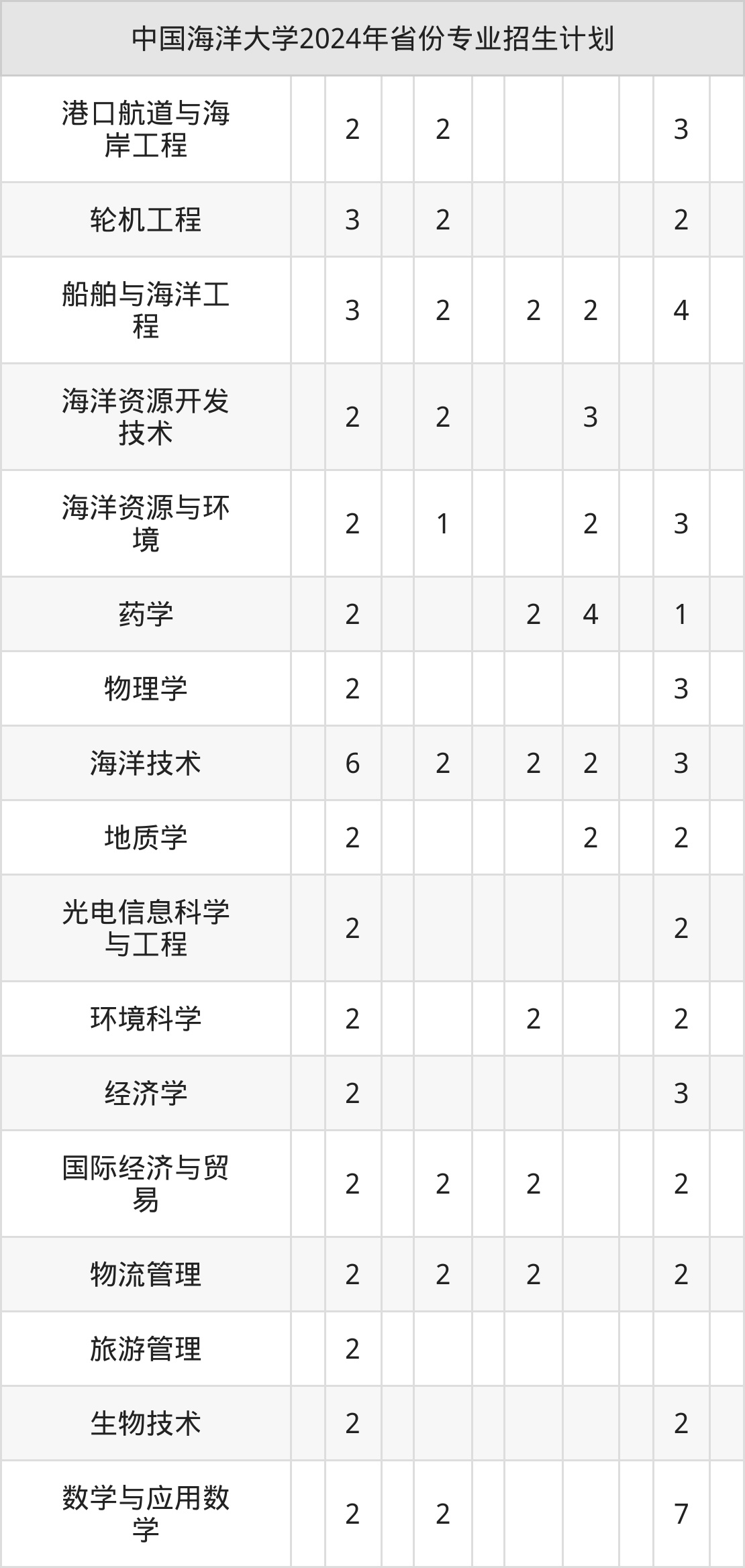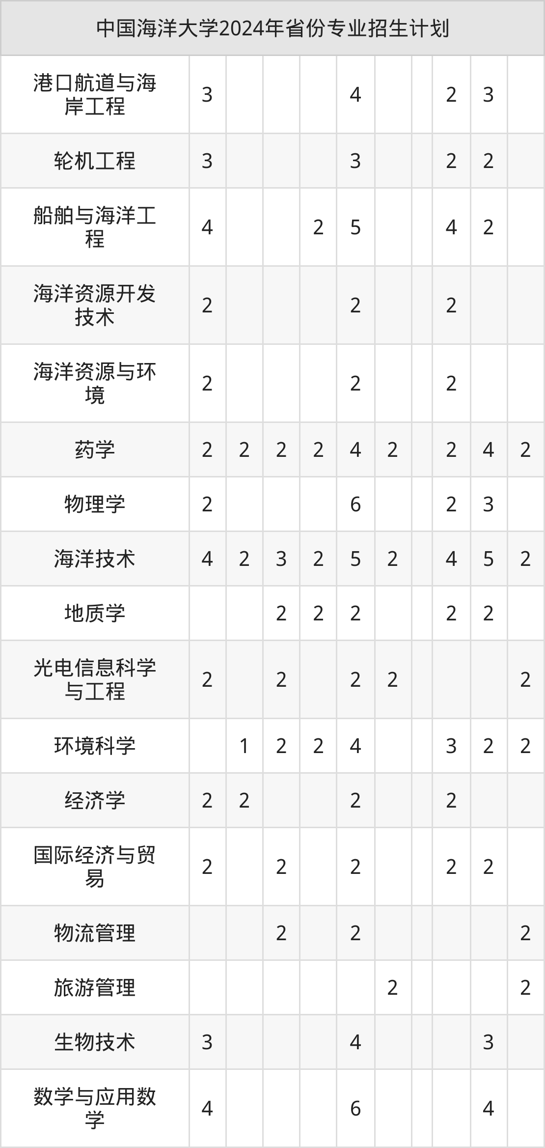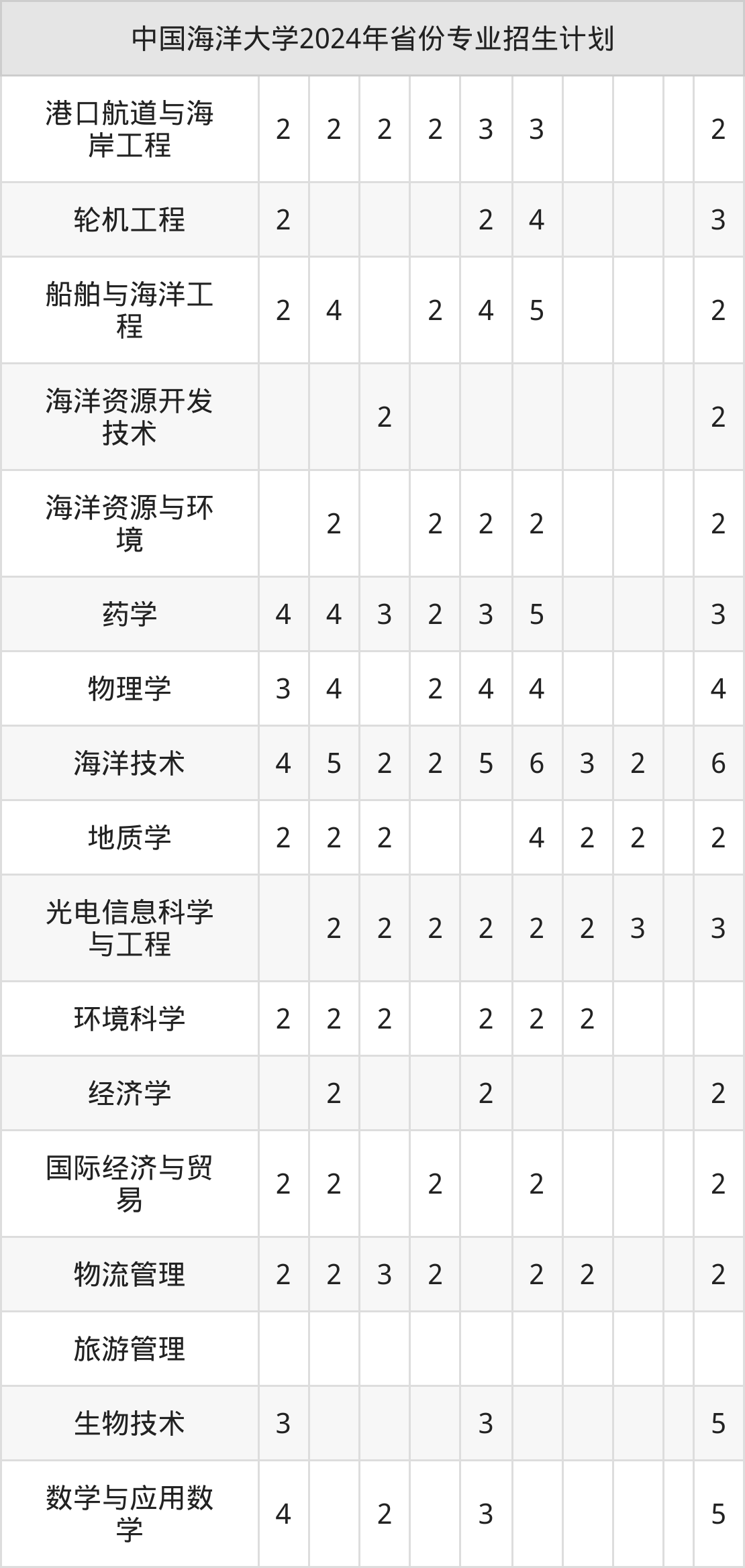 2025年中国海洋大学本科招生计划待公布,下面附上2024年数据,暂供参考: