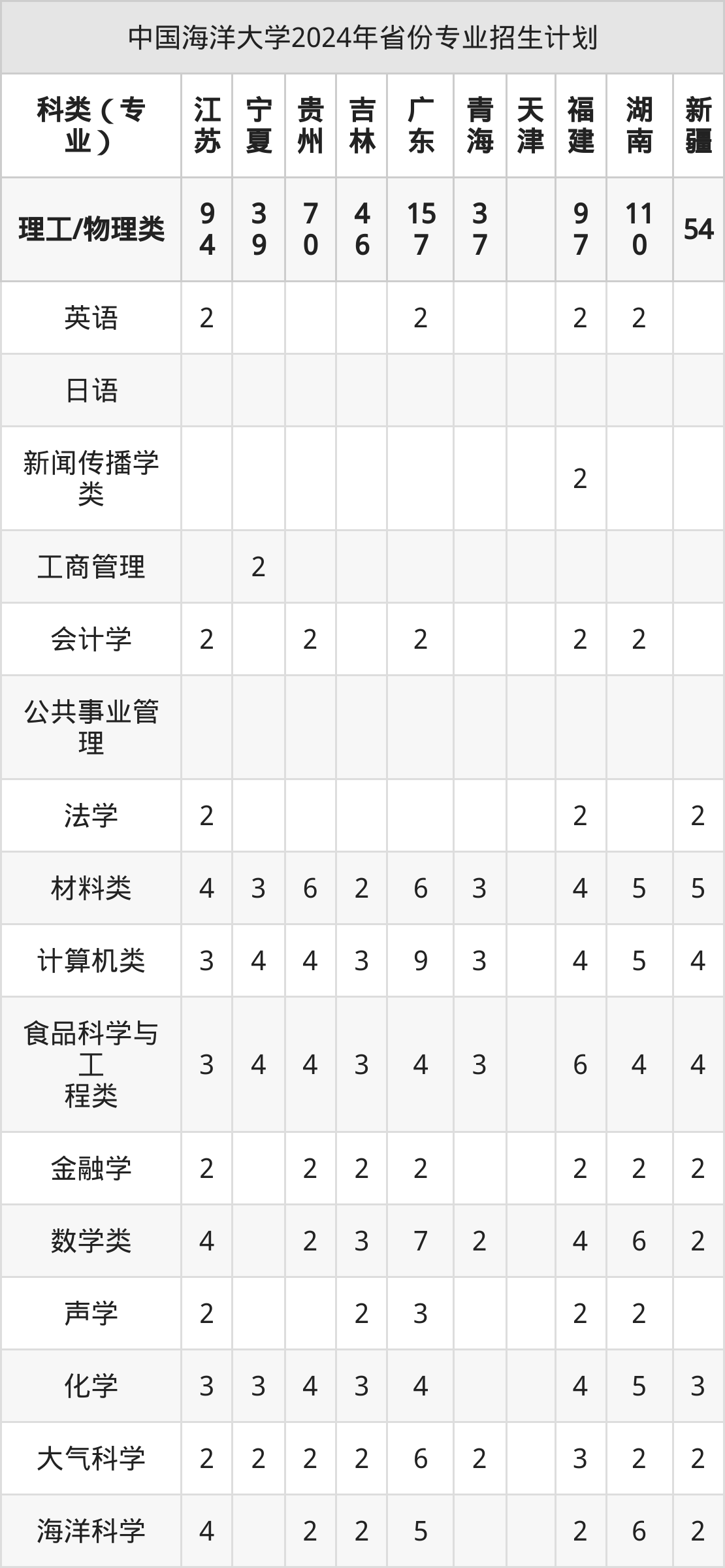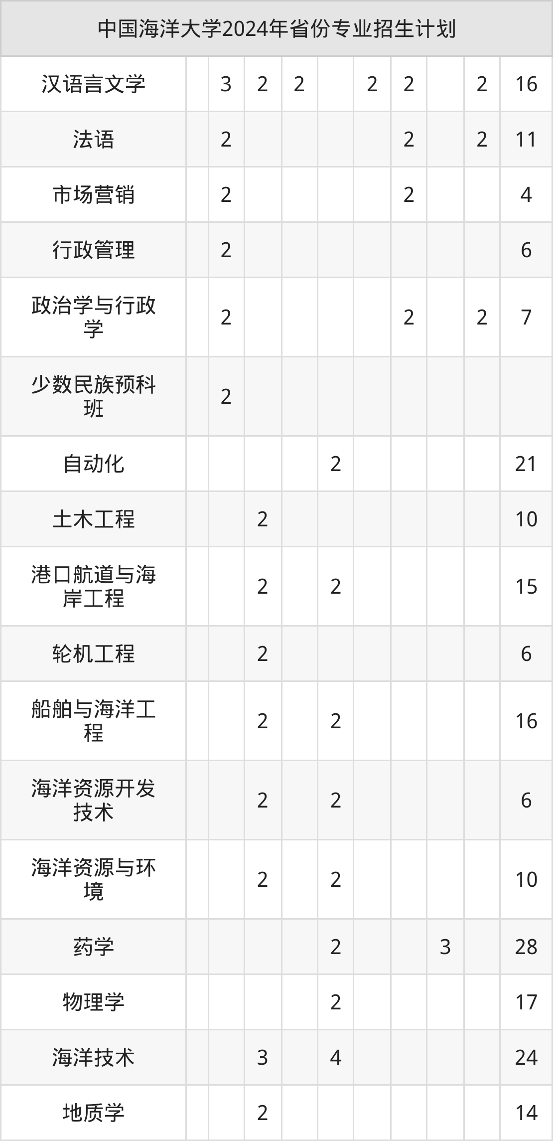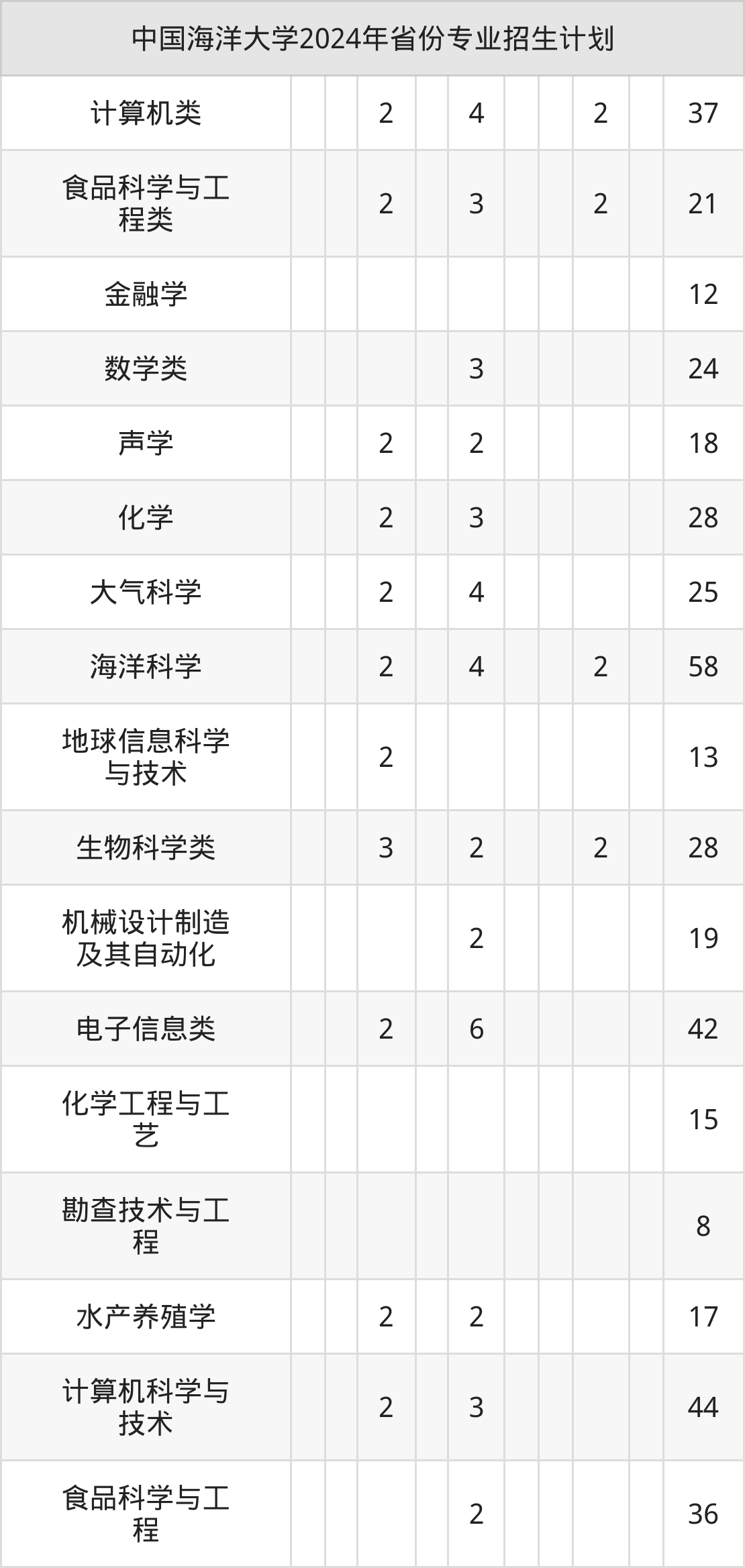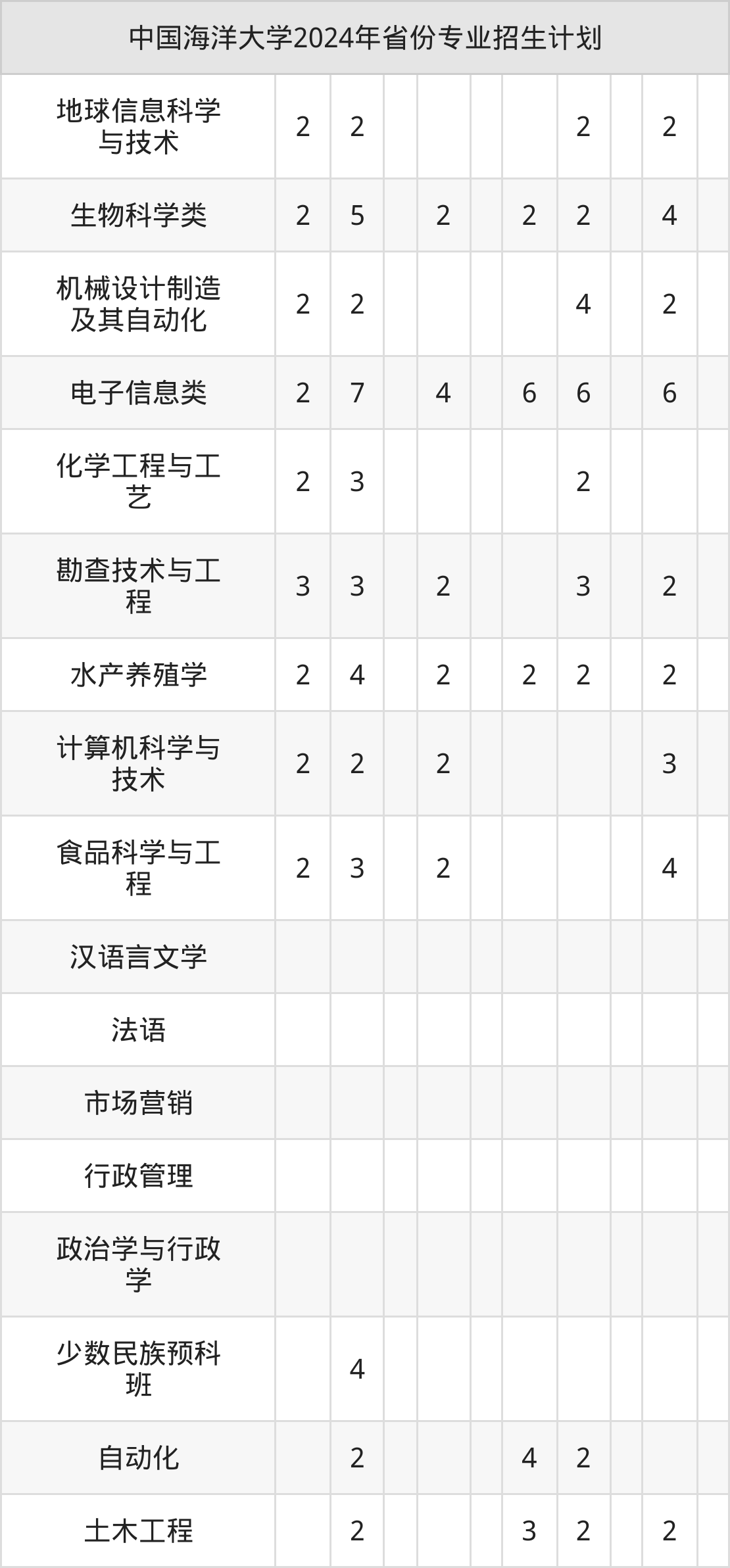2025年中国海洋大学本科招生计划待公布,下面附上2024年数据,暂供参考: