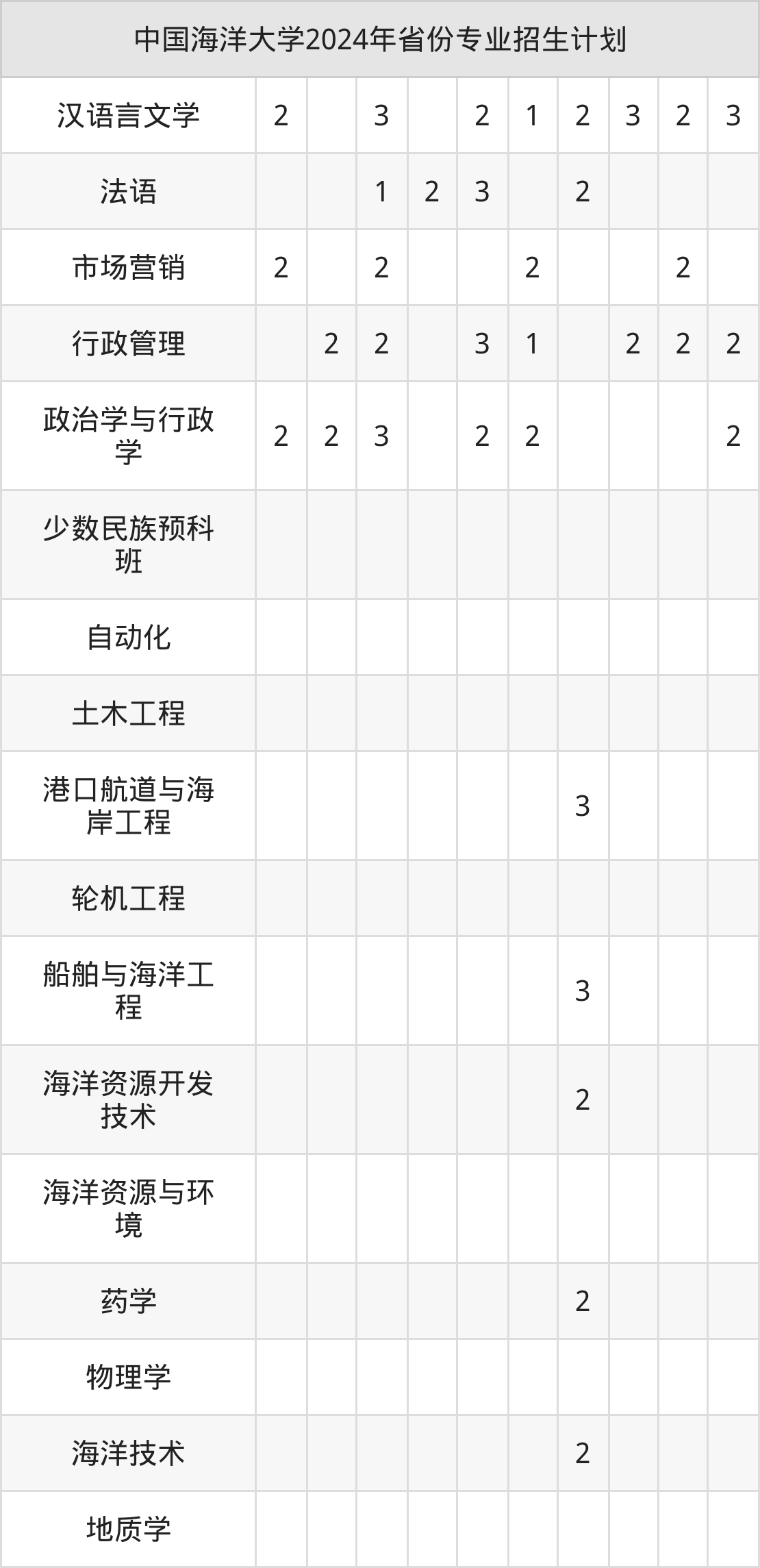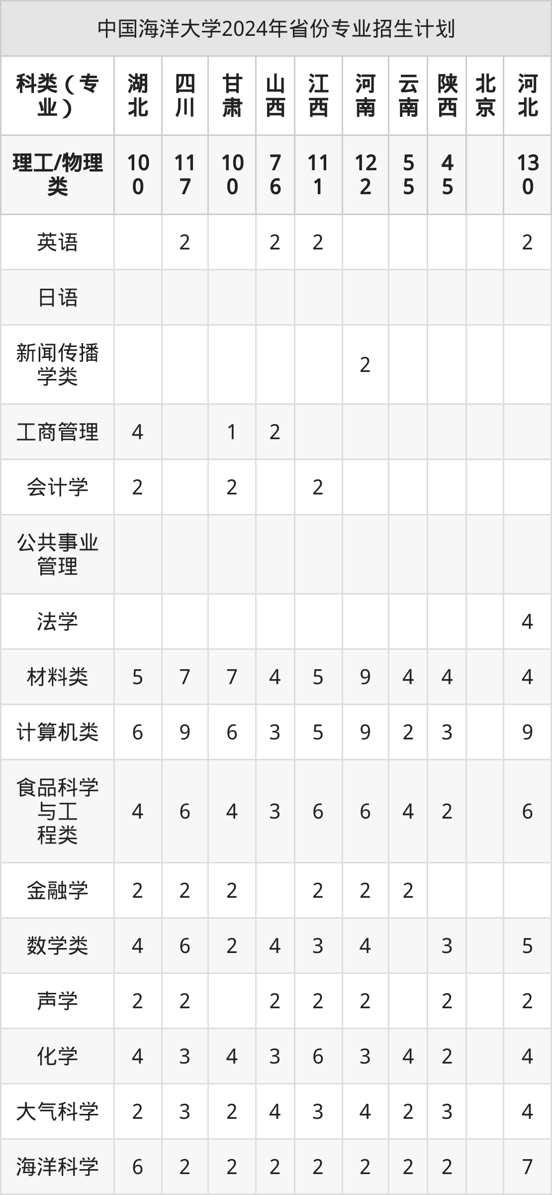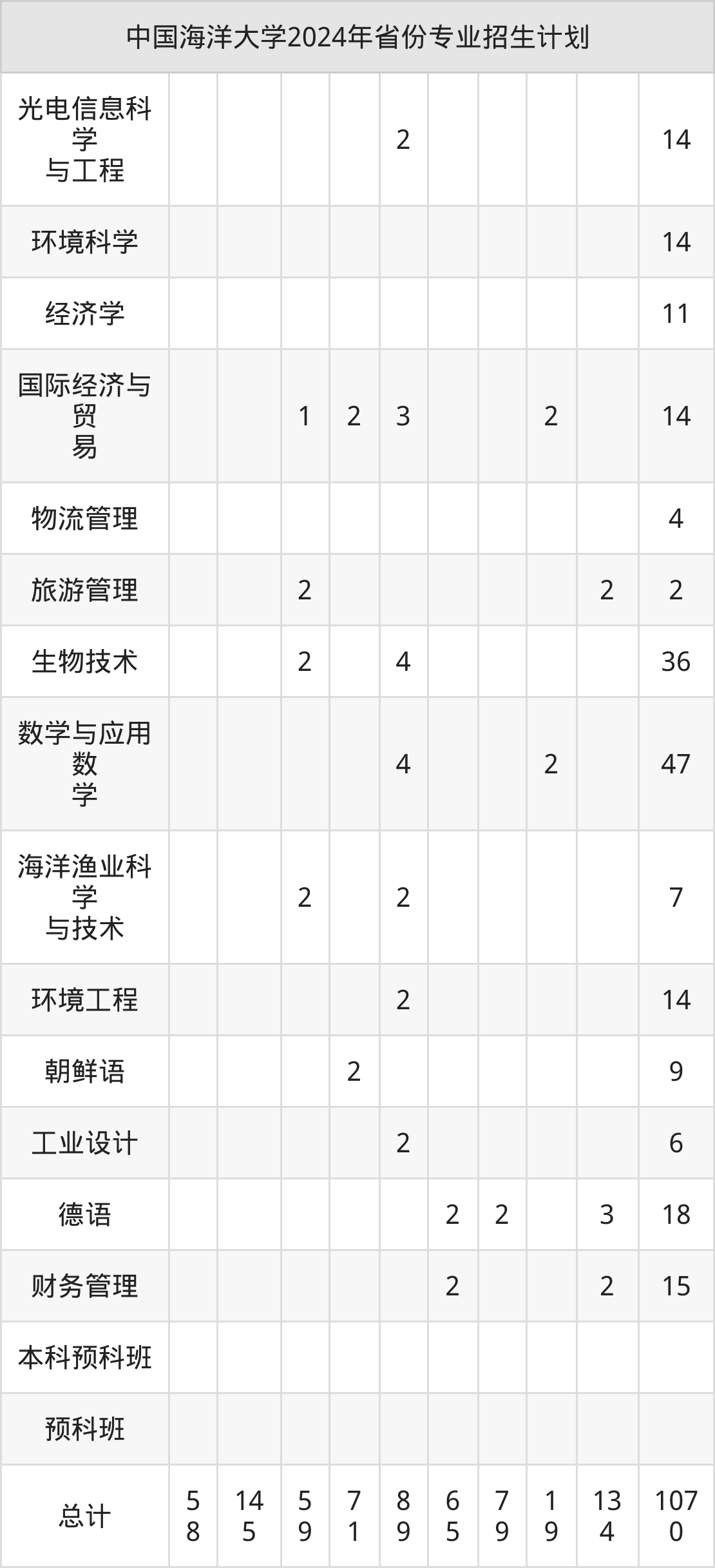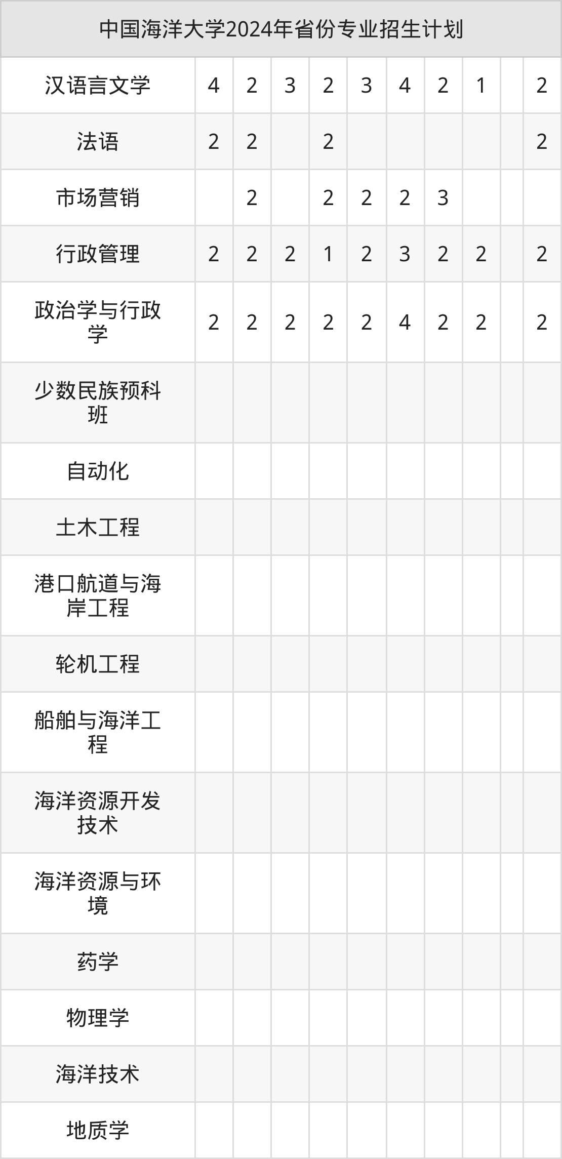 2025年中国海洋大学本科招生计划待公布,下面附上2024年数据,暂供参考: