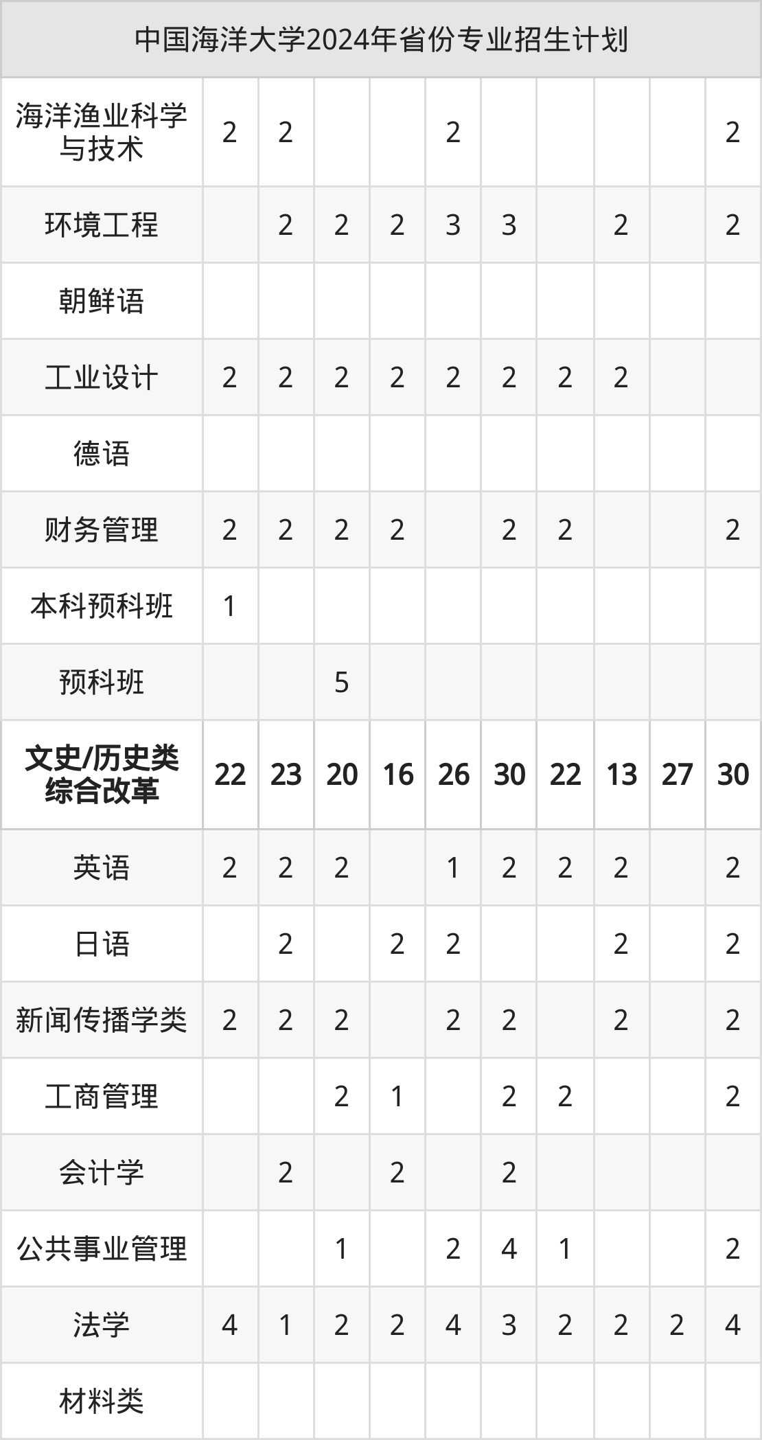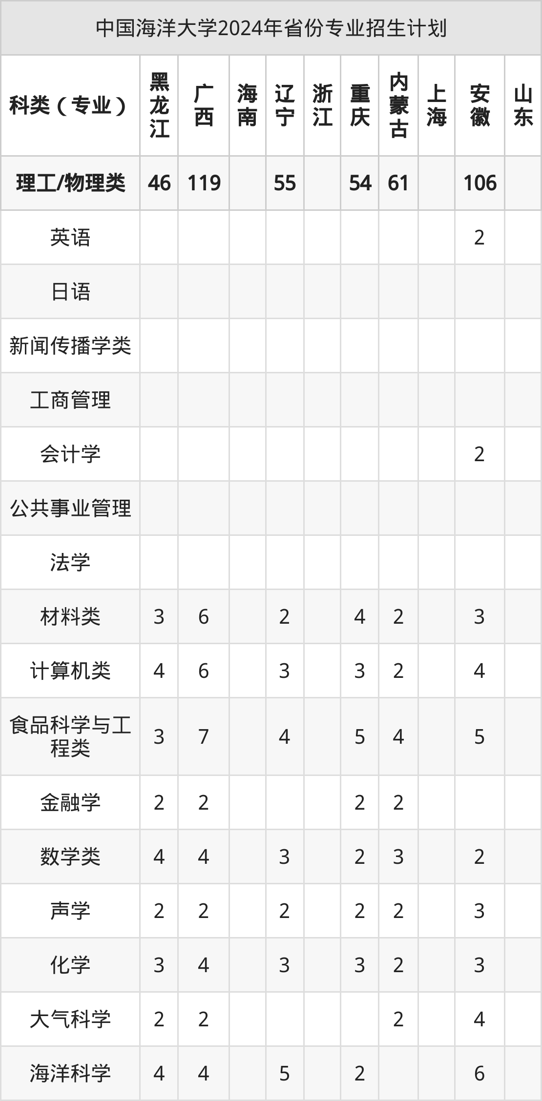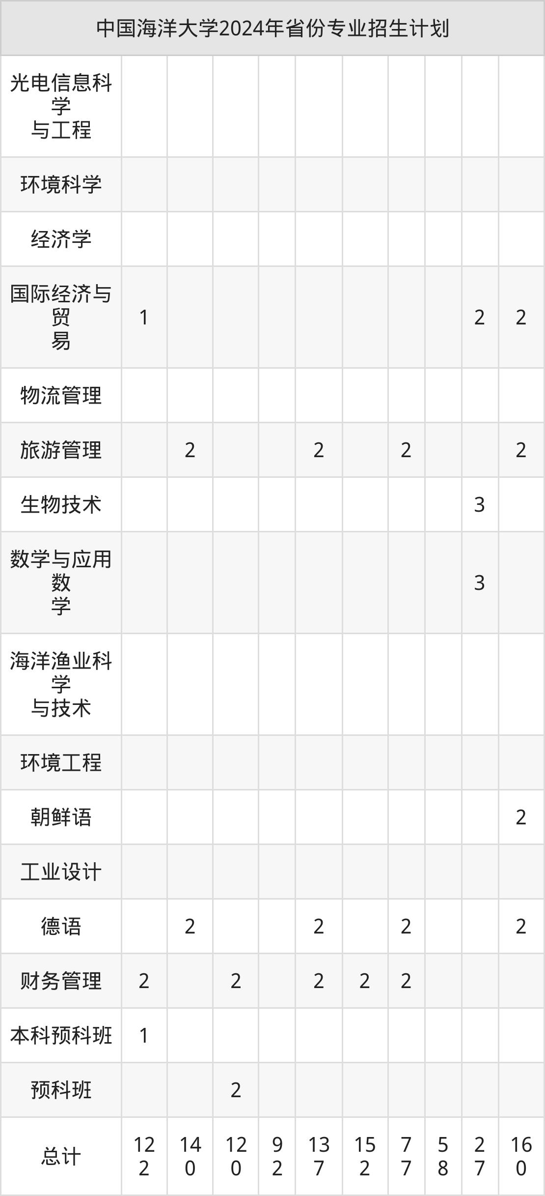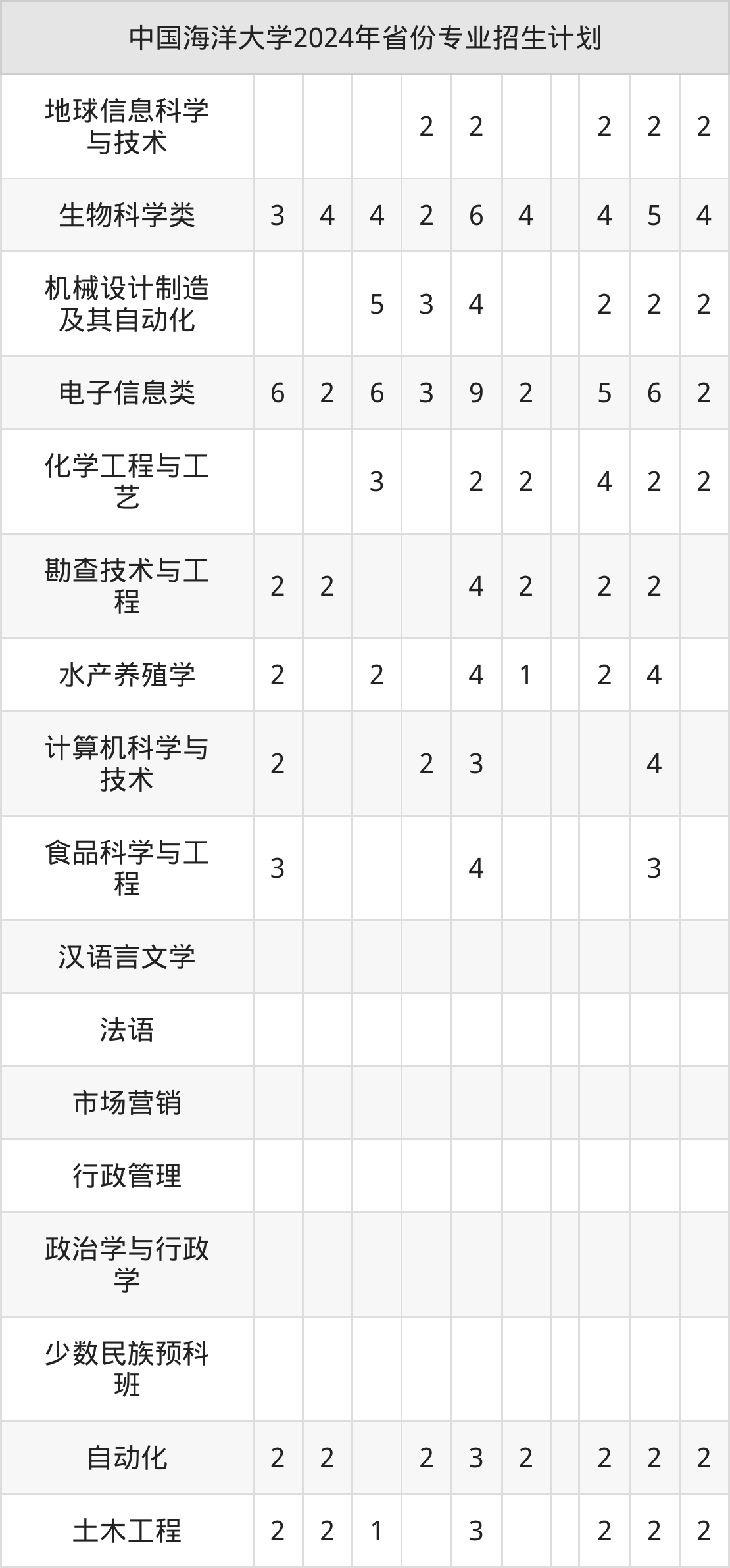 2025年中国海洋大学本科招生计划待公布,下面附上2024年数据,暂供参考: