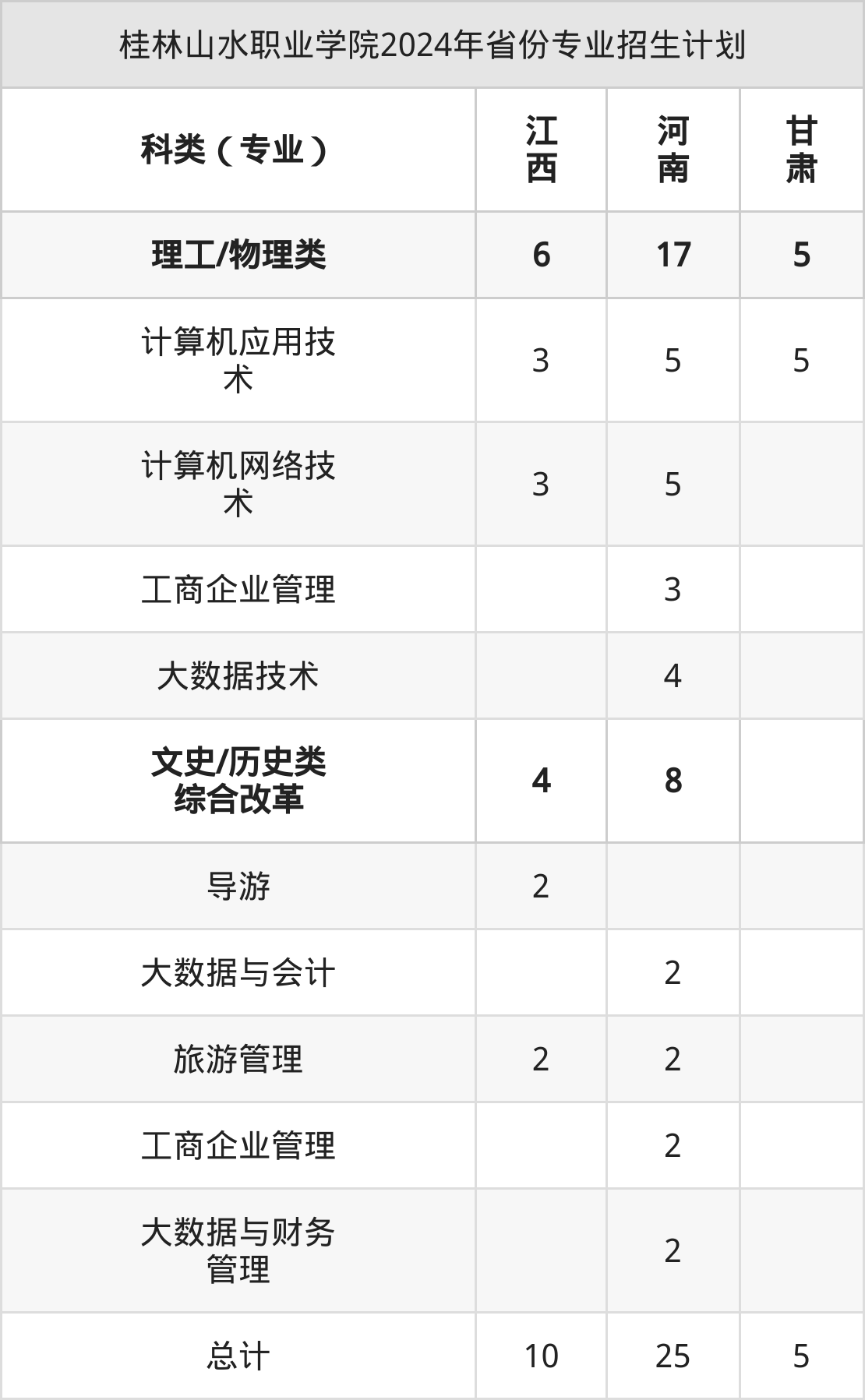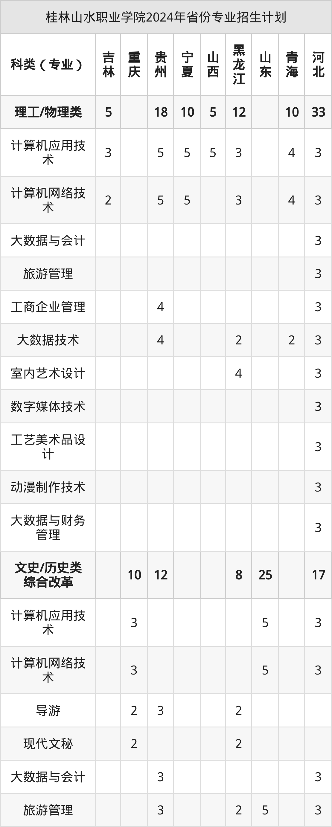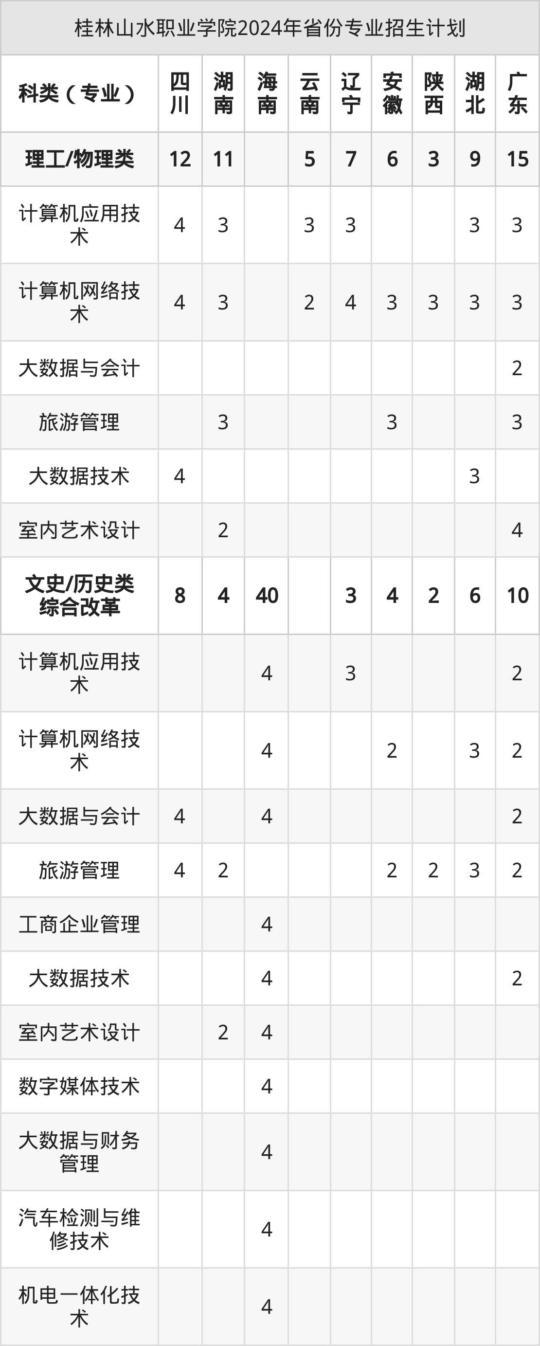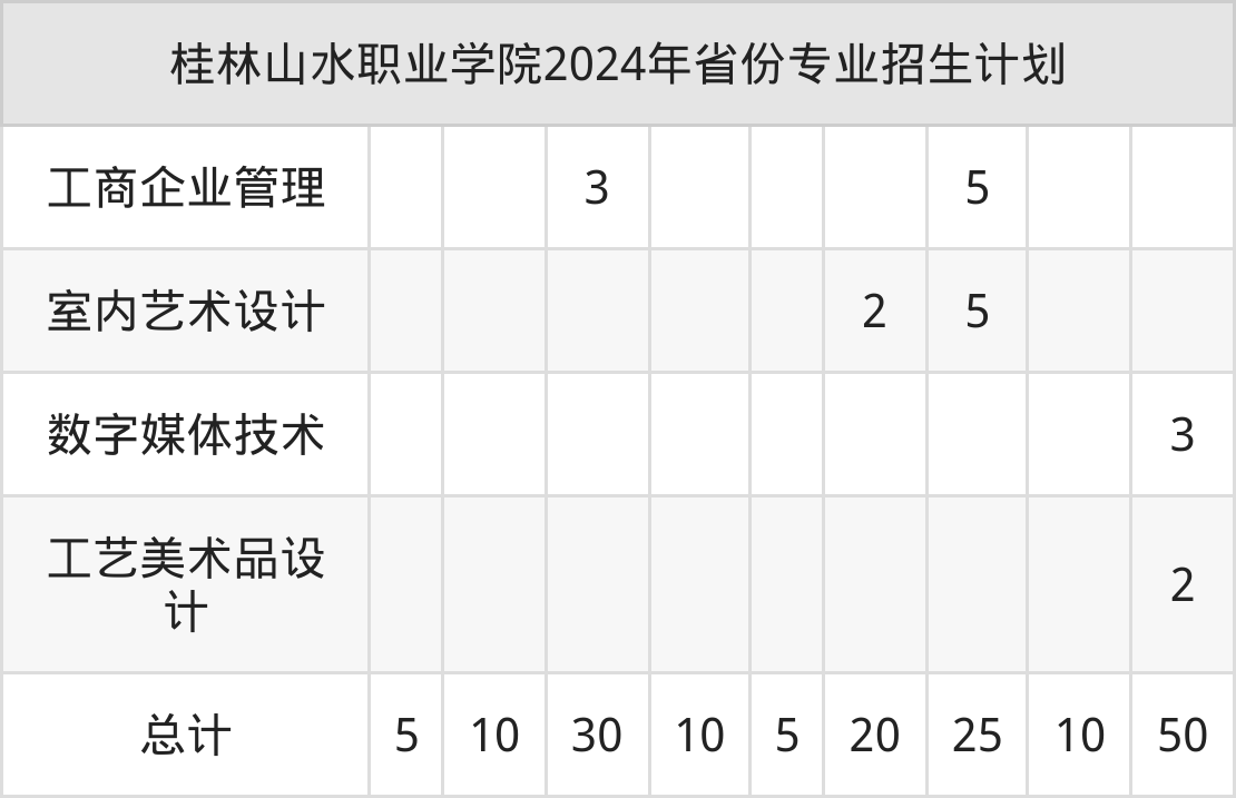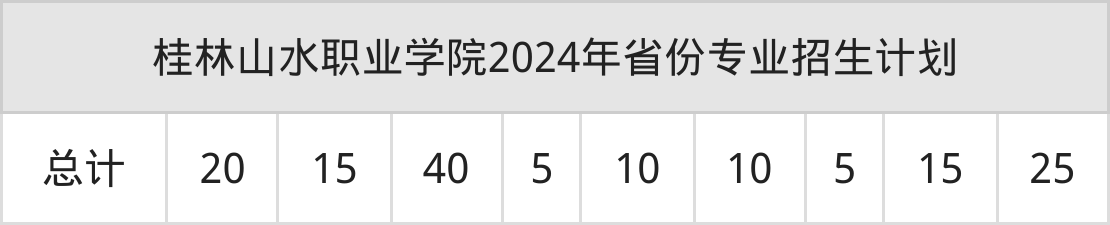 2025年桂林山水职业学院专科招生计划待公布,下面附上2024年数据,暂供参考: